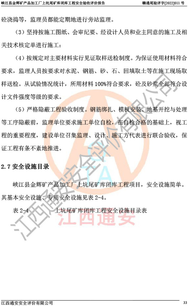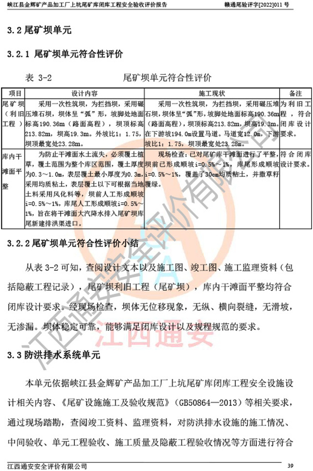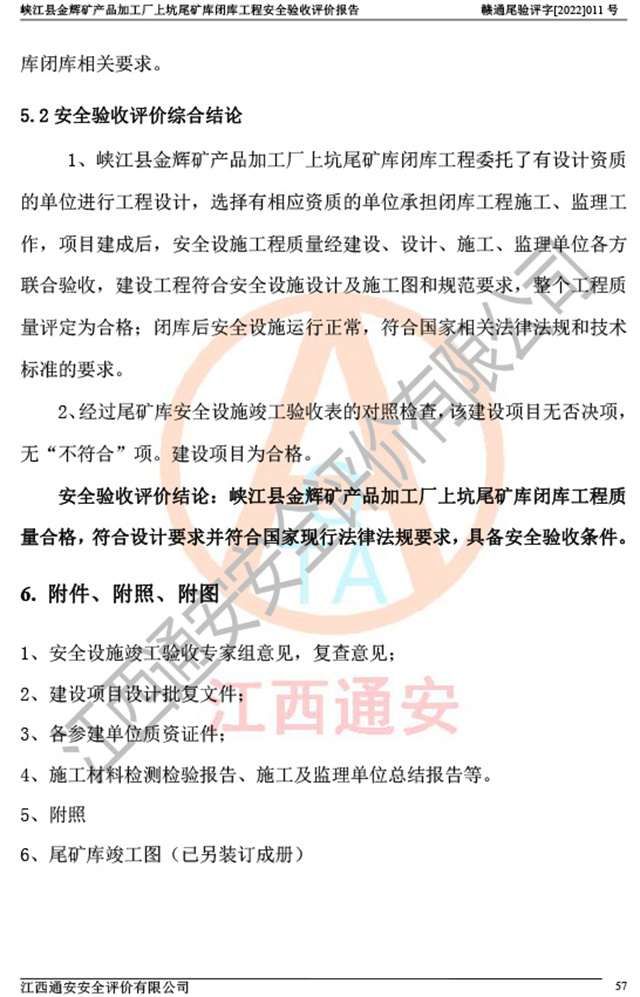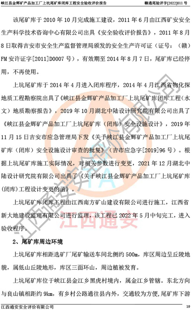 峡江县金辉矿产品加工厂上坑尾矿库闭库工程安全验收评价报告