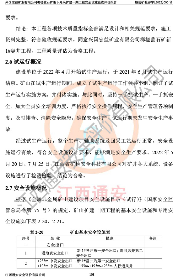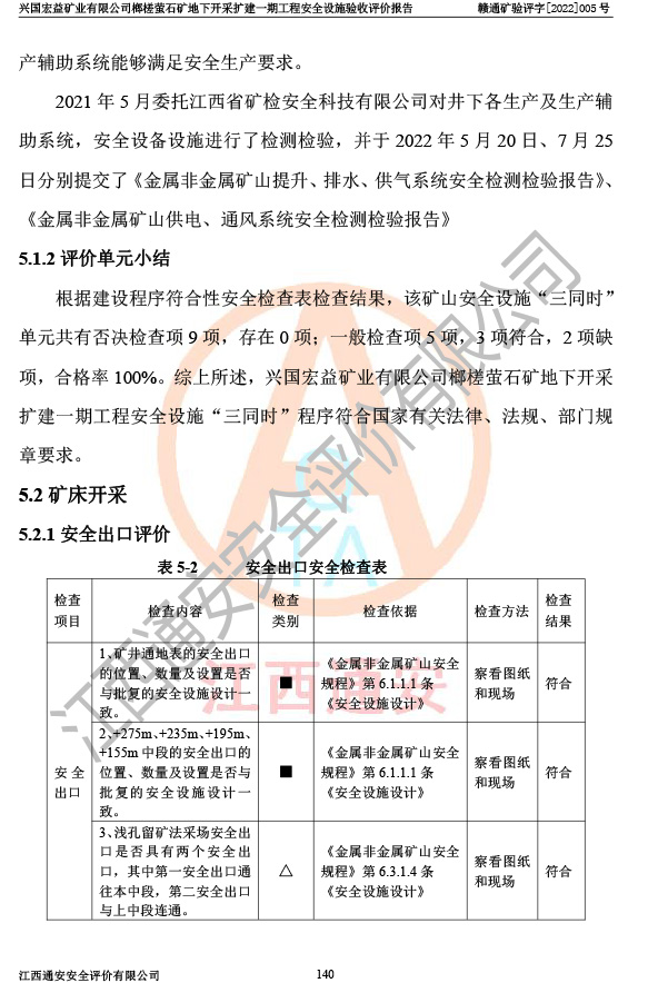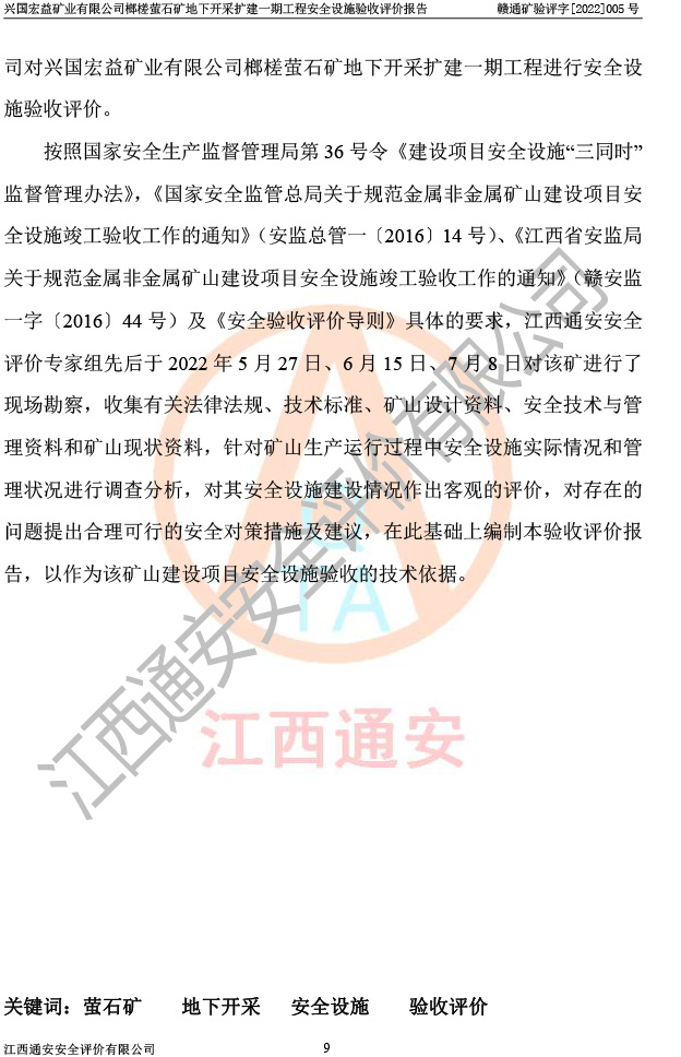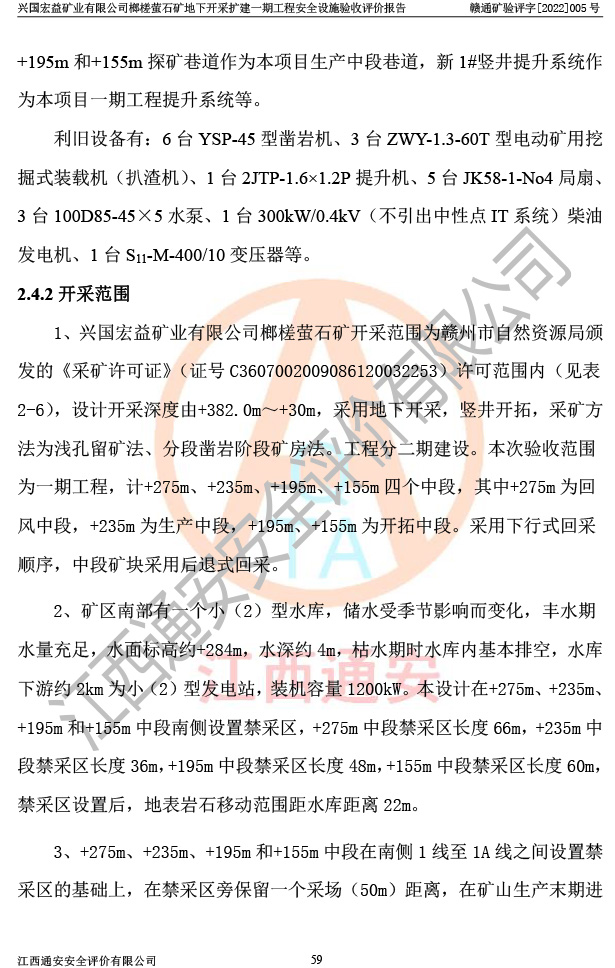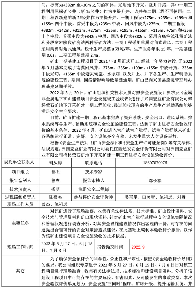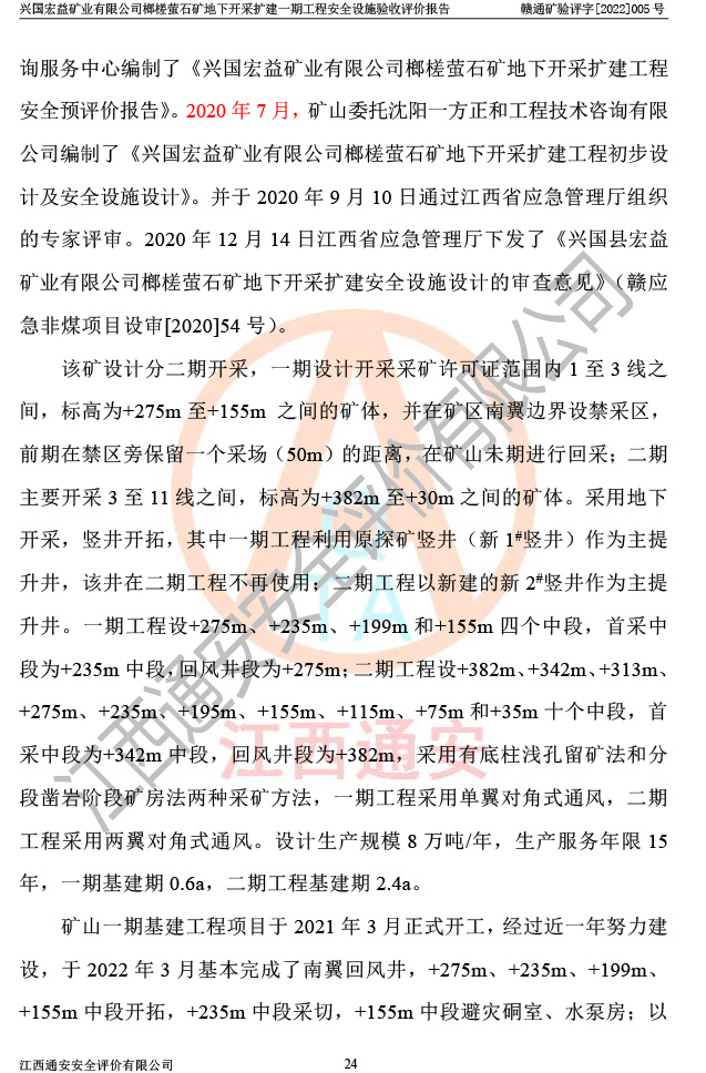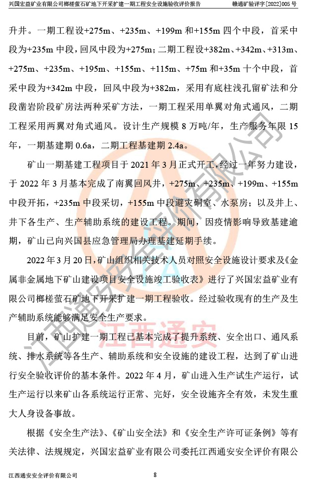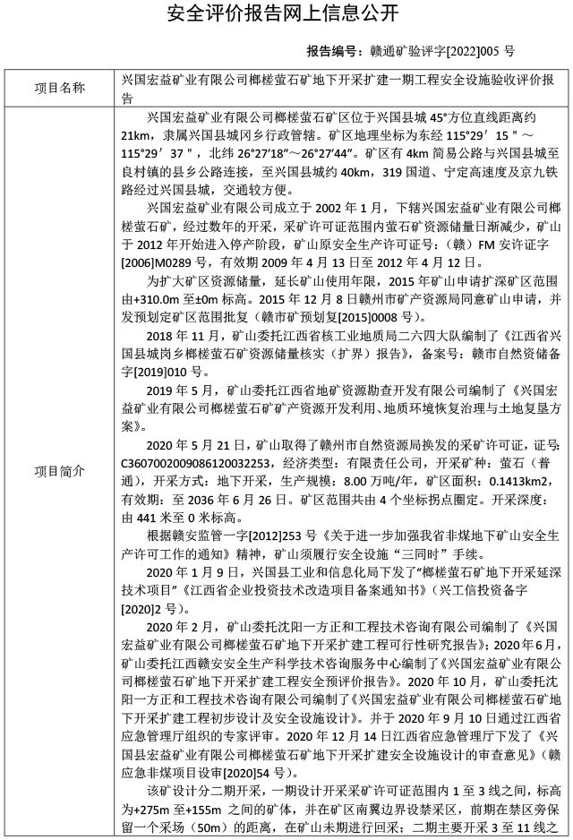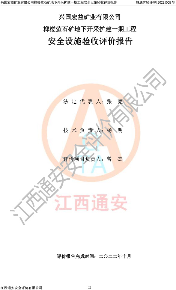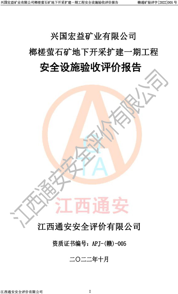 兴国宏益矿业有限公司榔槎萤石矿地下开采扩建一期工程安全设施验收评价报告