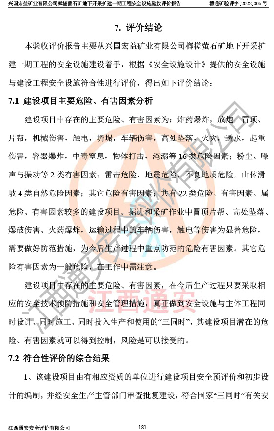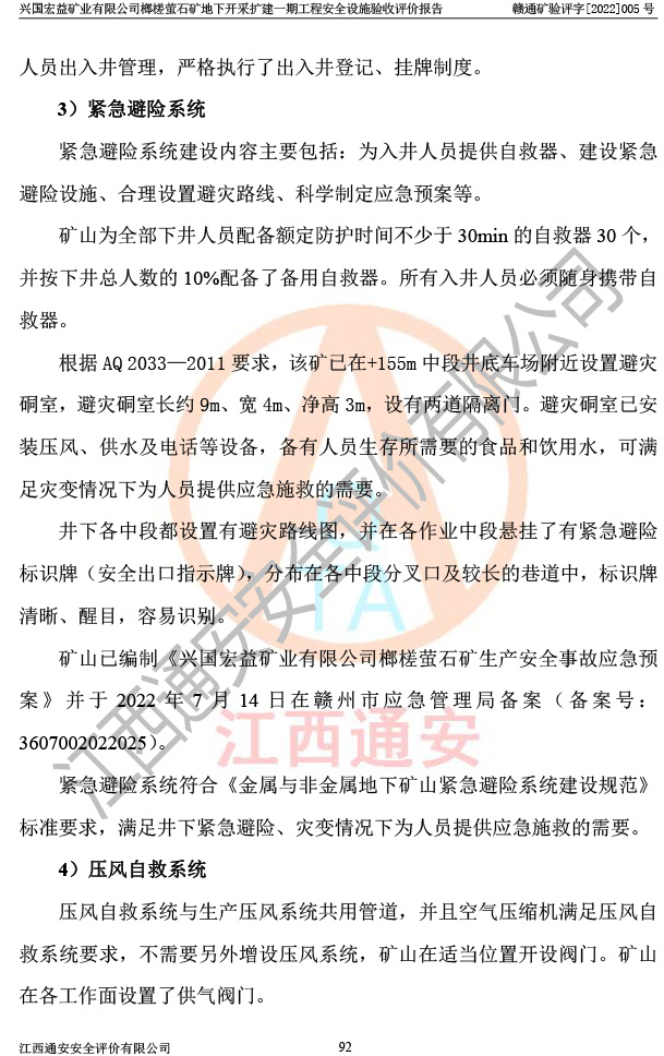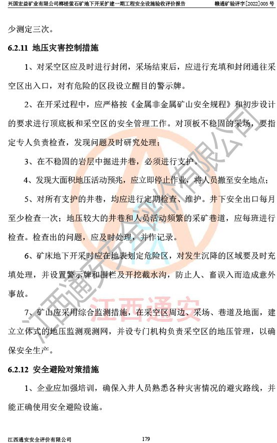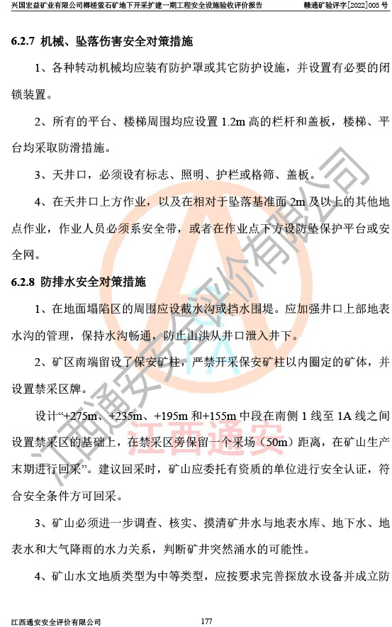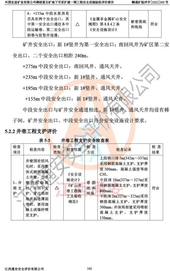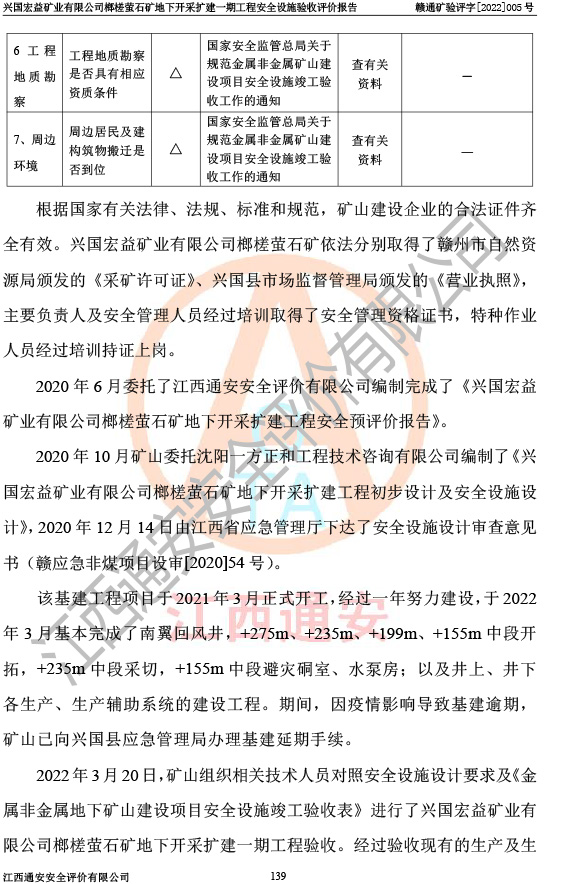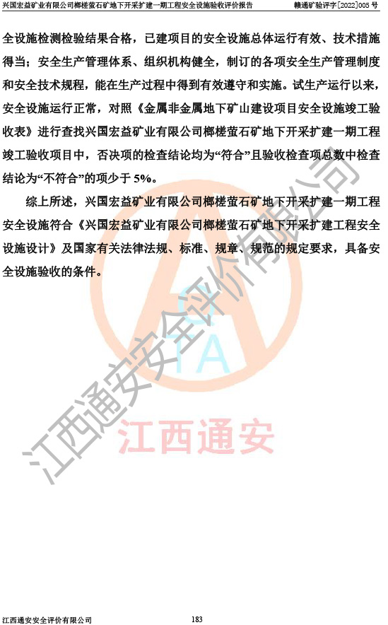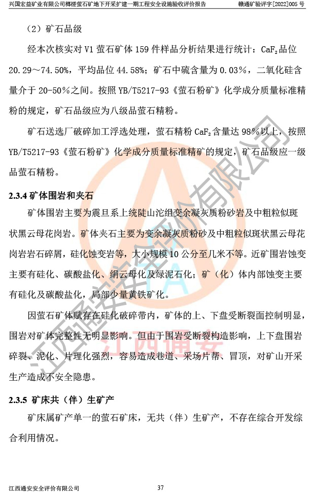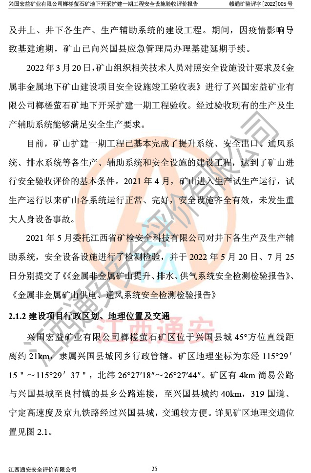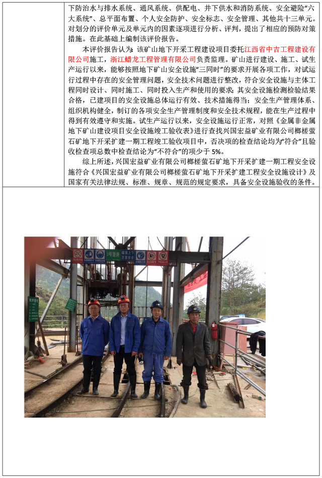 兴国宏益矿业有限公司榔槎萤石矿地下开采扩建一期工程安全设施验收评价报告