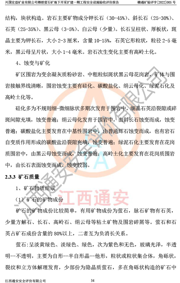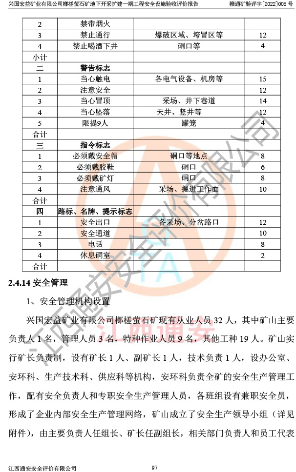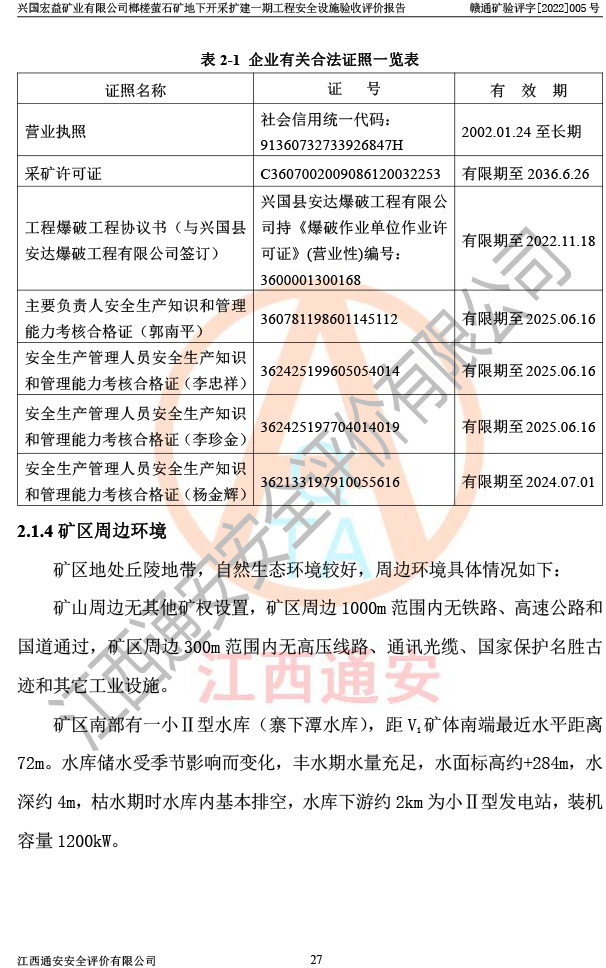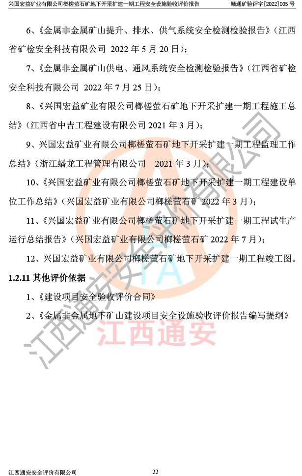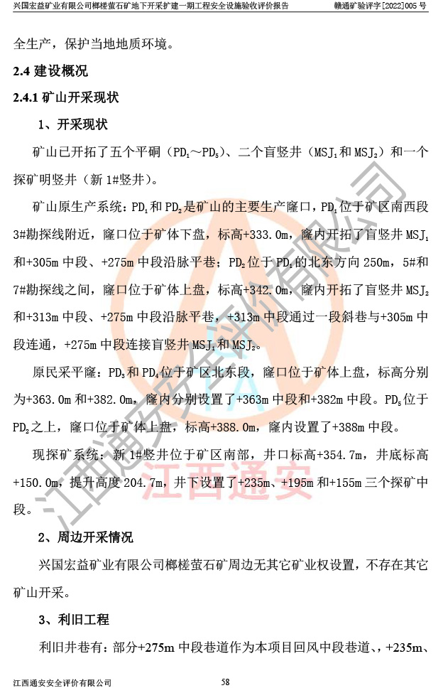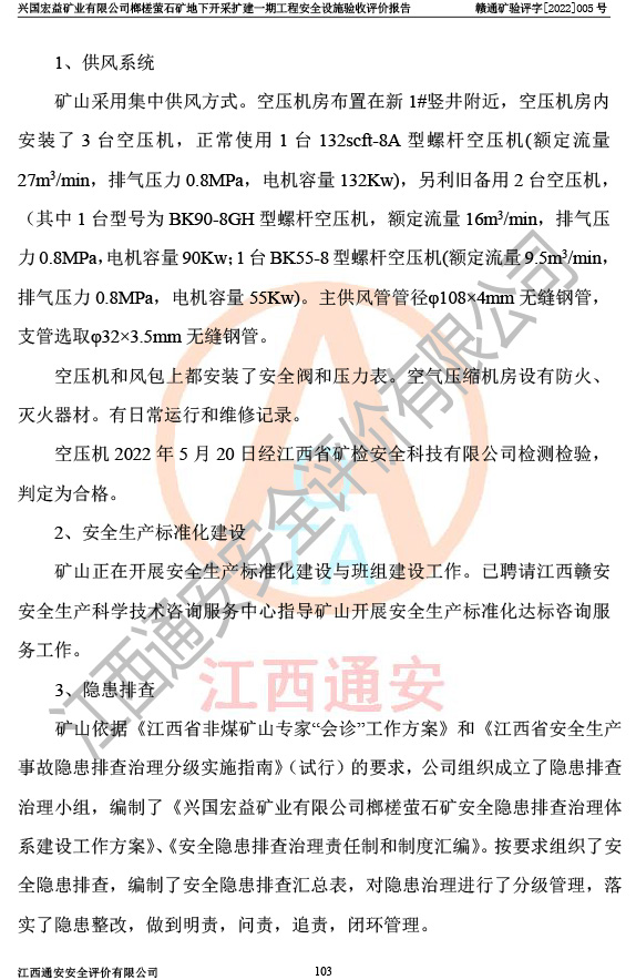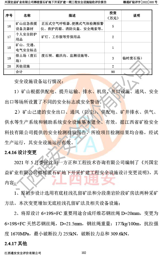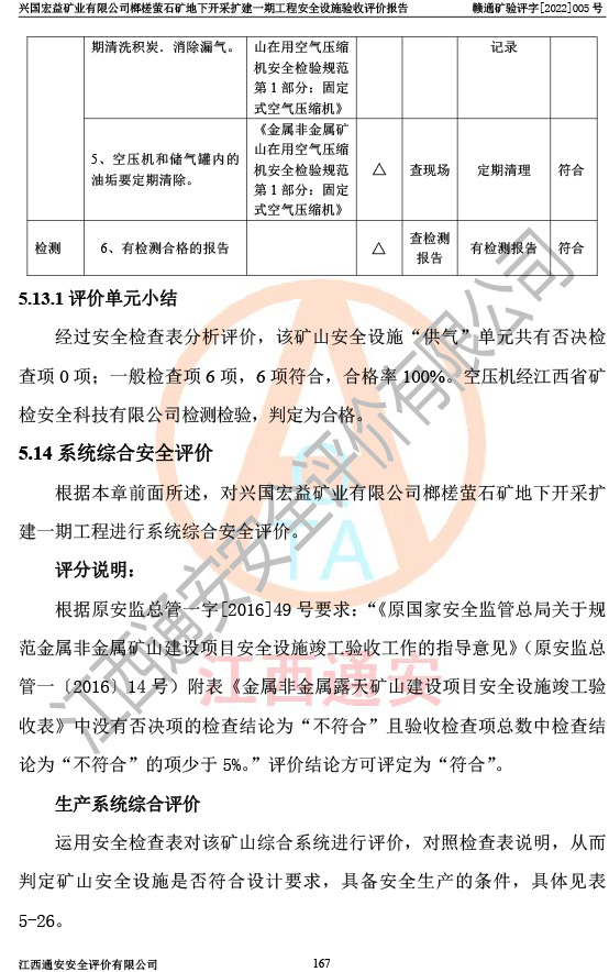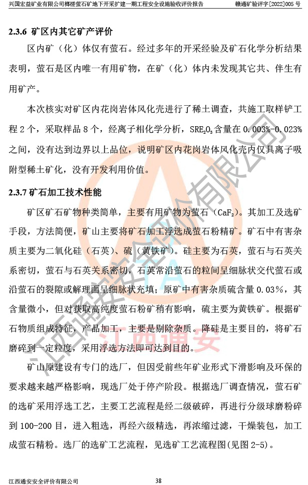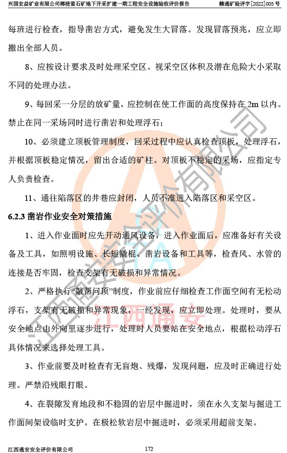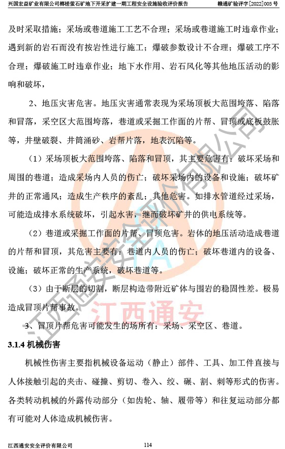 兴国宏益矿业有限公司榔槎萤石矿地下开采扩建一期工程安全设施验收评价报告