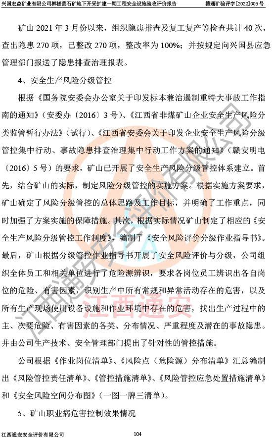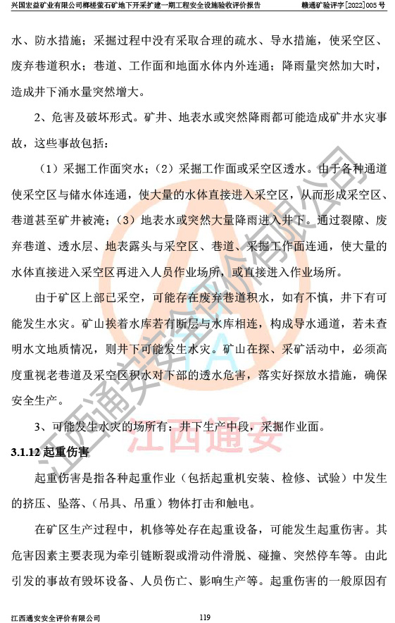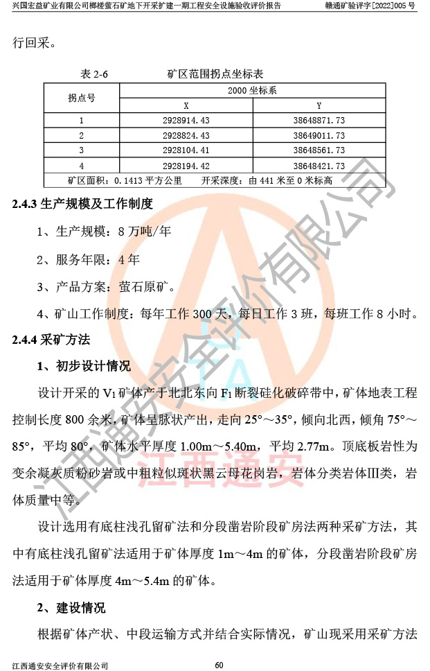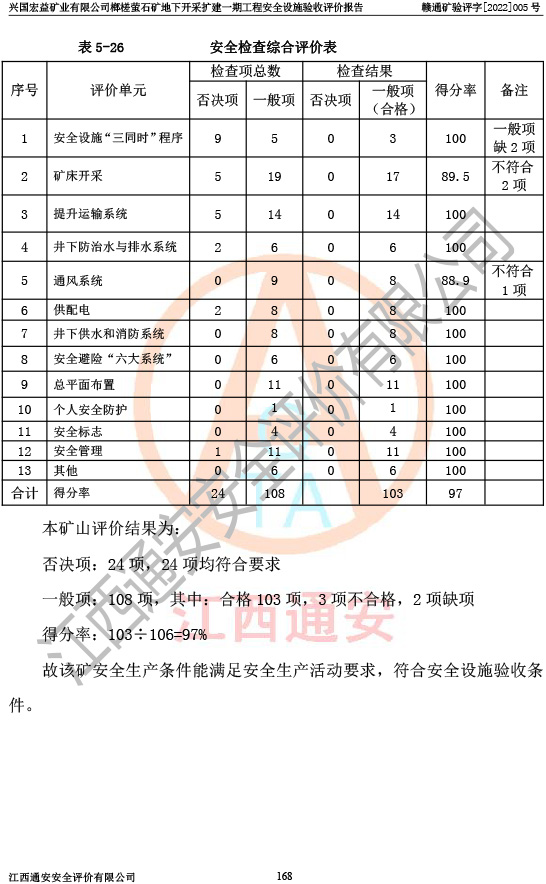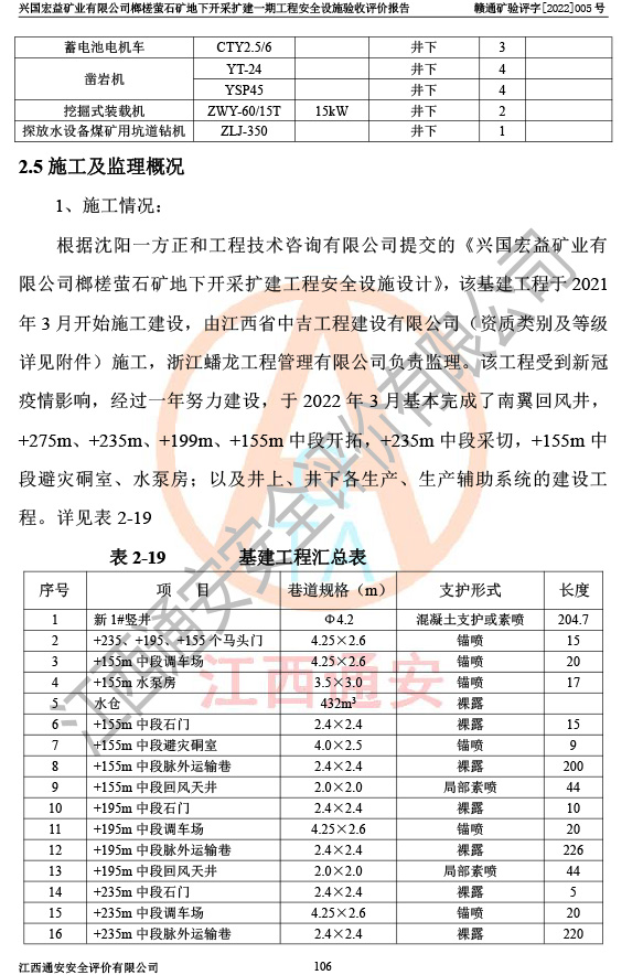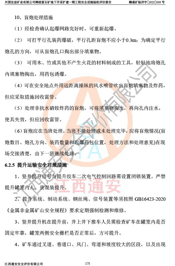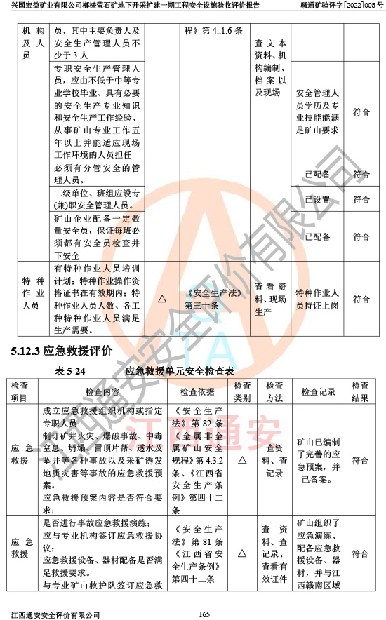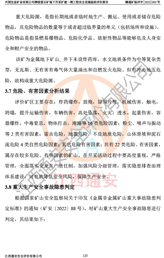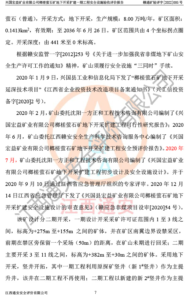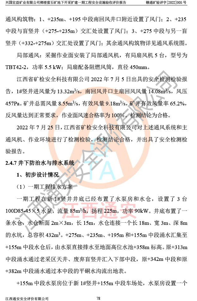兴国宏益矿业有限公司榔槎萤石矿地下开采扩建一期工程安全设施验收评价报告