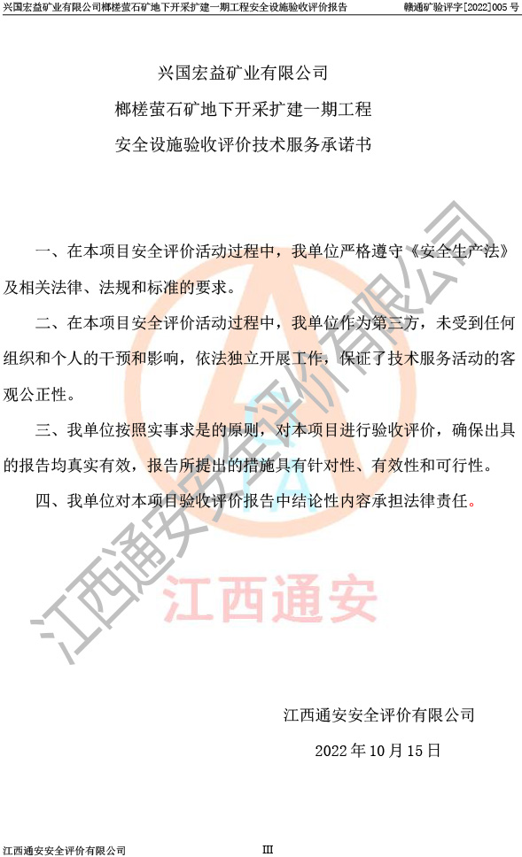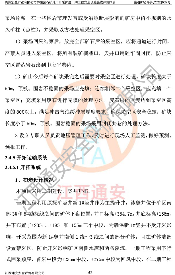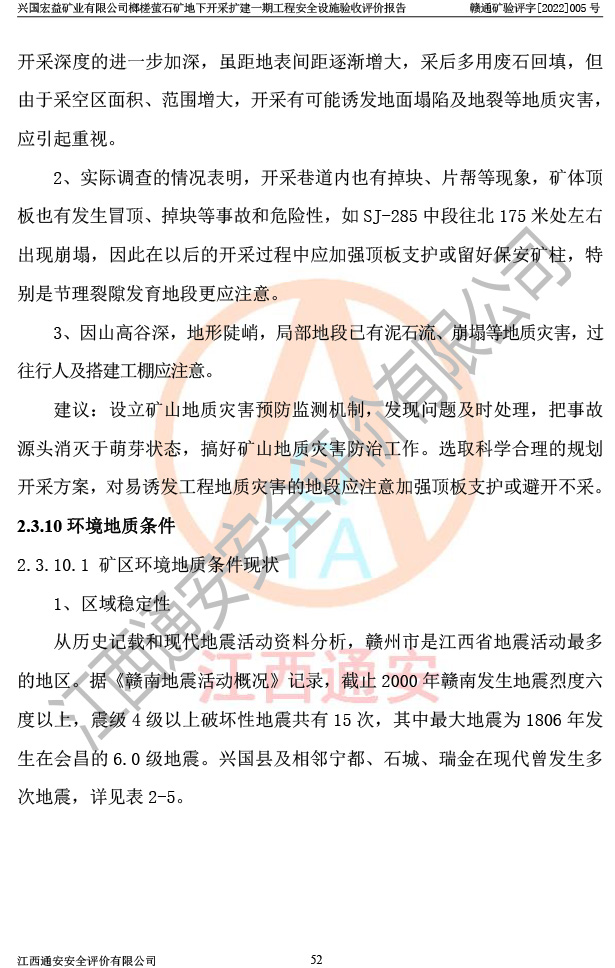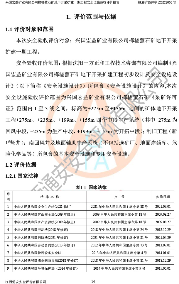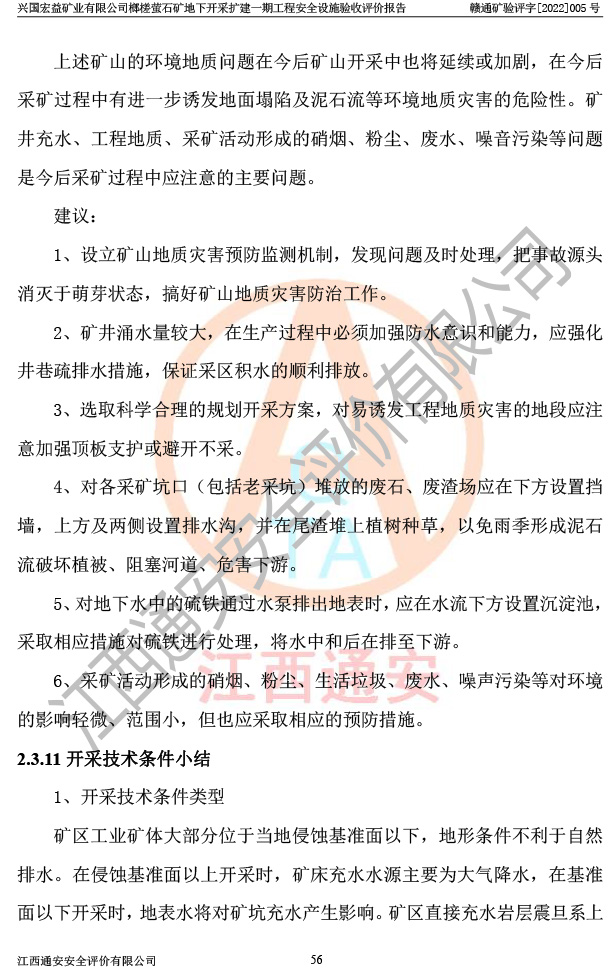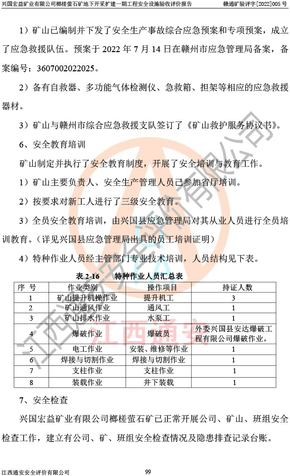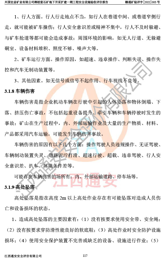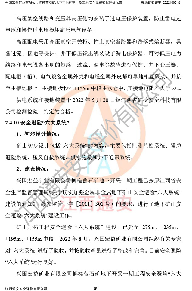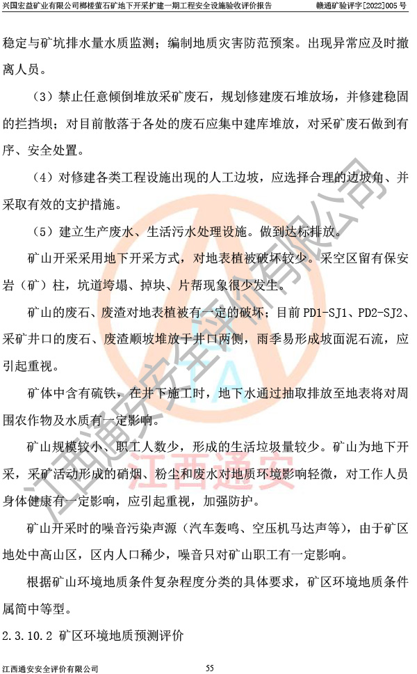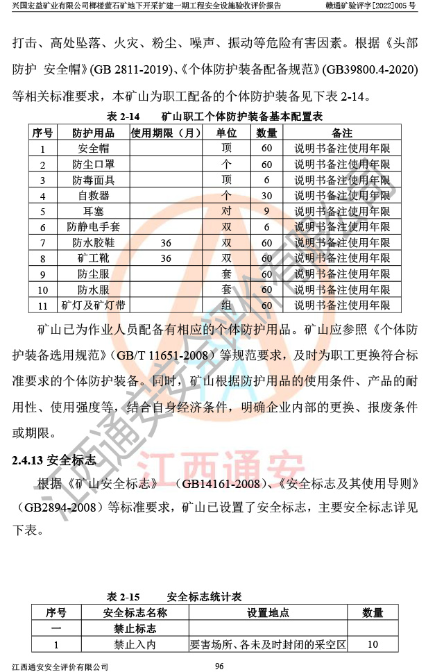 兴国宏益矿业有限公司榔槎萤石矿地下开采扩建一期工程安全设施验收评价报告
