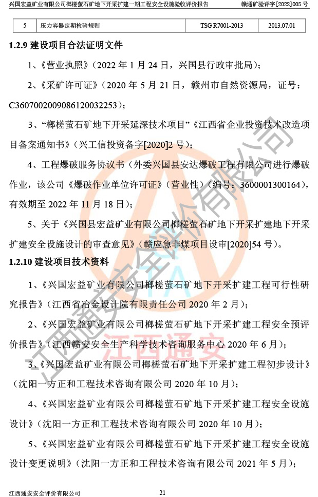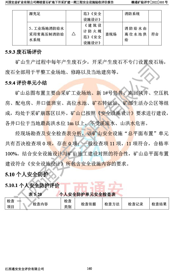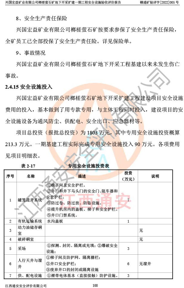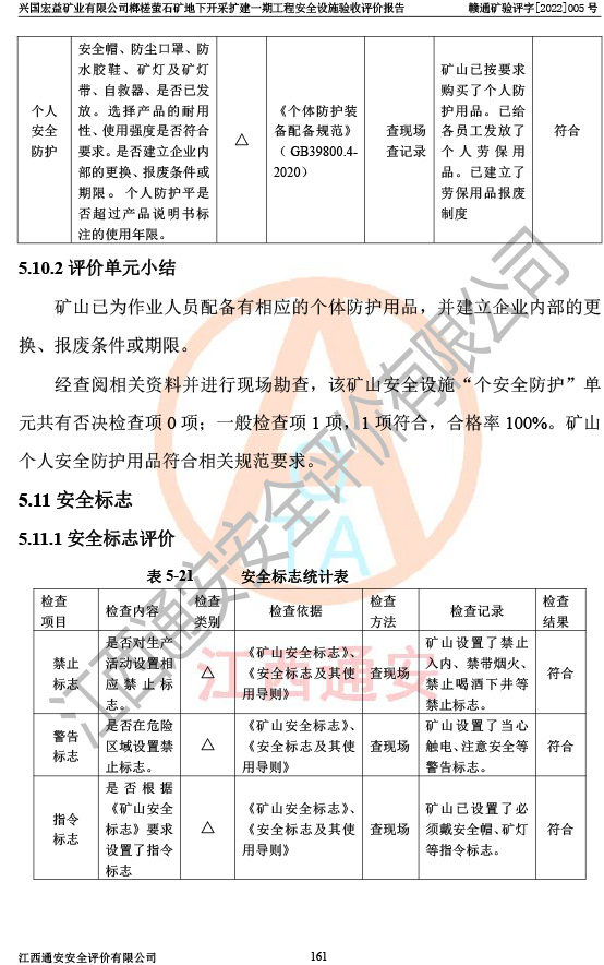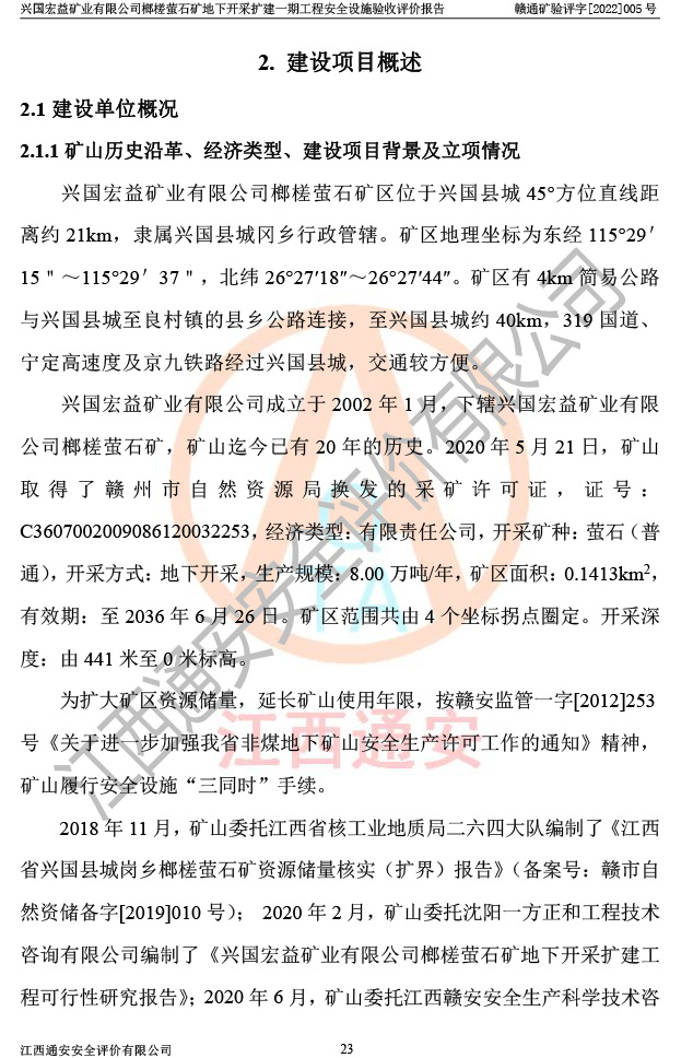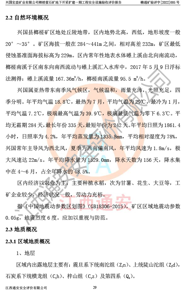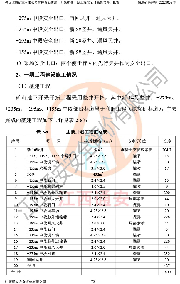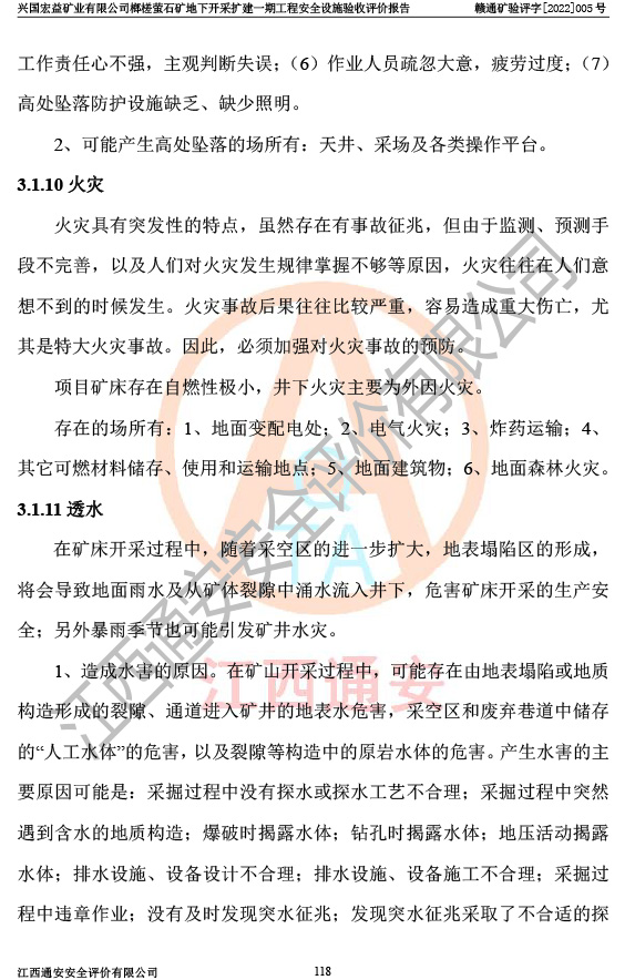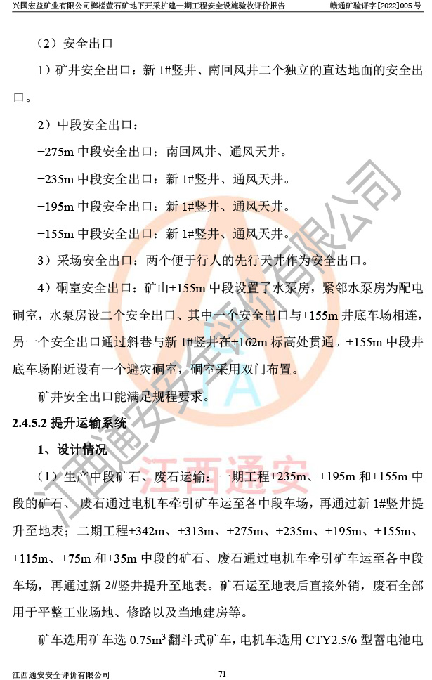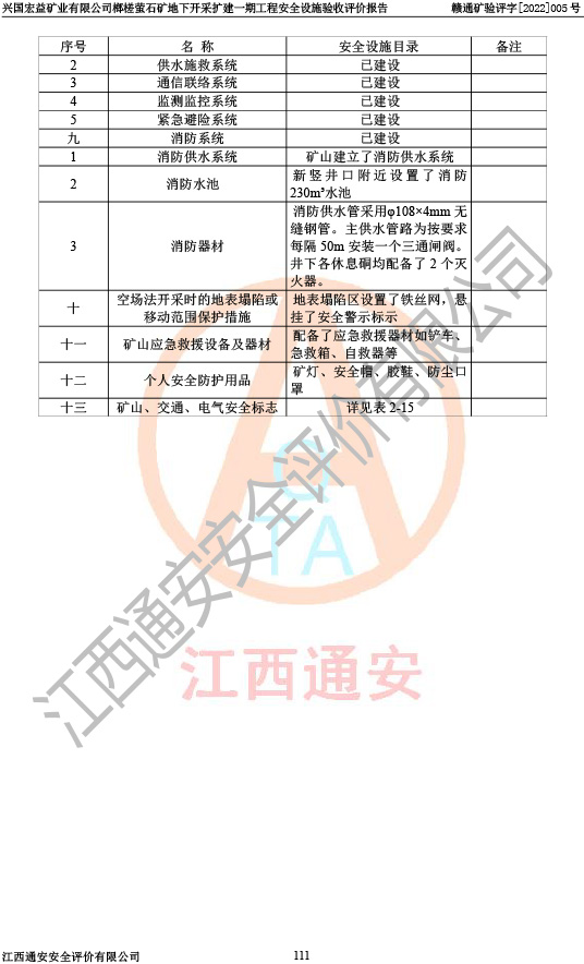 兴国宏益矿业有限公司榔槎萤石矿地下开采扩建一期工程安全设施验收评价报告