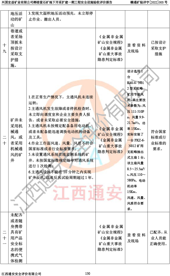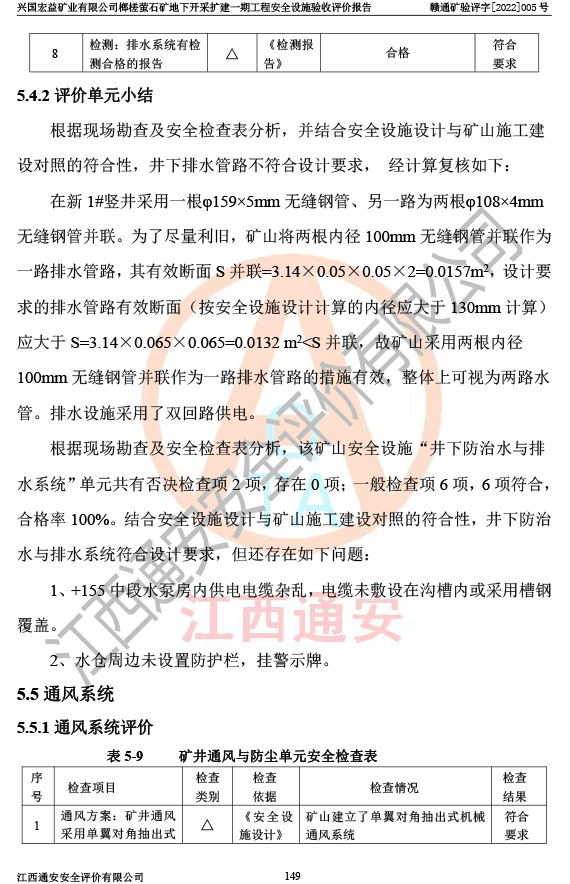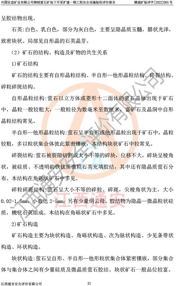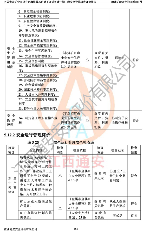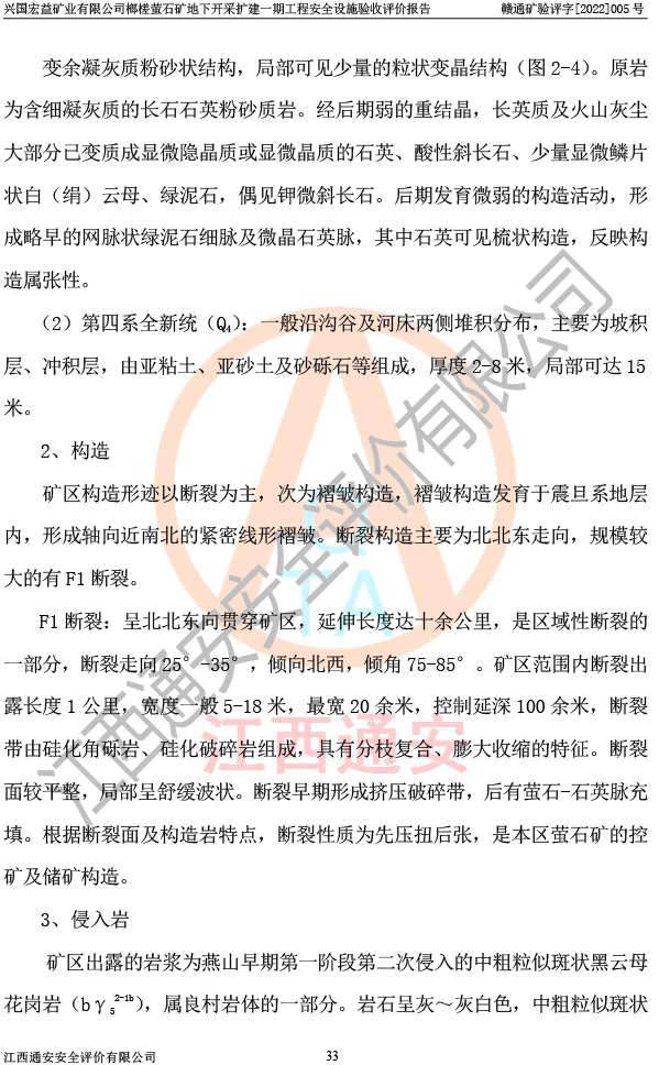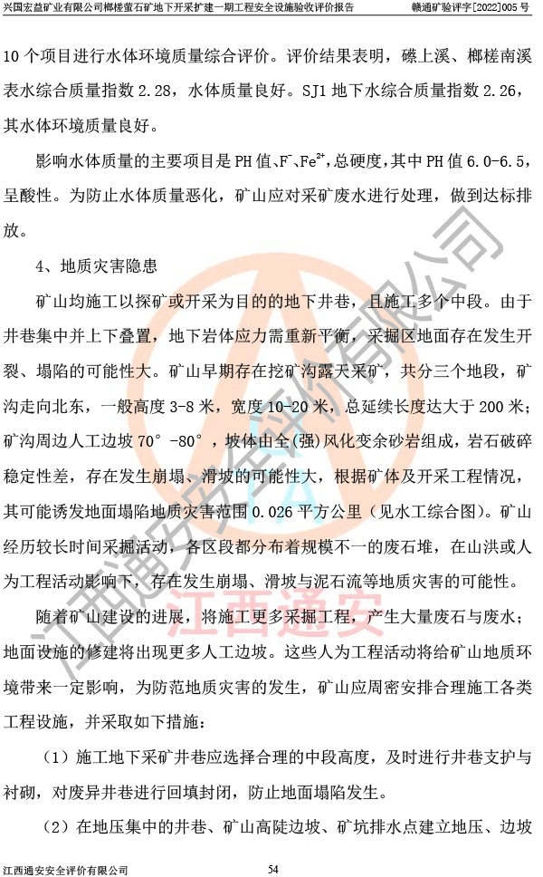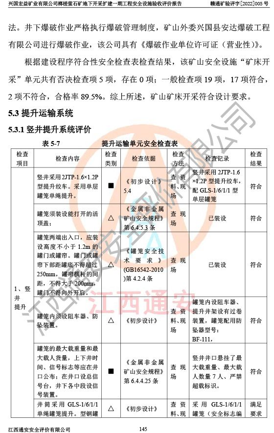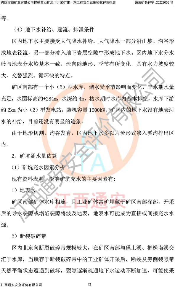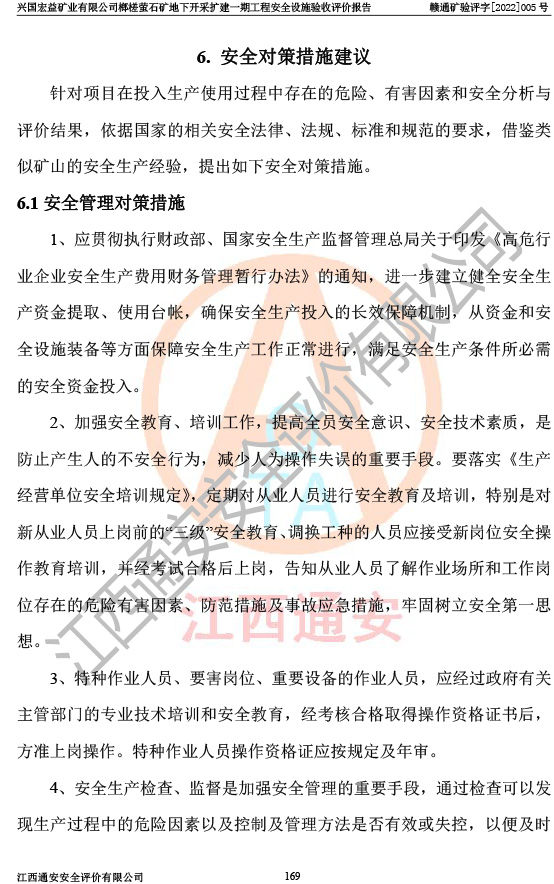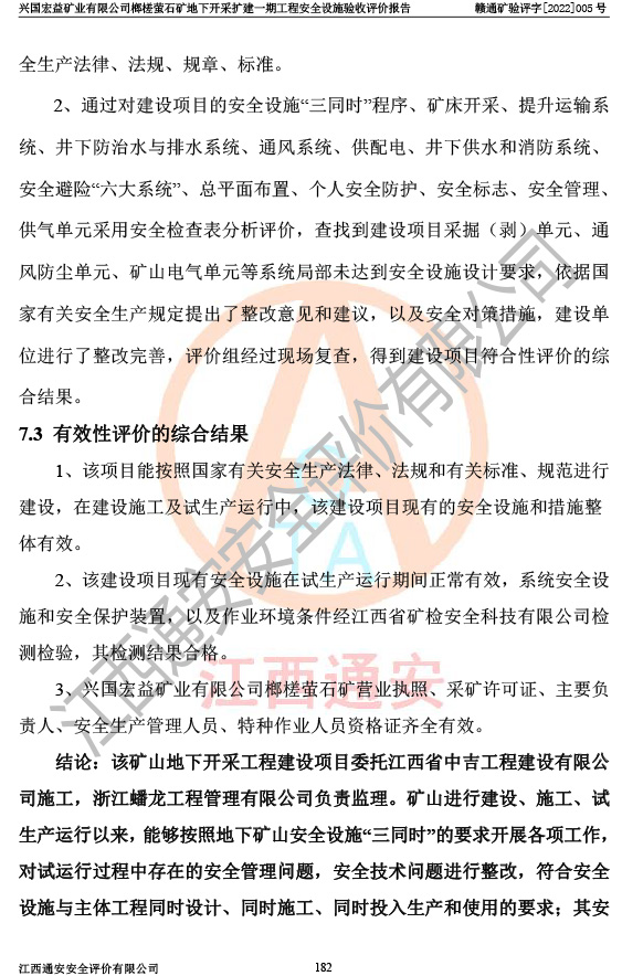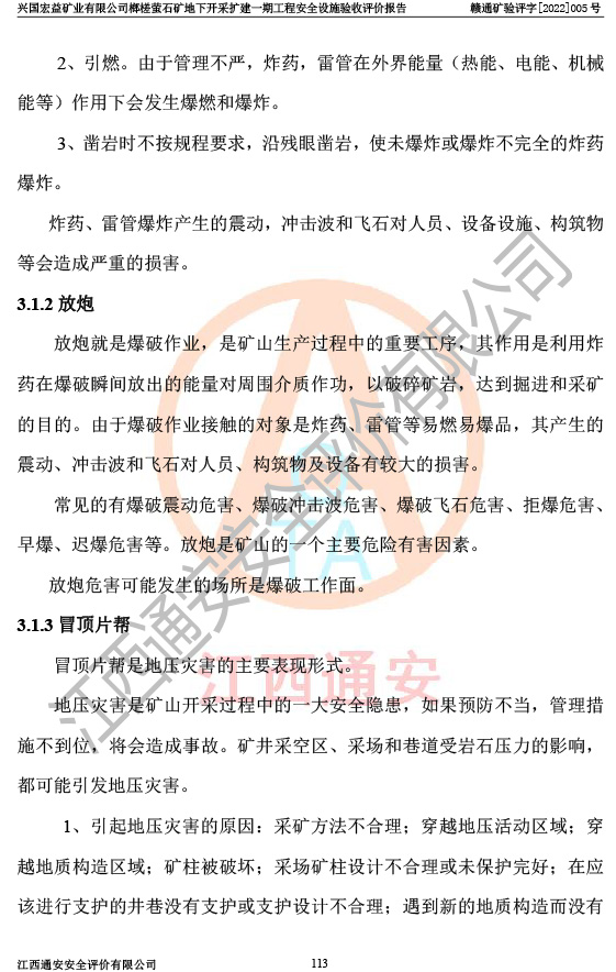 兴国宏益矿业有限公司榔槎萤石矿地下开采扩建一期工程安全设施验收评价报告