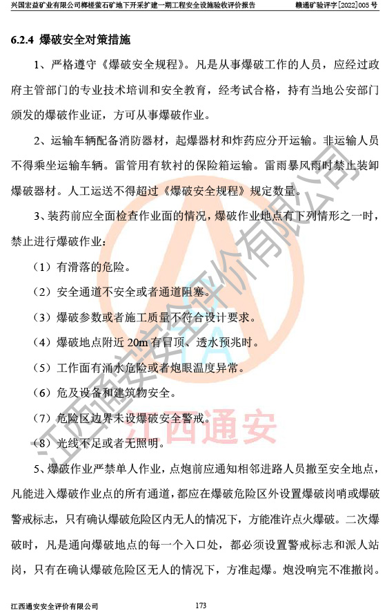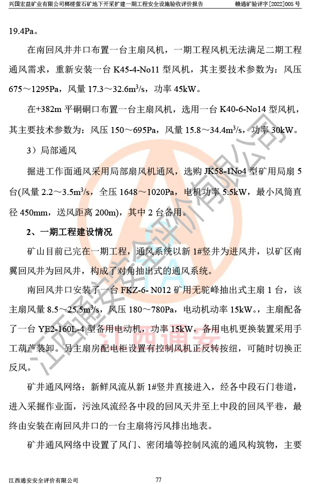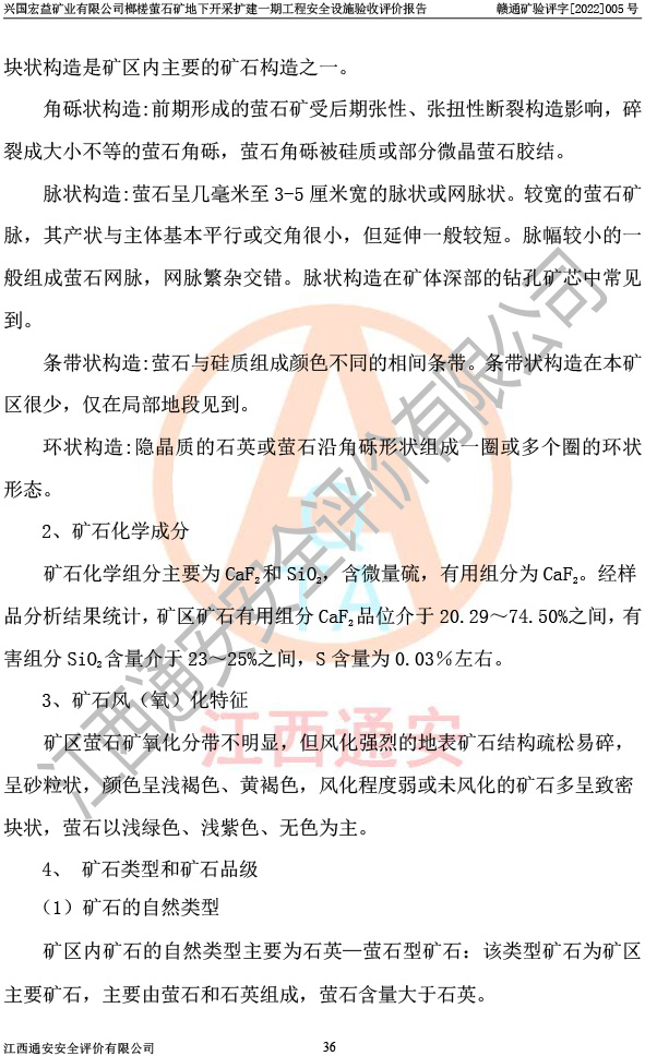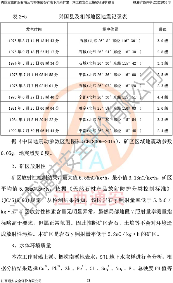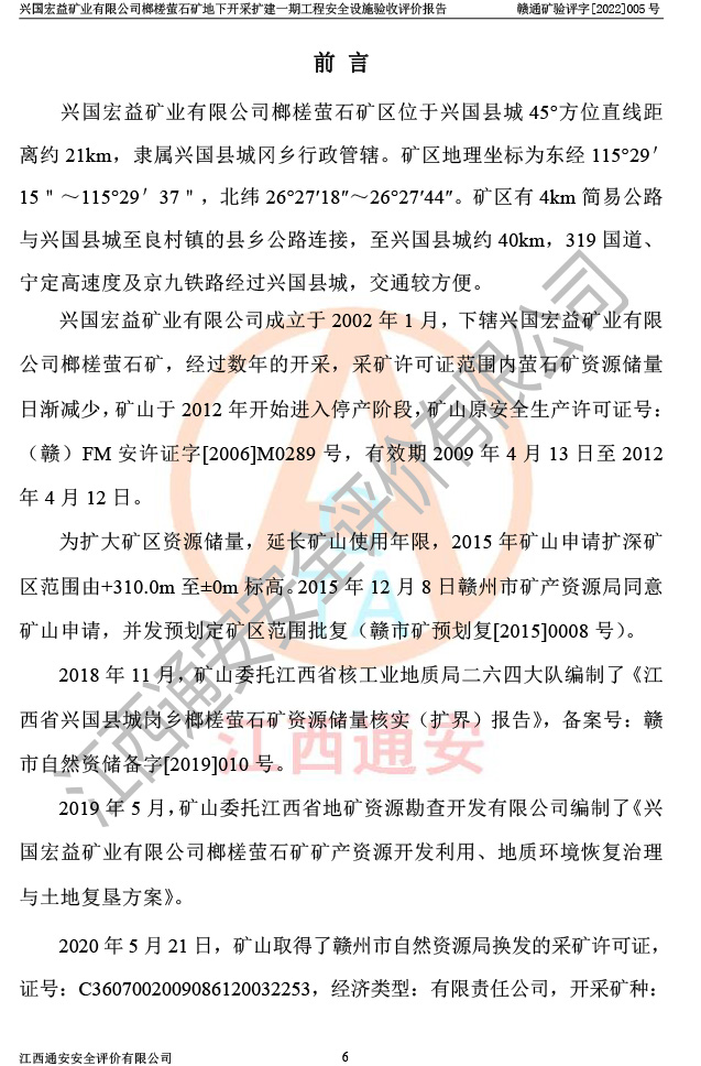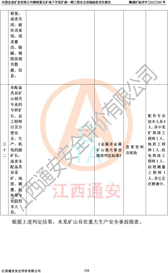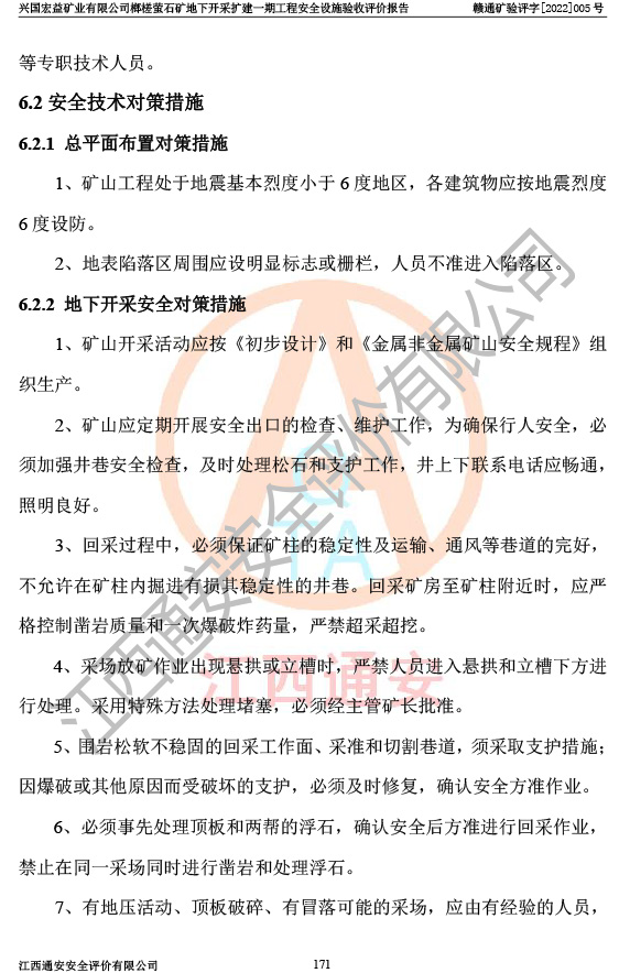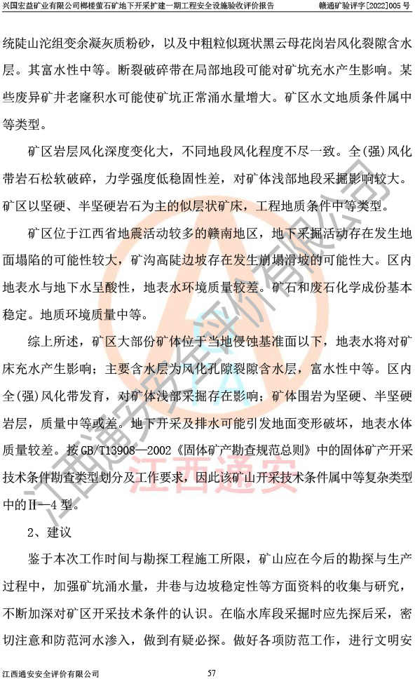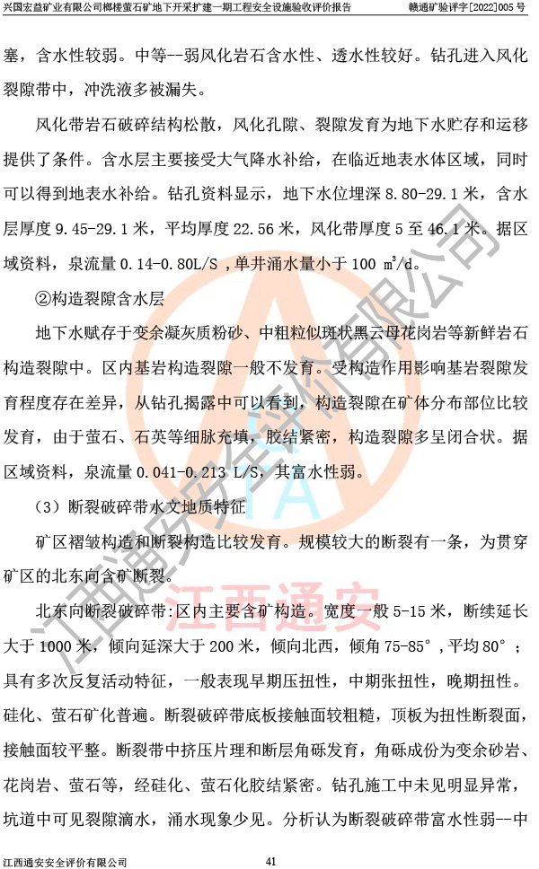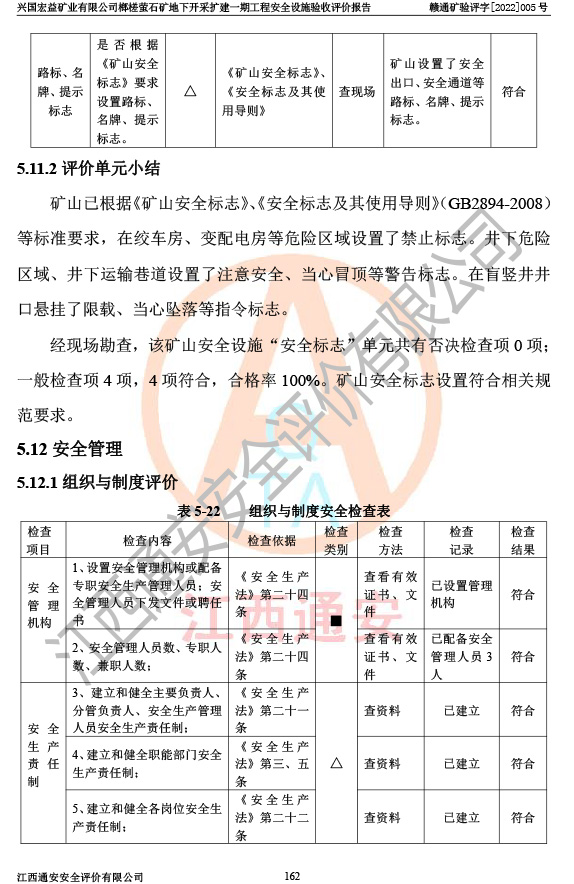 兴国宏益矿业有限公司榔槎萤石矿地下开采扩建一期工程安全设施验收评价报告