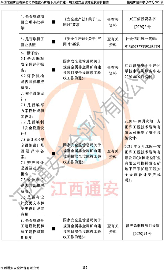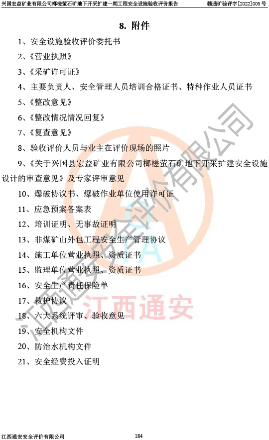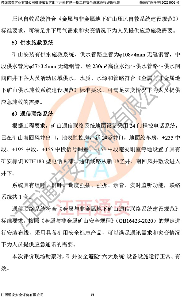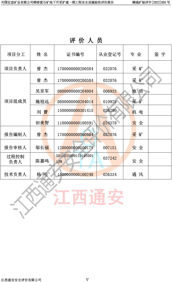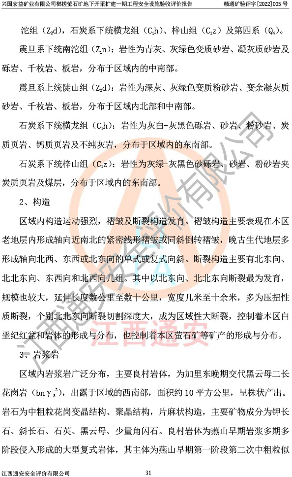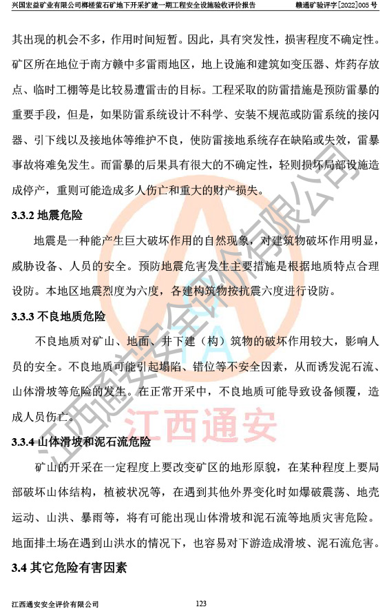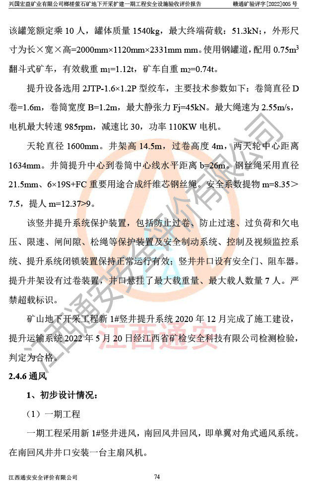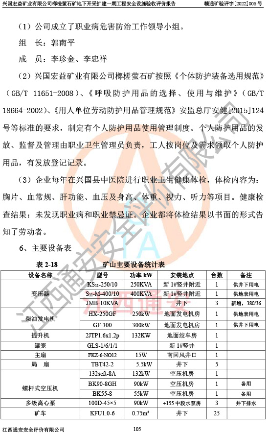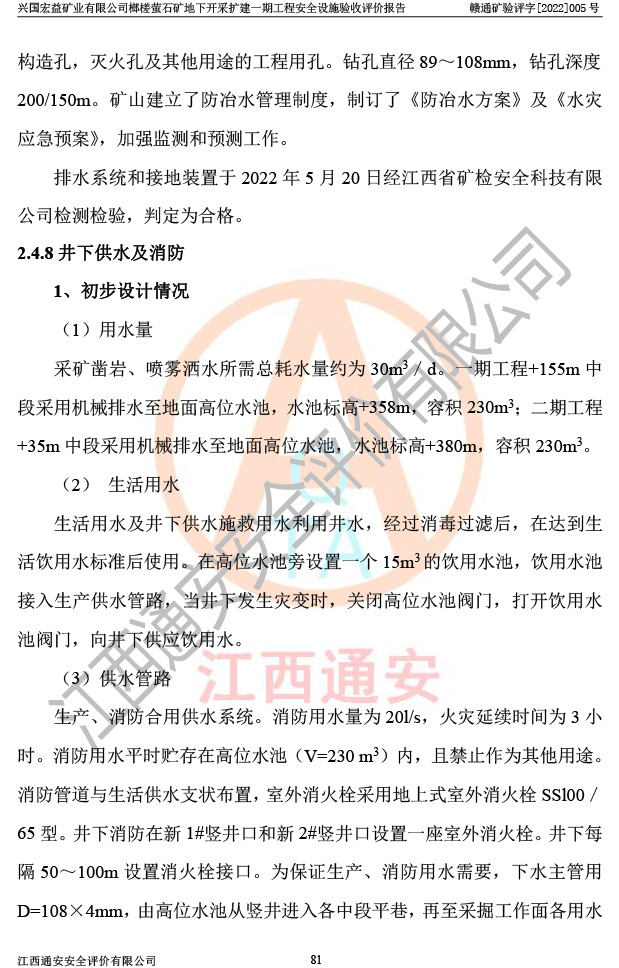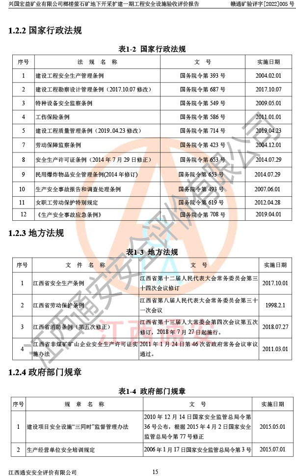 兴国宏益矿业有限公司榔槎萤石矿地下开采扩建一期工程安全设施验收评价报告