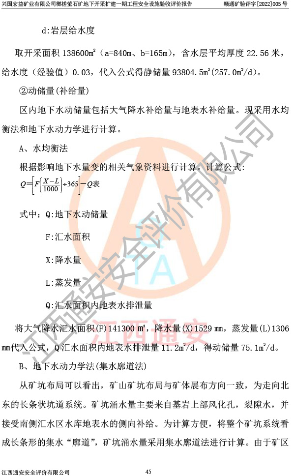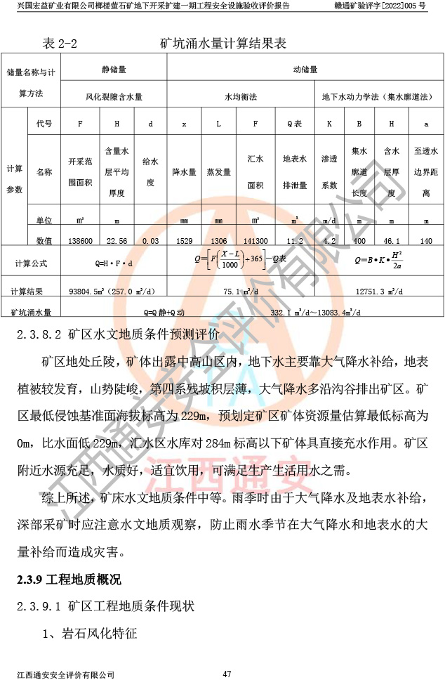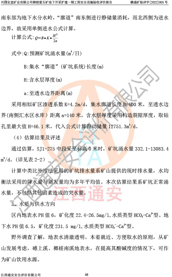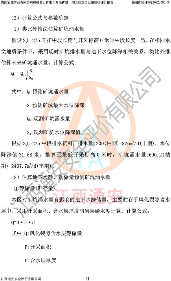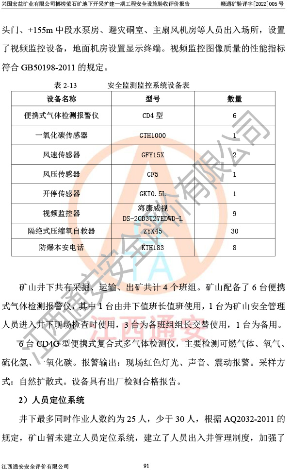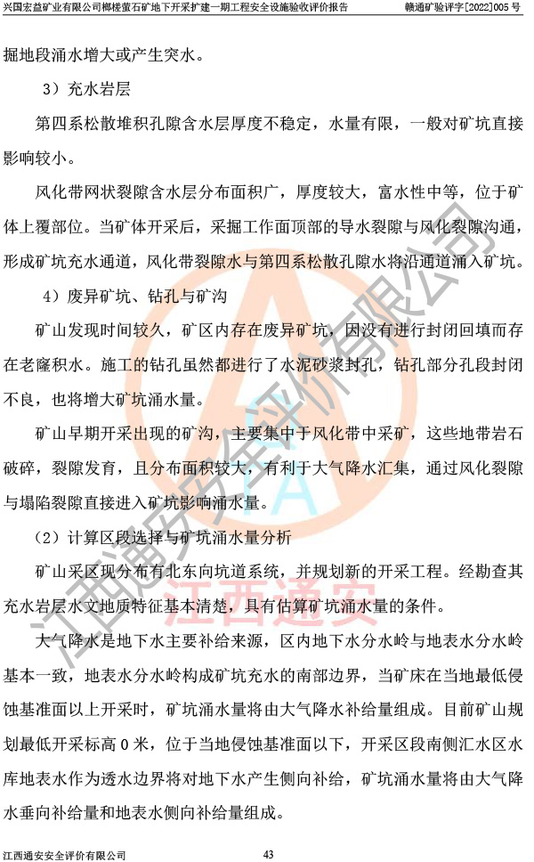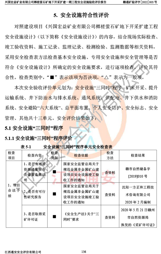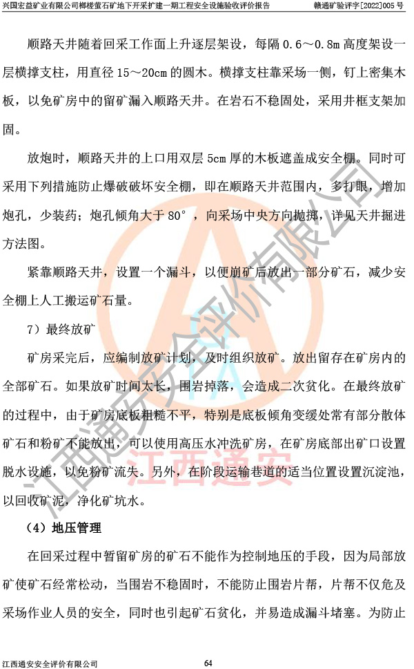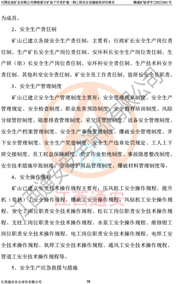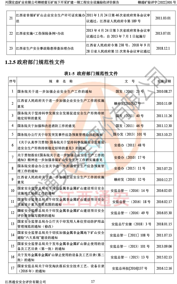 兴国宏益矿业有限公司榔槎萤石矿地下开采扩建一期工程安全设施验收评价报告