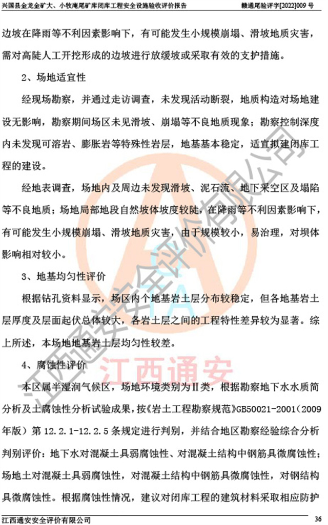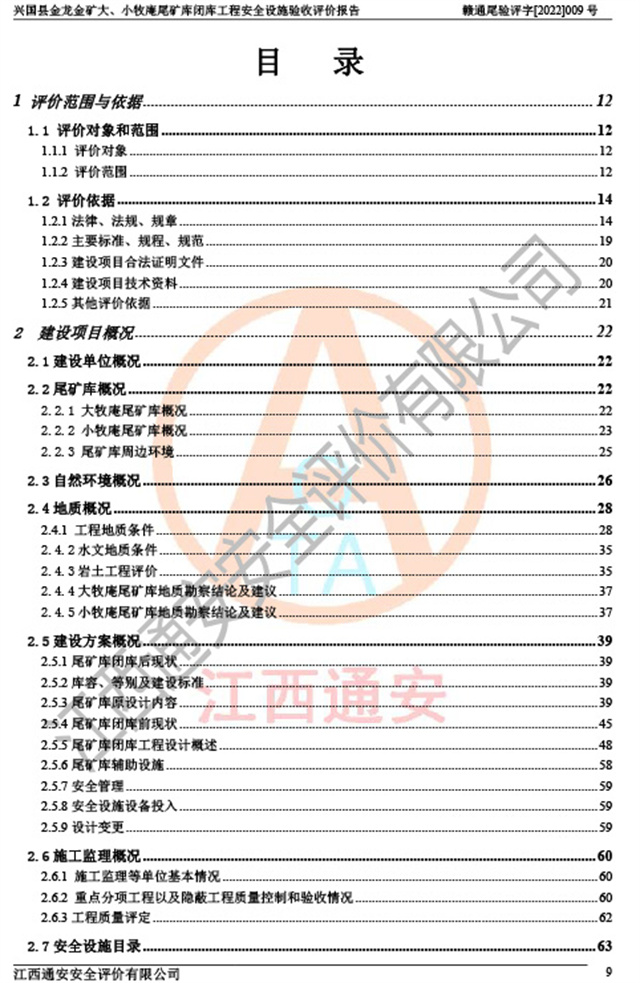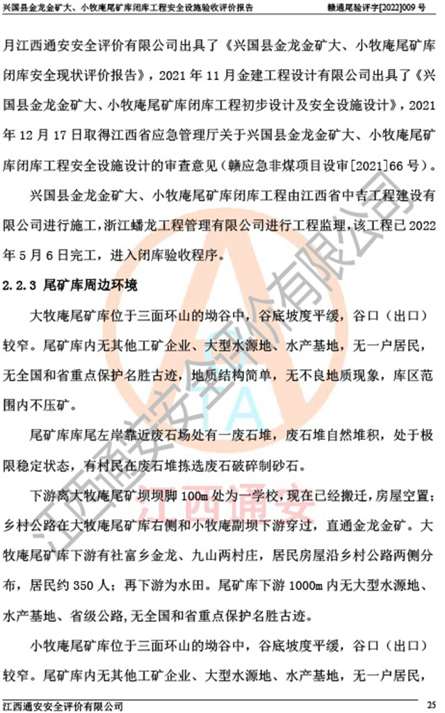 兴国县金龙金矿大、小牧庵尾矿库闭库工程安全设施验收评价报告
