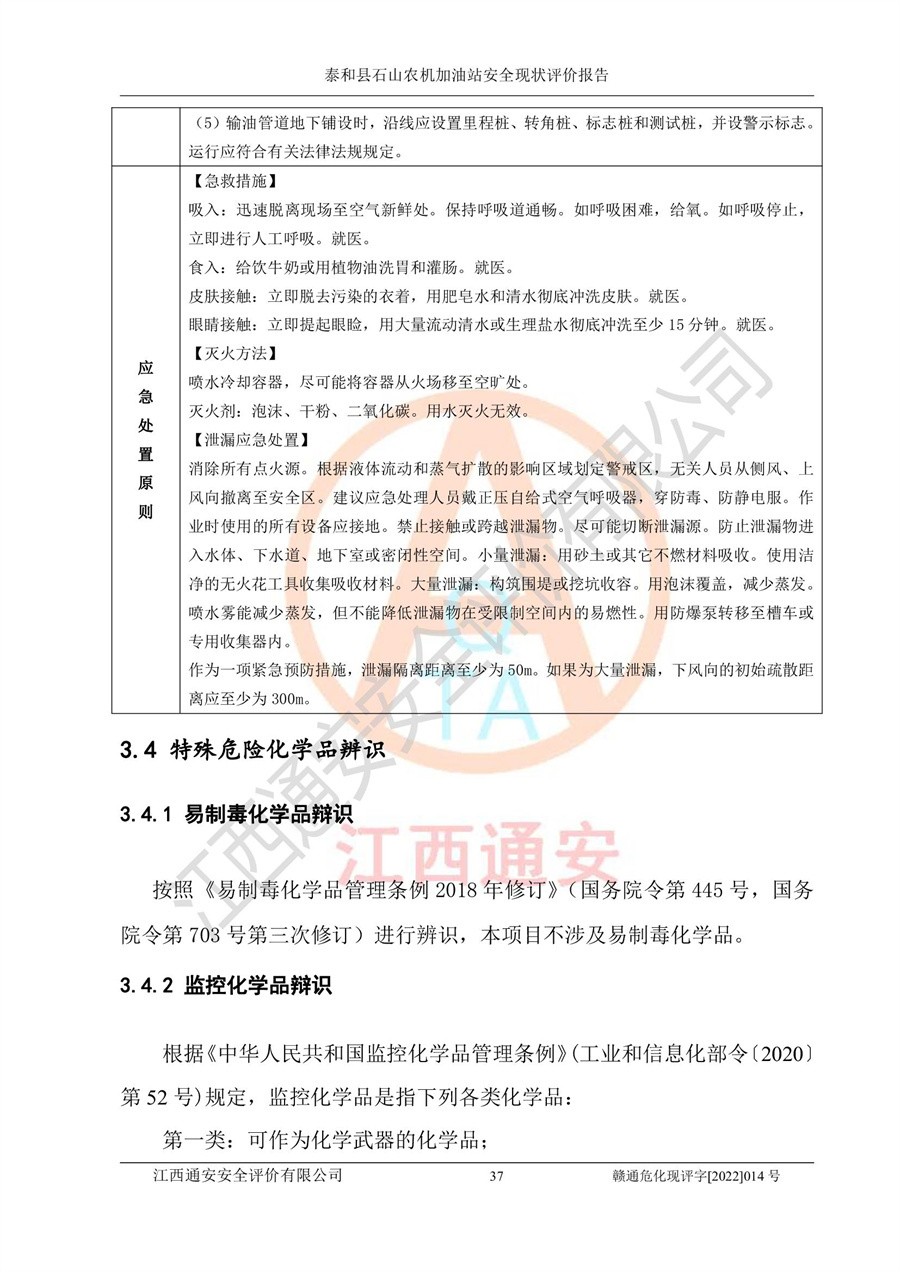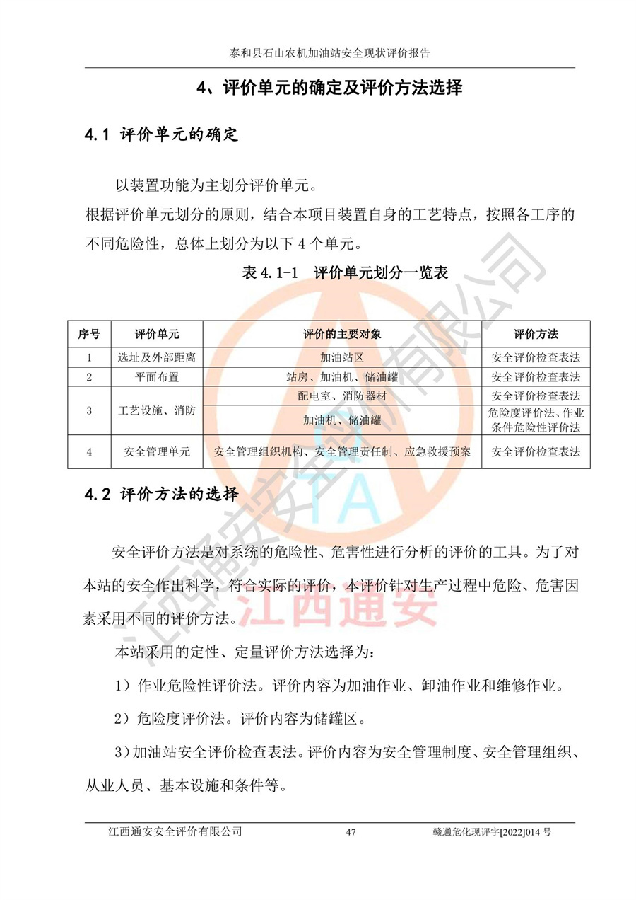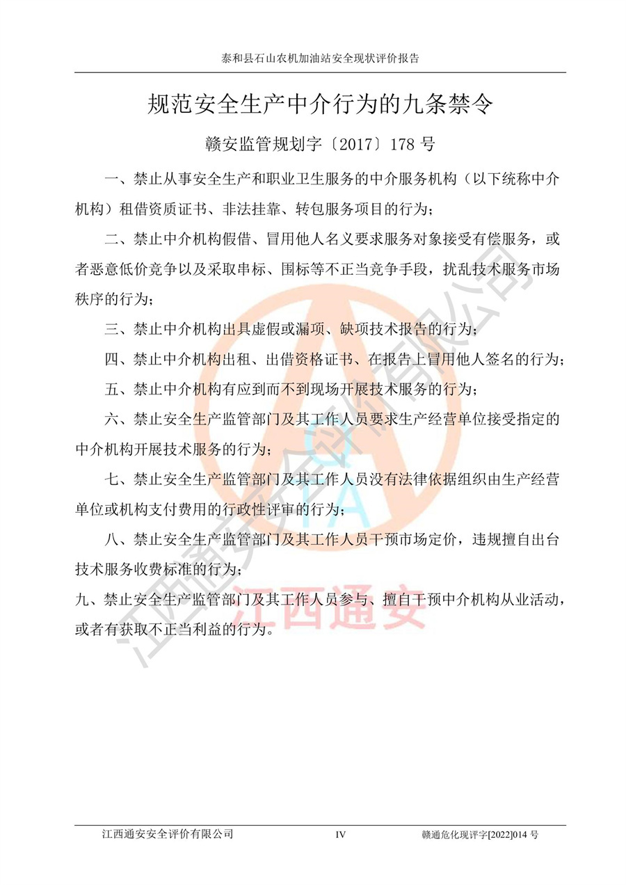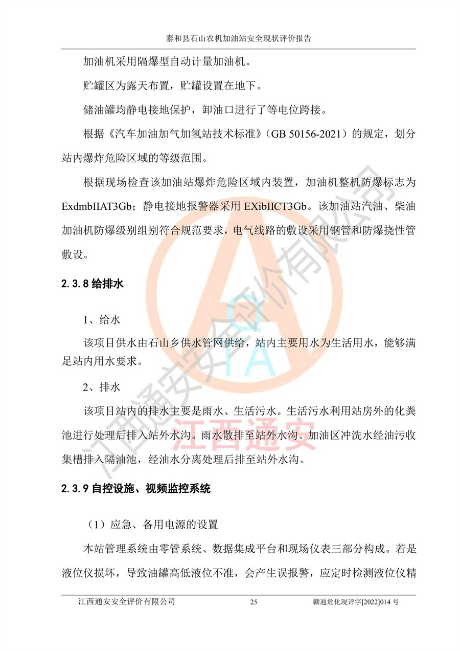泰和县石山农机加油站安全现状评价报告