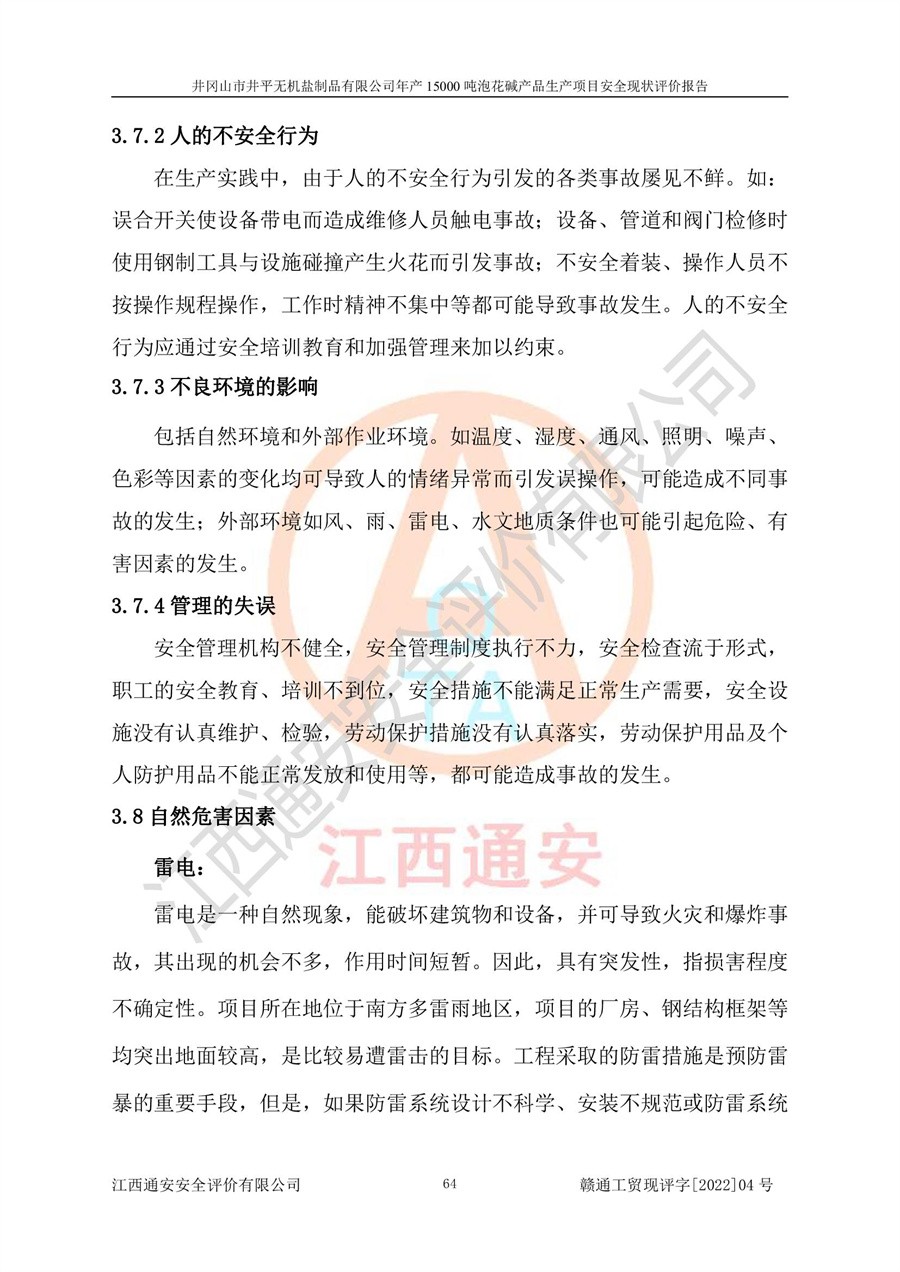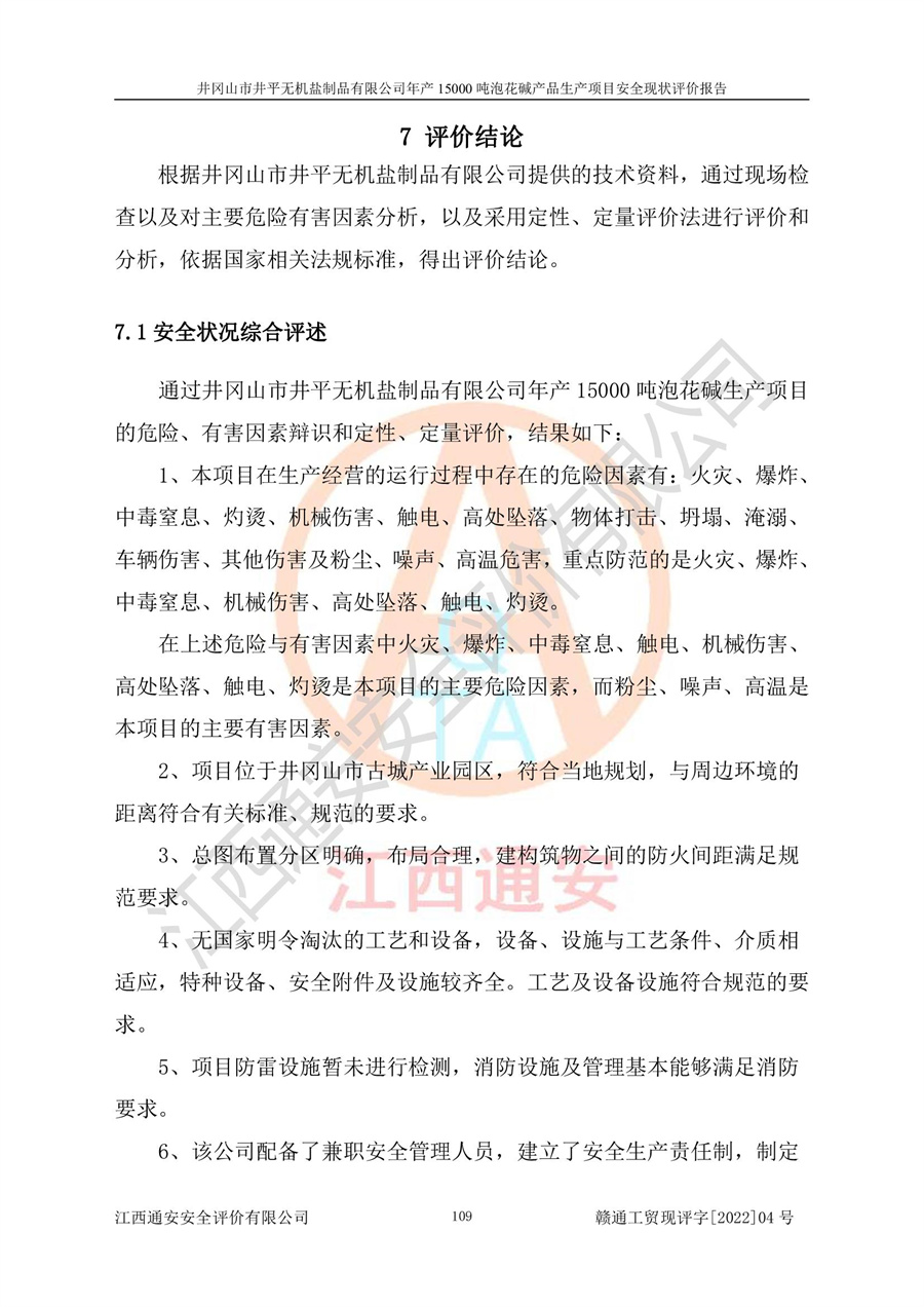 井冈山市井平无机盐制品有限公司年产15000吨泡花碱产品生产项目安全现状评价报告