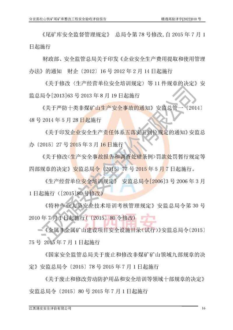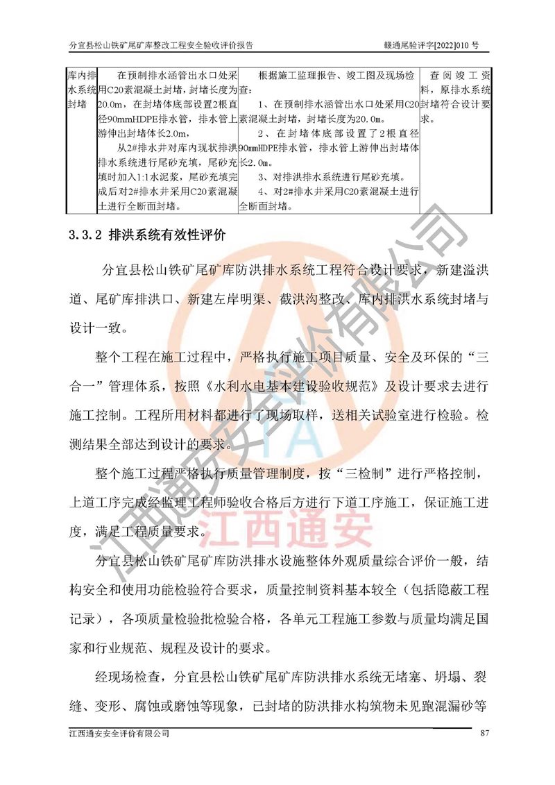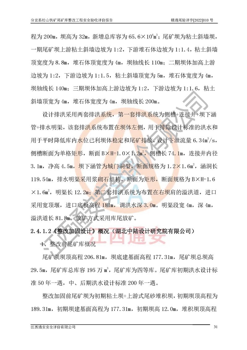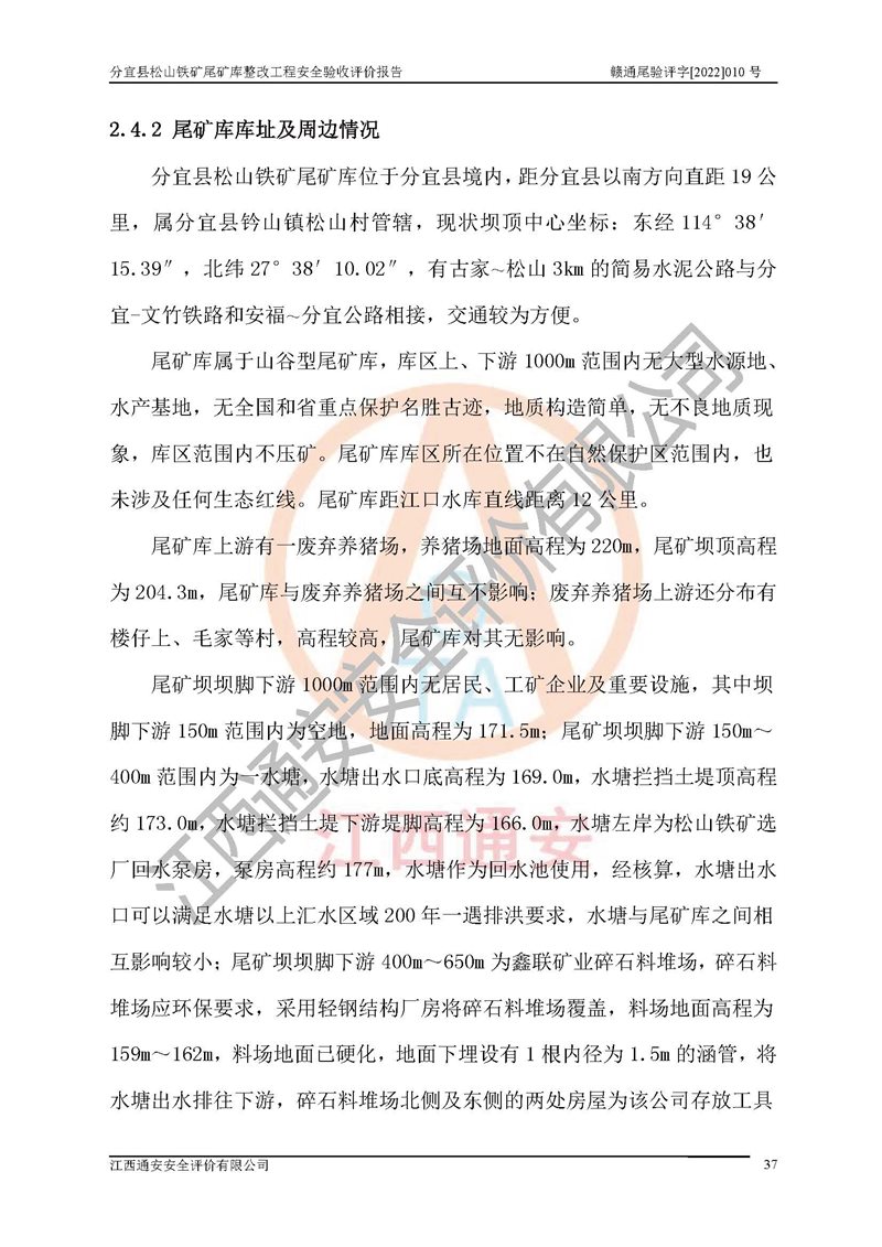 评价报告名称 | 分宜县松山铁矿尾矿库整改工程安全验收评价报告 | |||