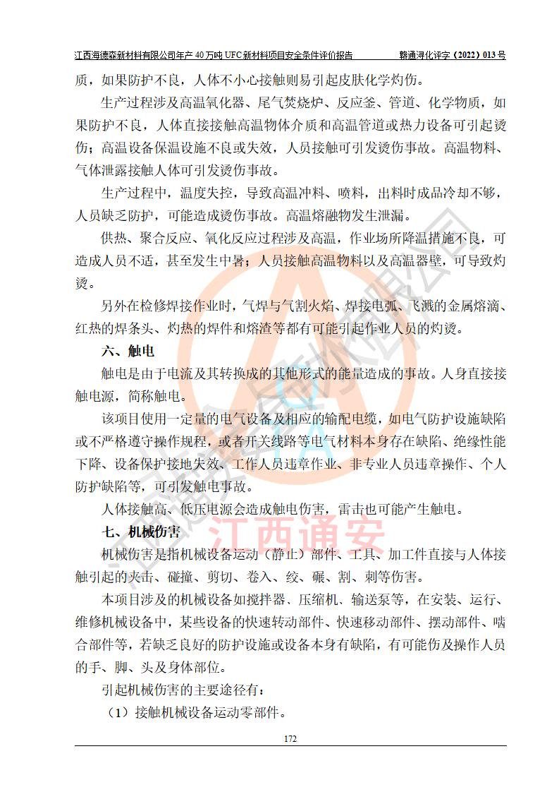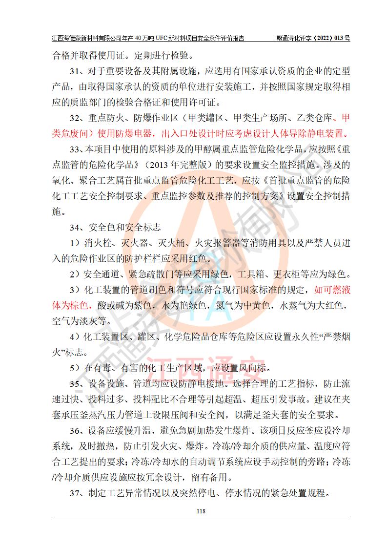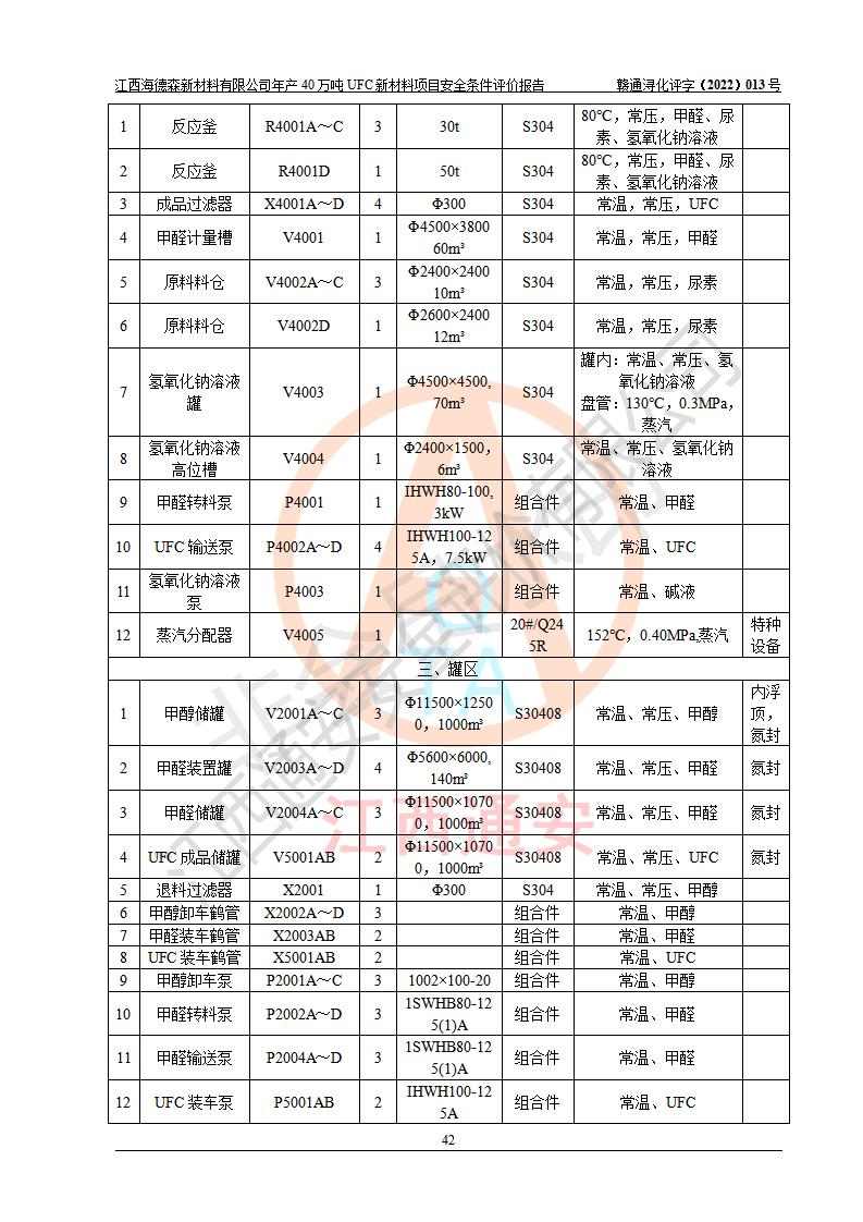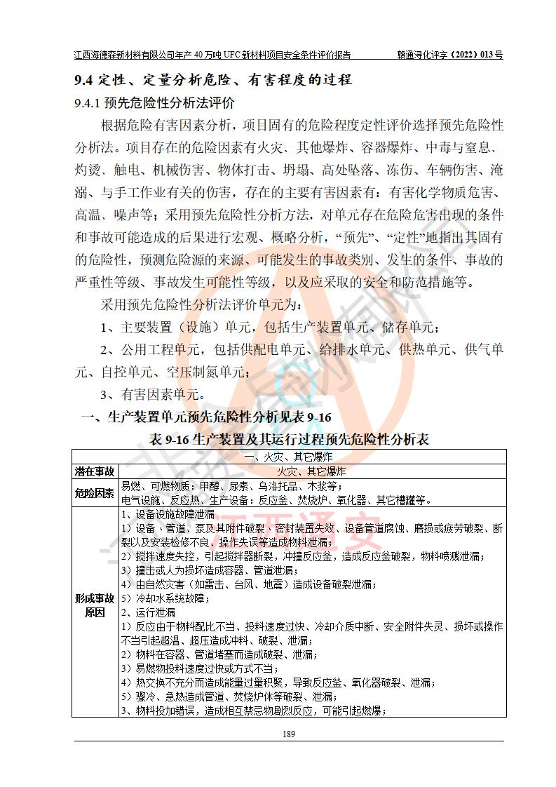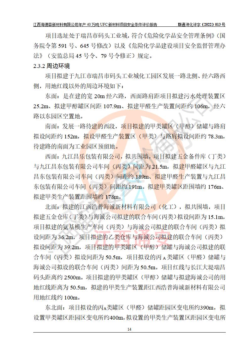 评价报告名称 | 江西海德森新材料有限公司年产40万吨UFC新材料项目安全条件评价报告 | |||