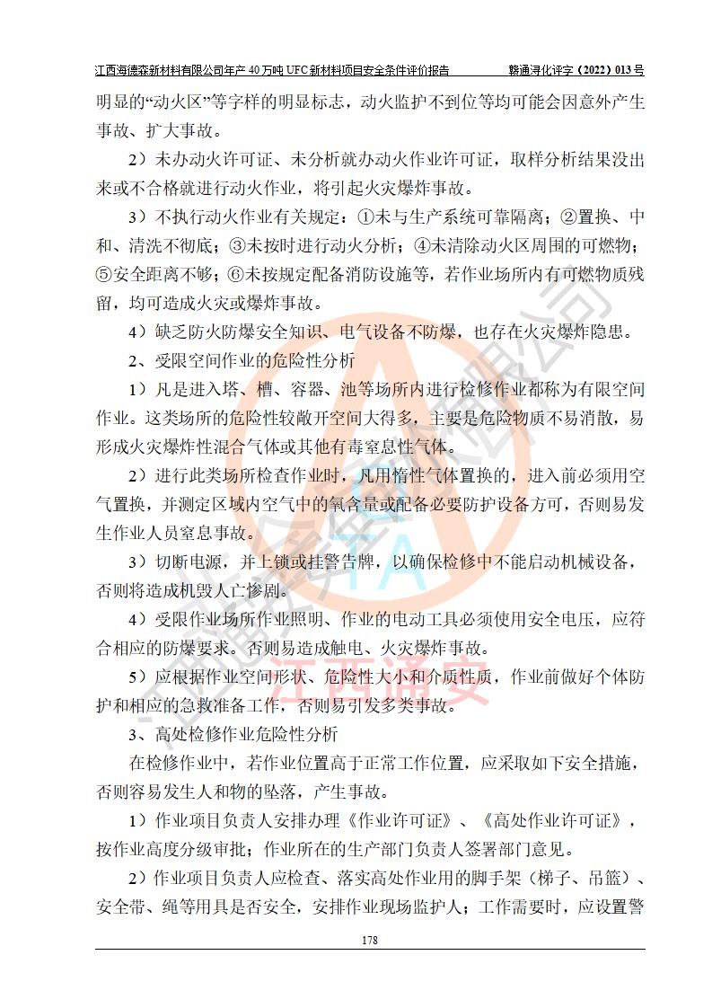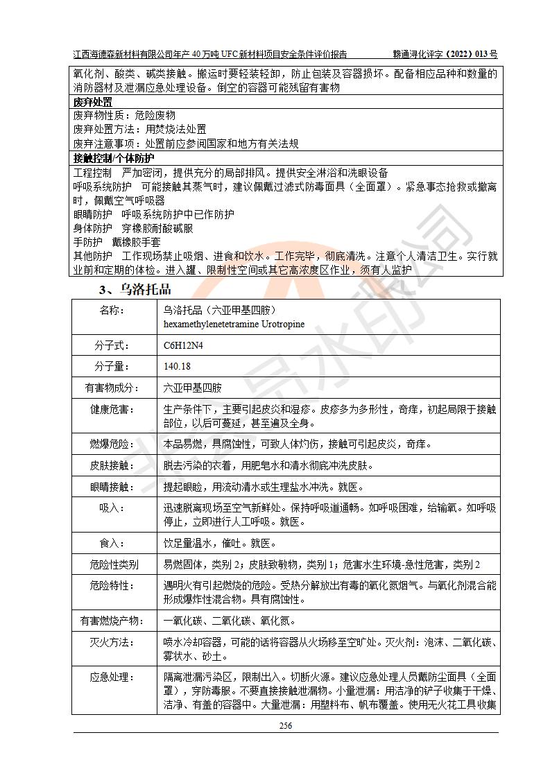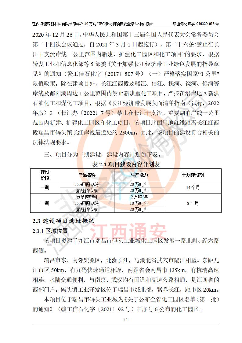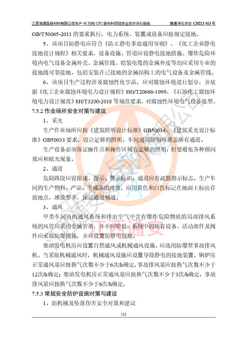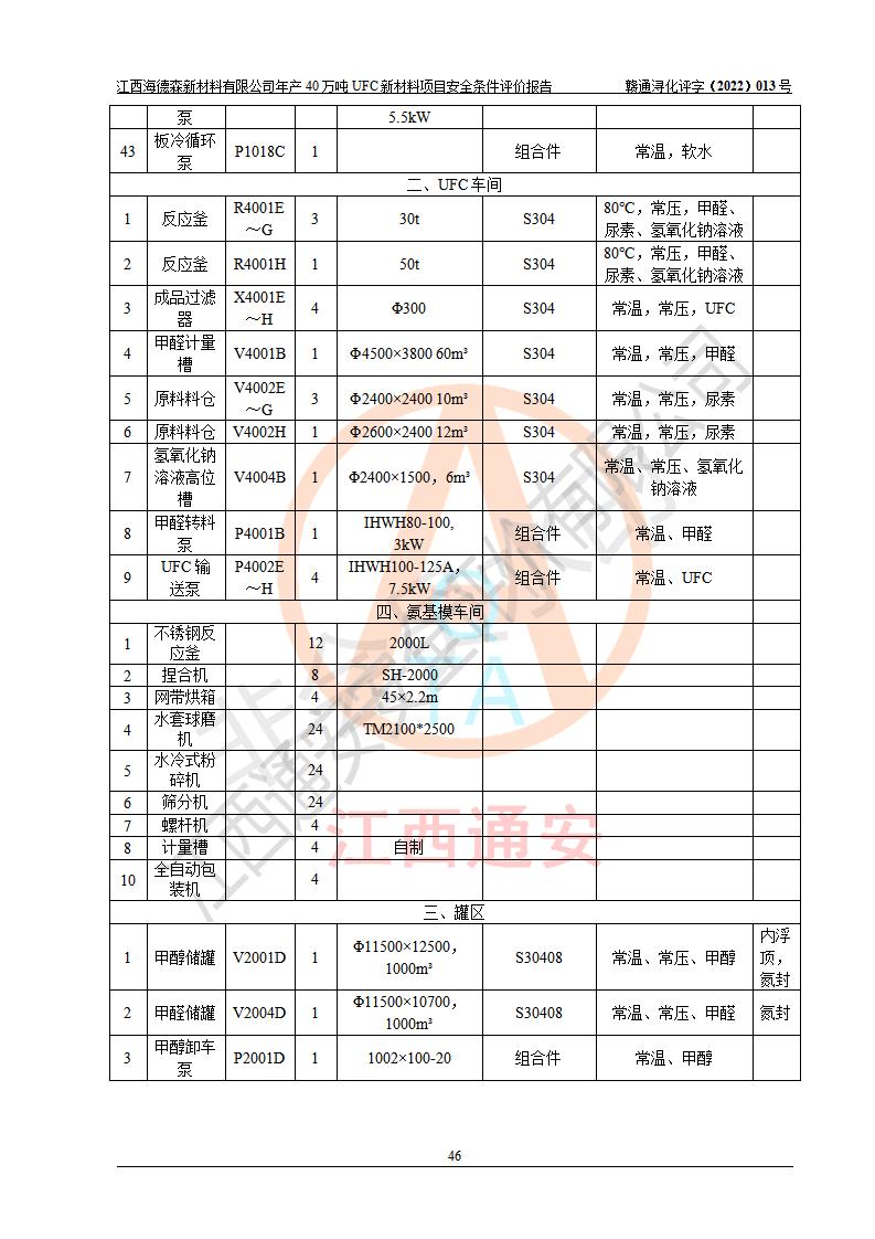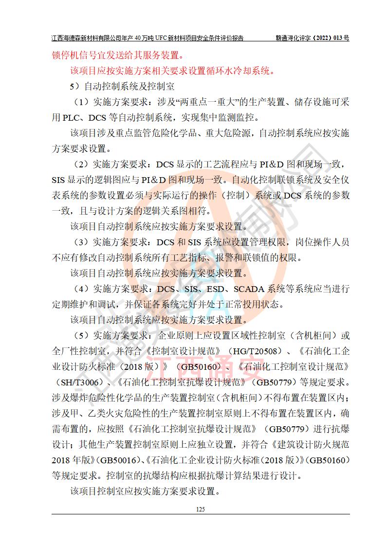 评价报告名称 | 江西海德森新材料有限公司年产40万吨UFC新材料项目安全条件评价报告 | |||