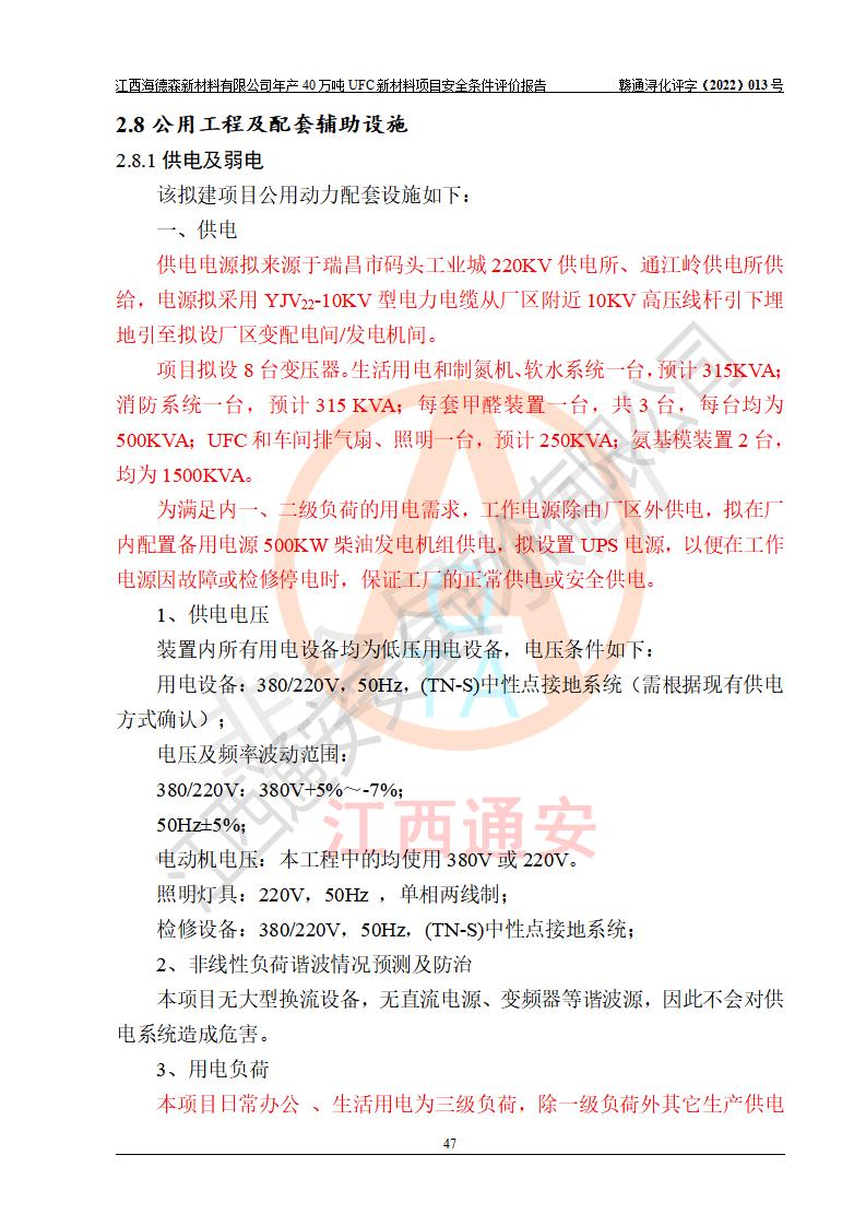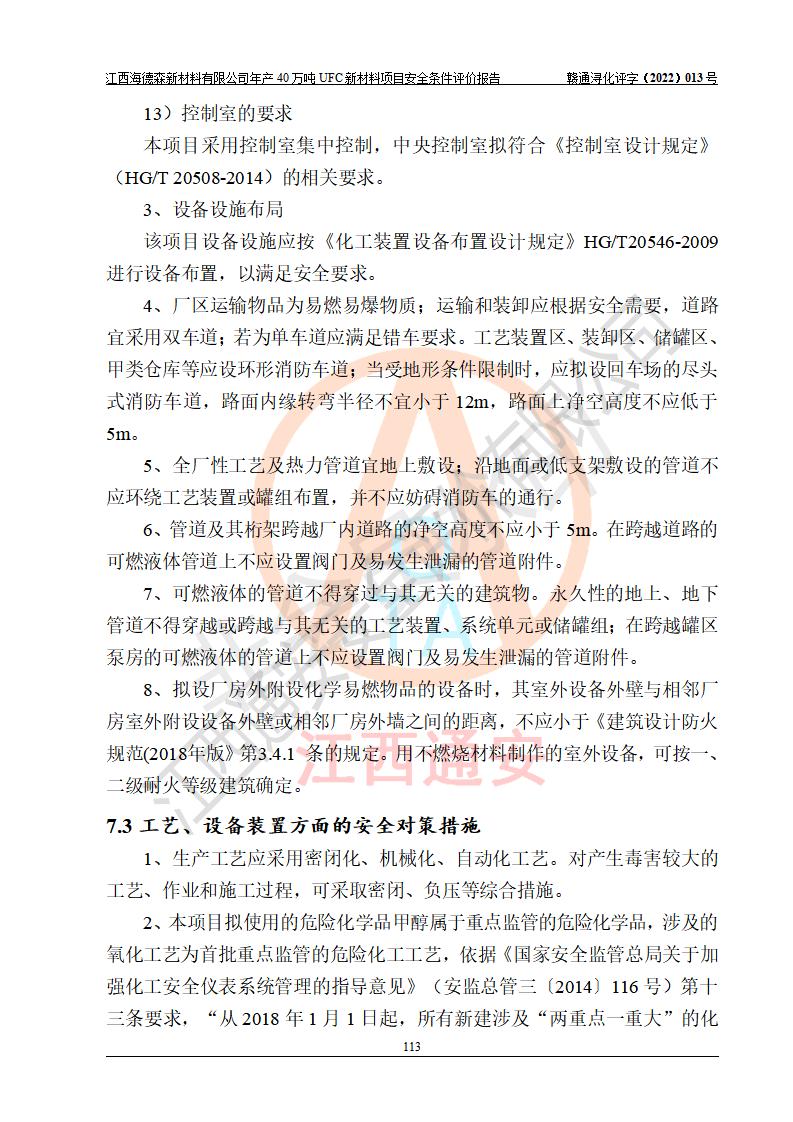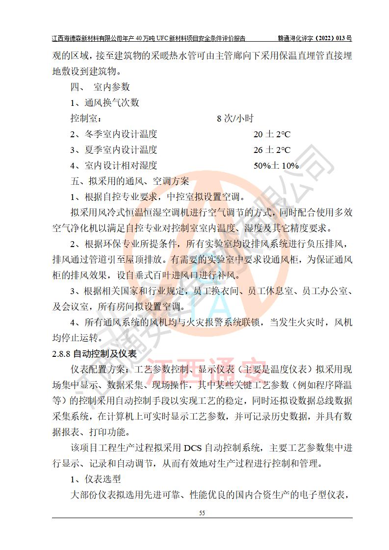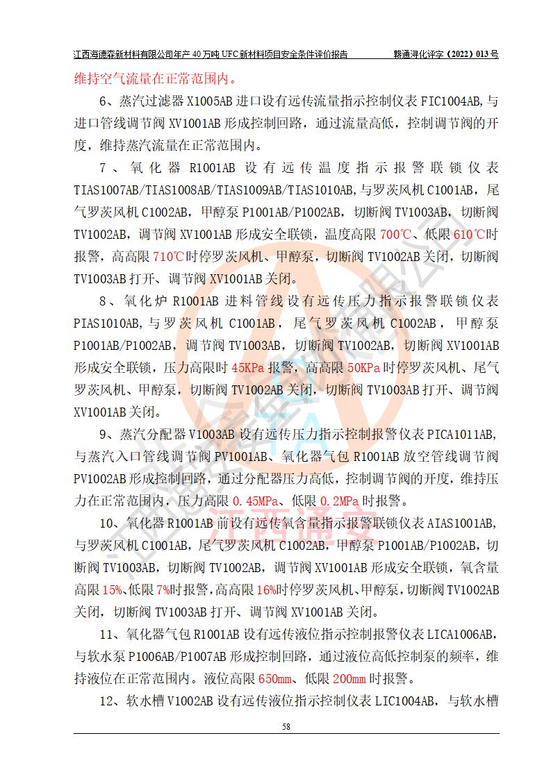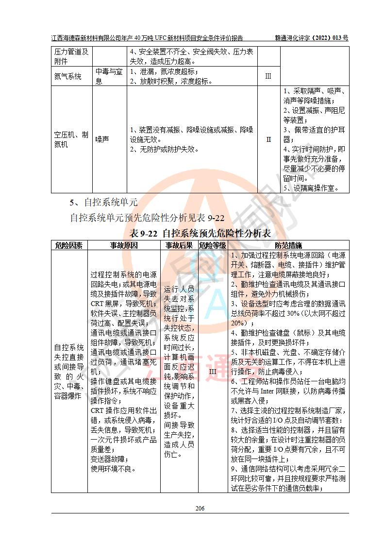 评价报告名称 | 江西海德森新材料有限公司年产40万吨UFC新材料项目安全条件评价报告 | |||
