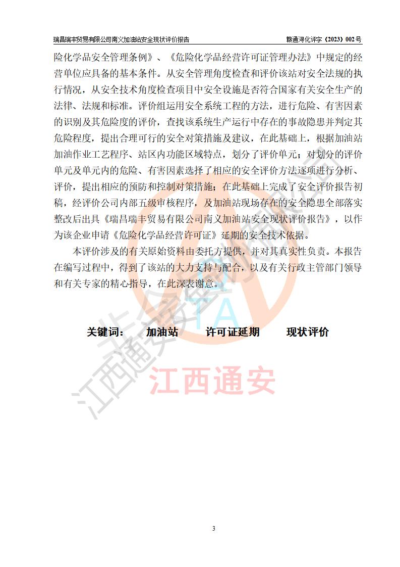 评价报告名称 | 瑞昌瑞丰贸易有限公司南义加油站安全现状评价报告 | |||