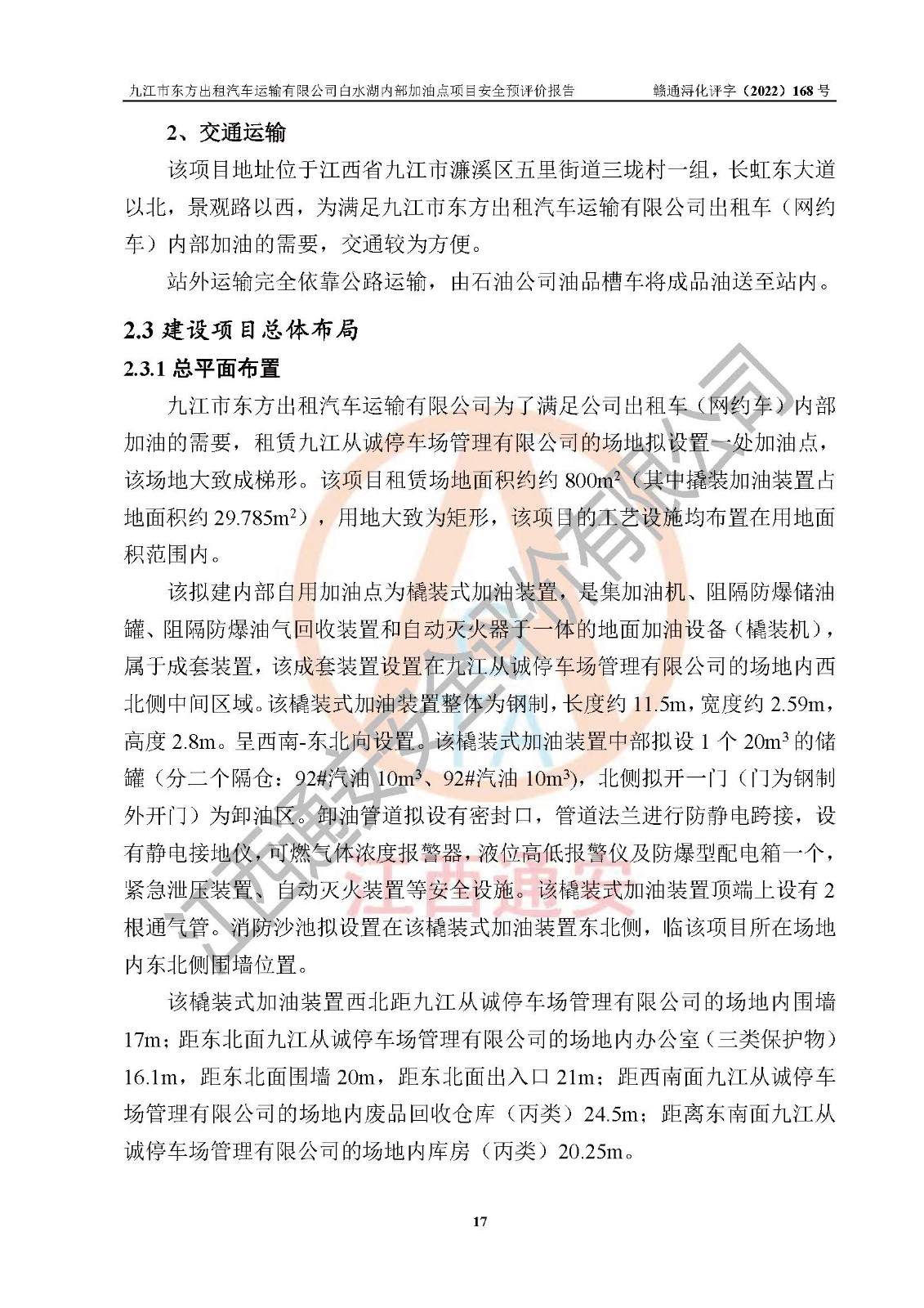 评价报告名称 | 九江市东方出租汽车运输有限公司白水湖内部加油点项目安全预评价 | |||