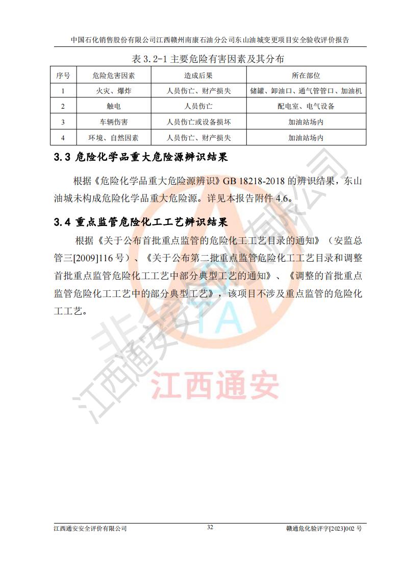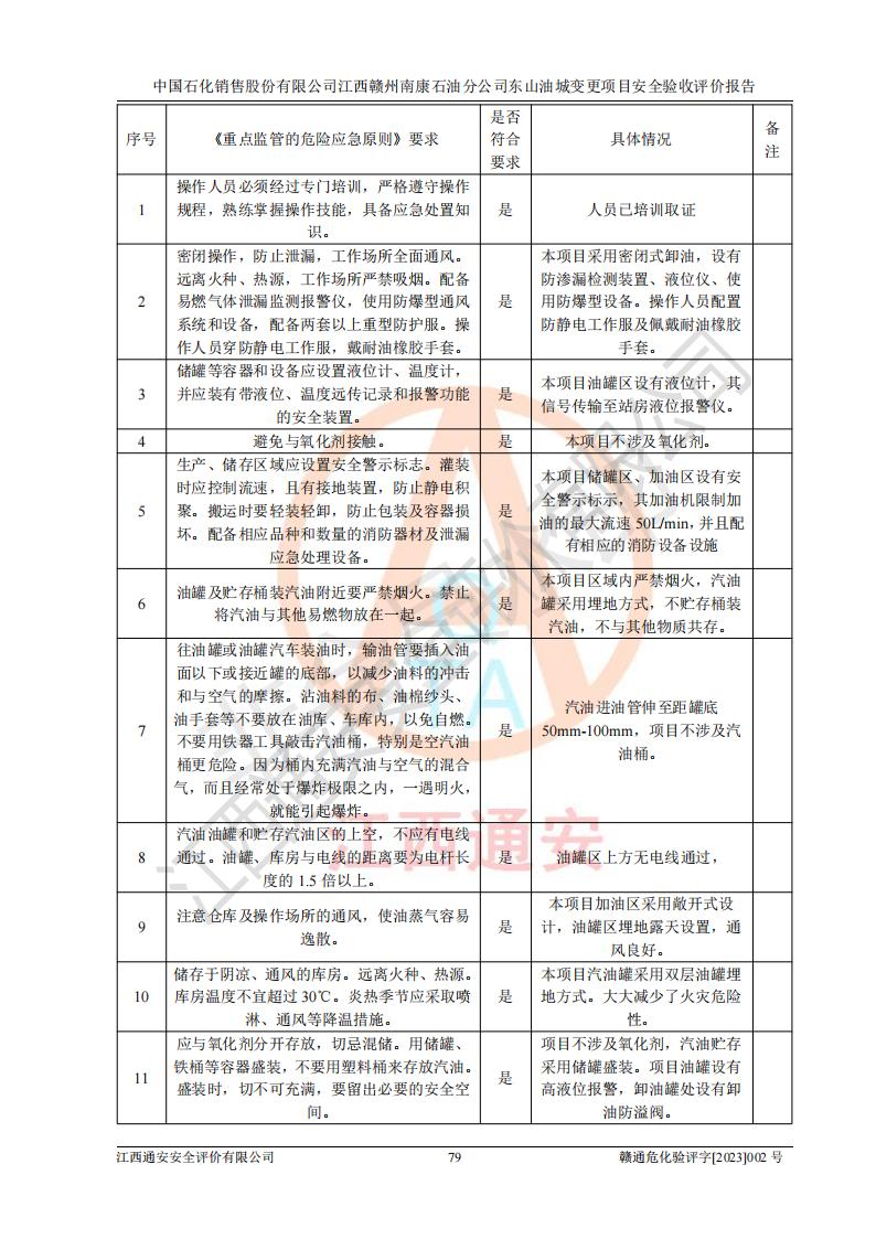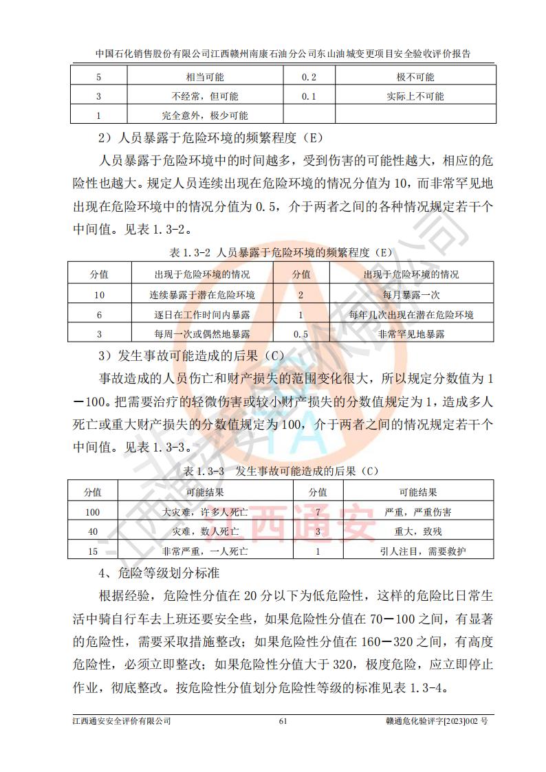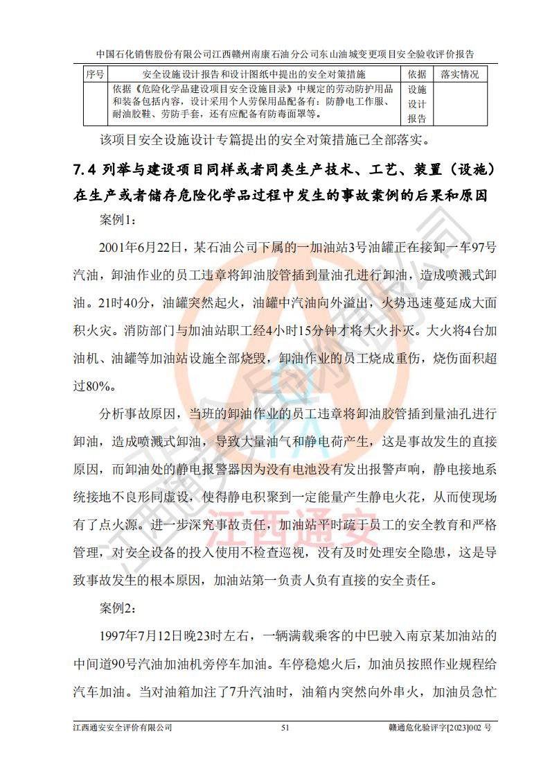项目名称 | 中国石化销售股份有限公司江西赣州南康石油分公司东山油城变更项目安全验收评价报告 | ||||