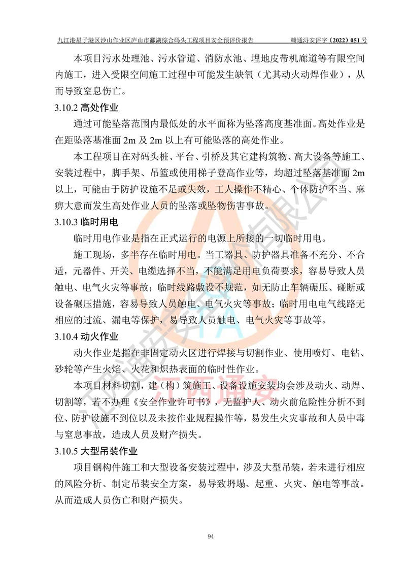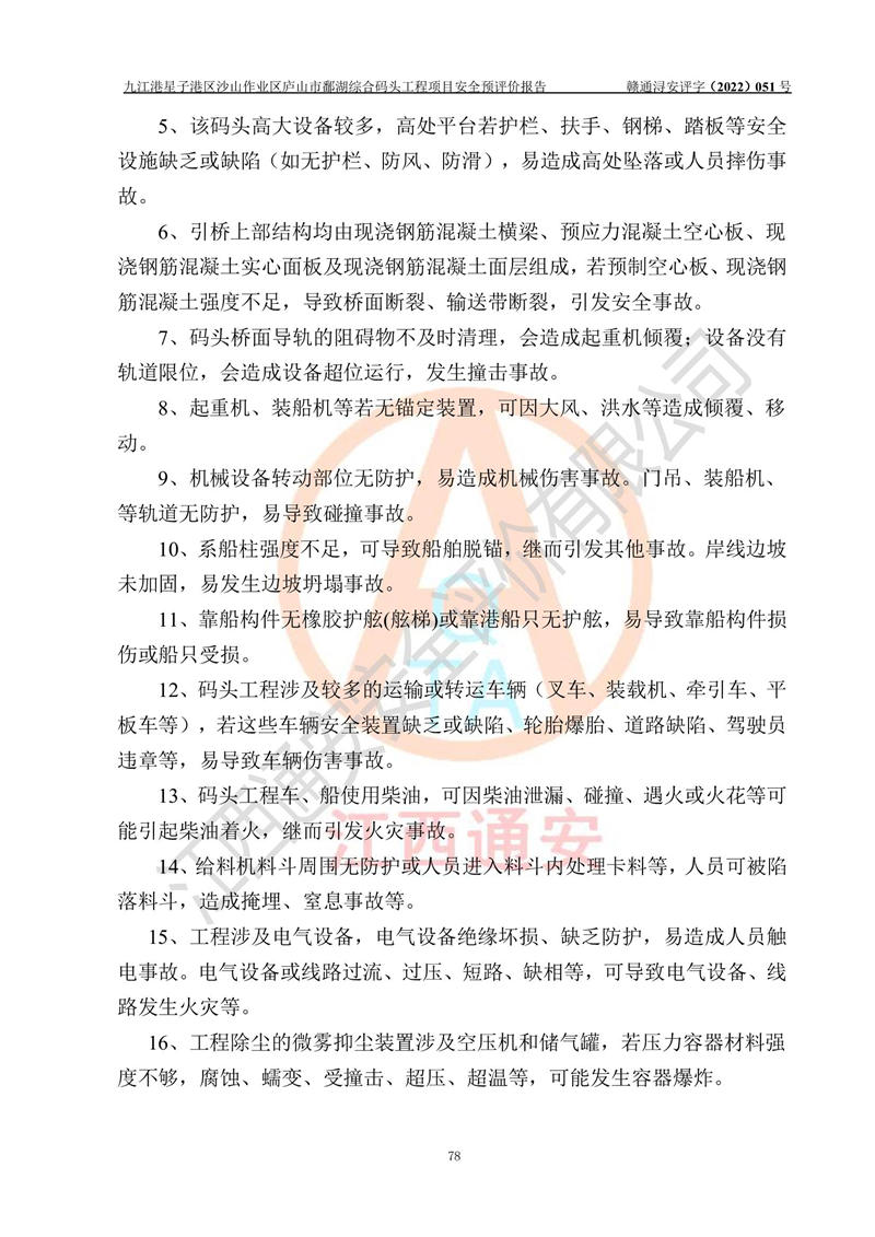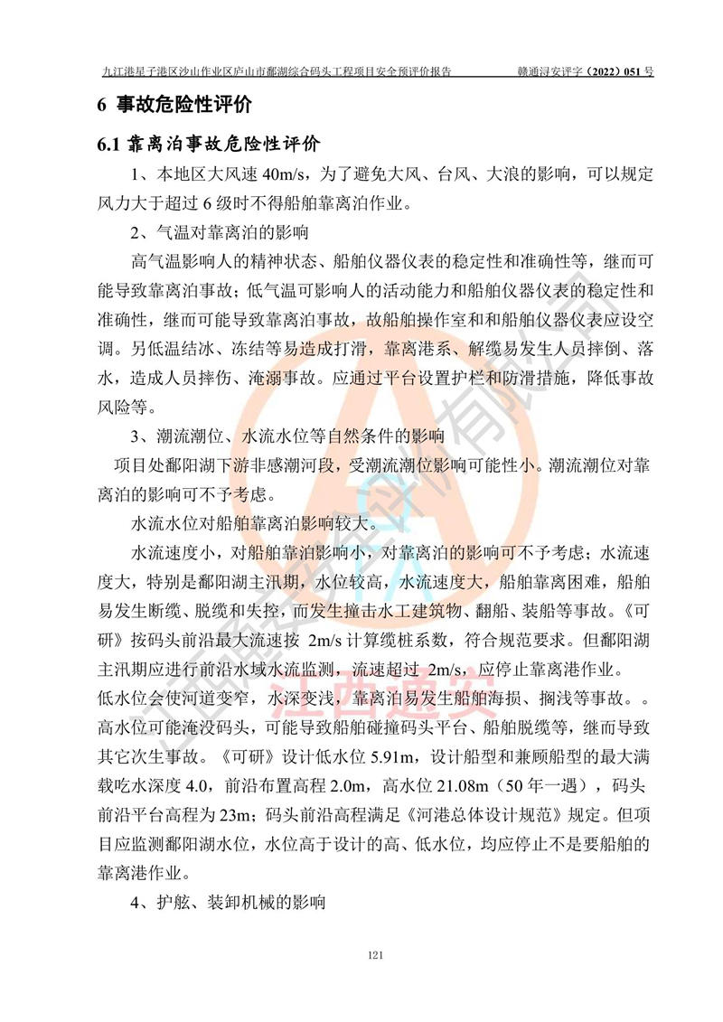 评价报告名称 | 九江港星子港区沙山作业区庐山市鄱湖综合码头工程项目安全预评价报告 | |||||