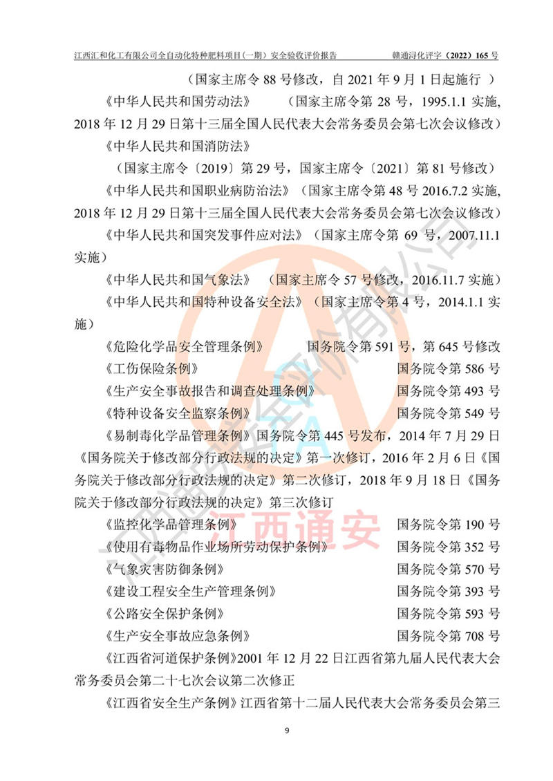 评价报告名称 | 江西汇和化工有限公司全自动化特种肥料项目(一期)安全验收评价报告 | |||||||