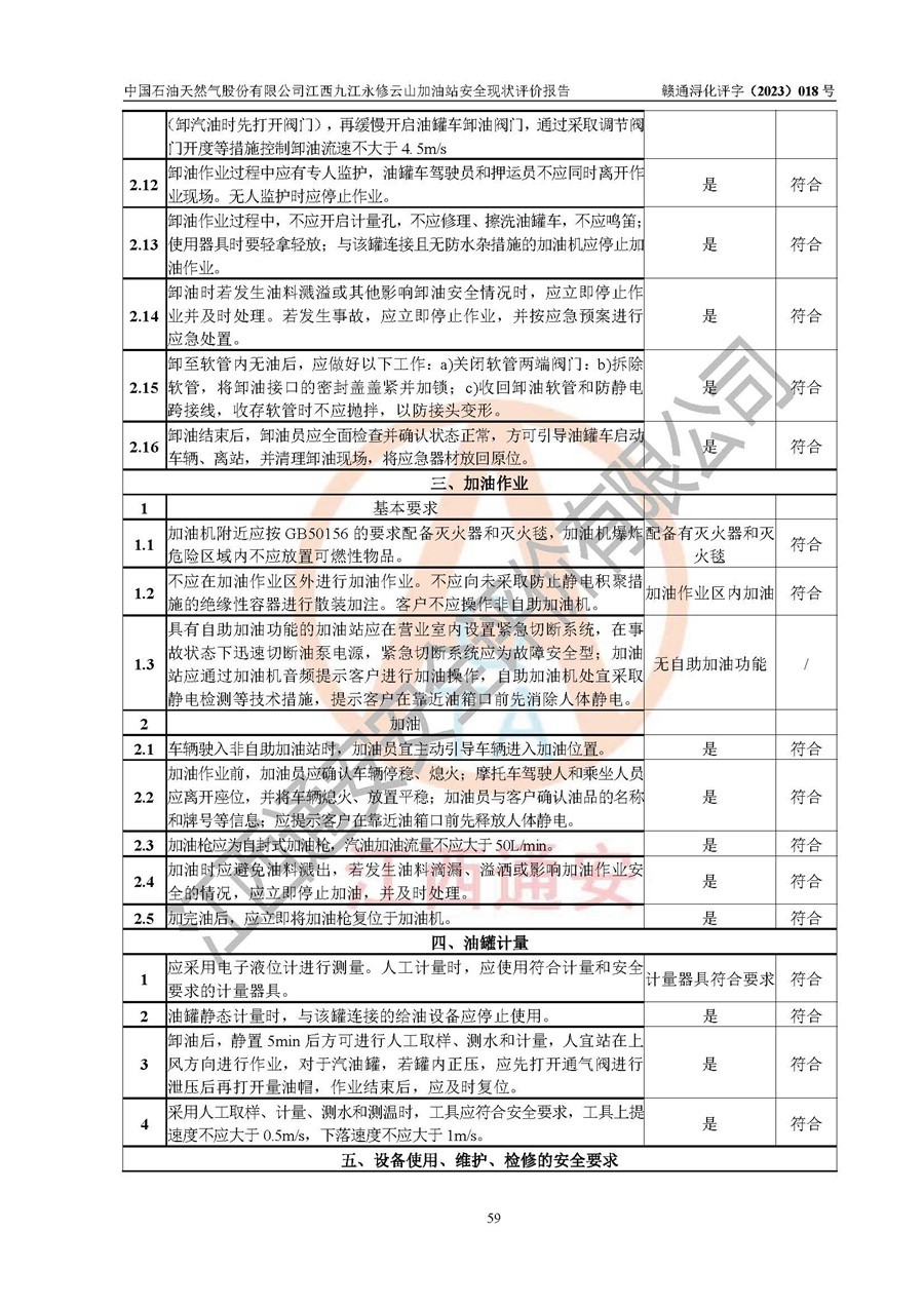 评价报告名称 | 中国石油天然气股份有限公司江西九江永修云山加油站安全现状评价报告 | |||