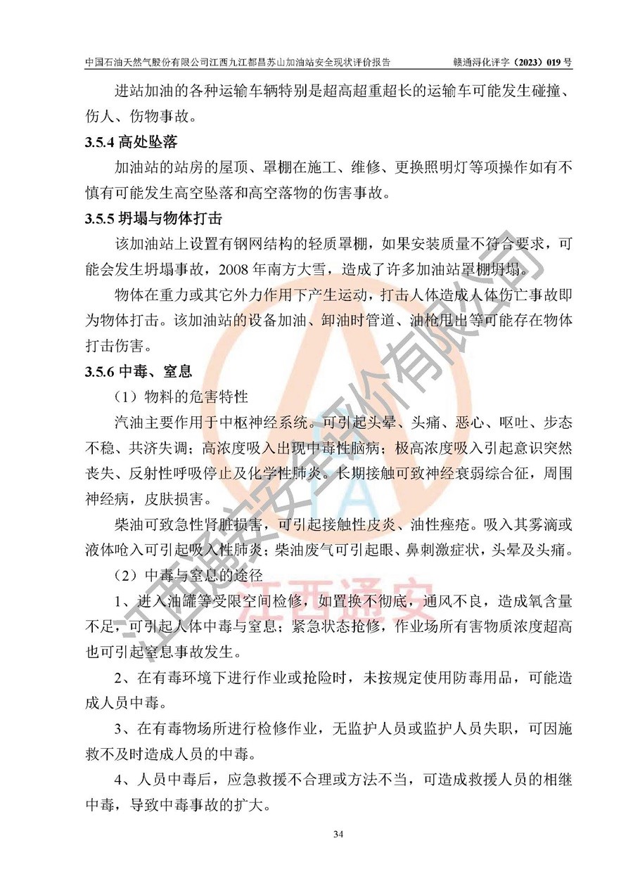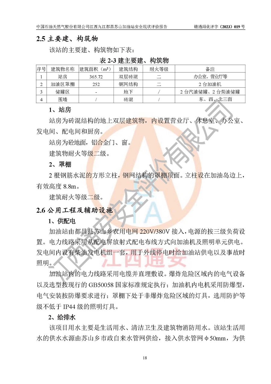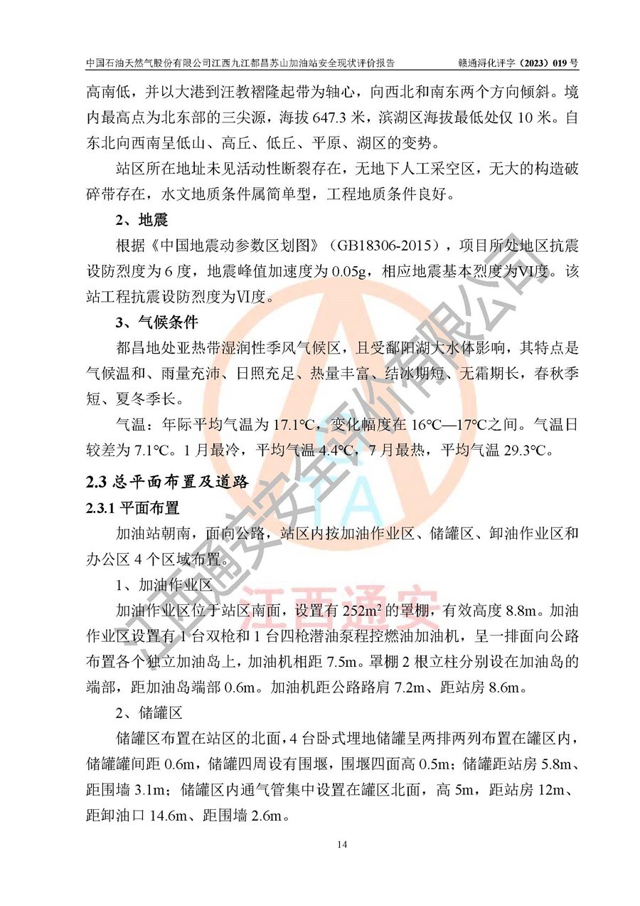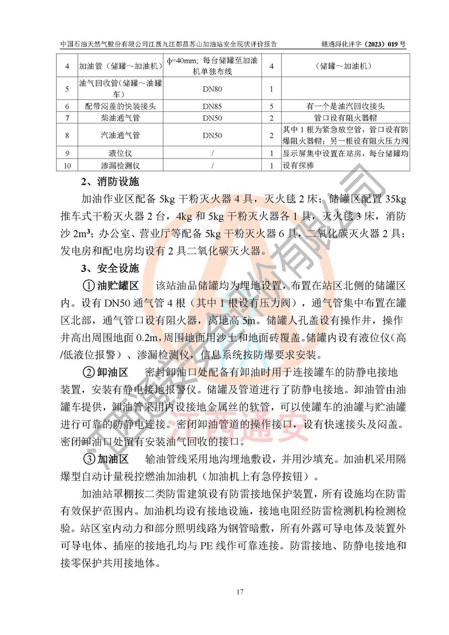 评价报告名称 | 中国石油天然气股份有限公司江西九江都昌苏山加油站安全现状评价报告 | |||