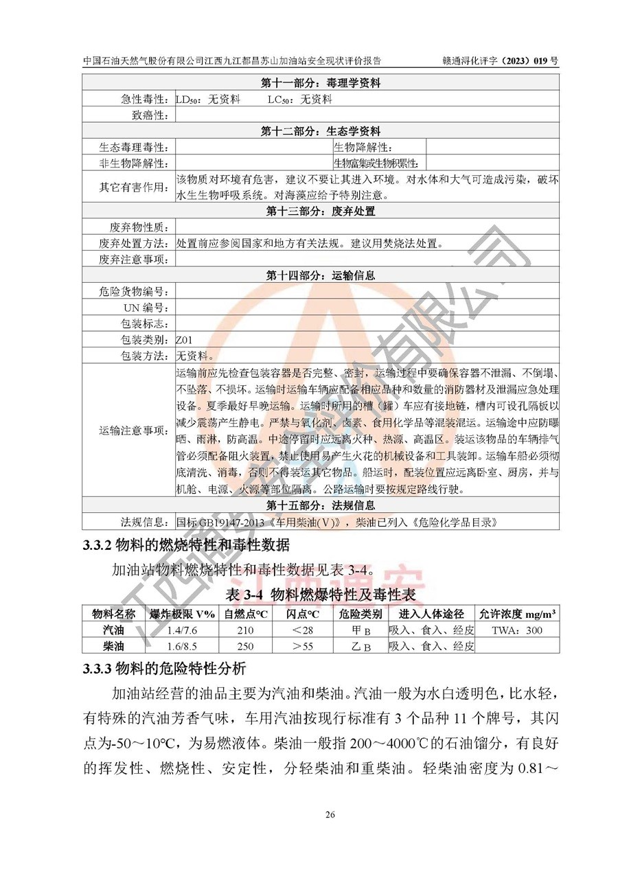 评价结论 | 中国石油天然气股份有限公司江西九江都昌苏山加油站涉及的安全条件、安全经营条件、安全生产管理符合《危险化学品经营许可证管理办法》、《汽车加油加气加氢站技术标准》等**有关法规、标准、规范要求,能满足危险化学品经营安全条件。 | |||