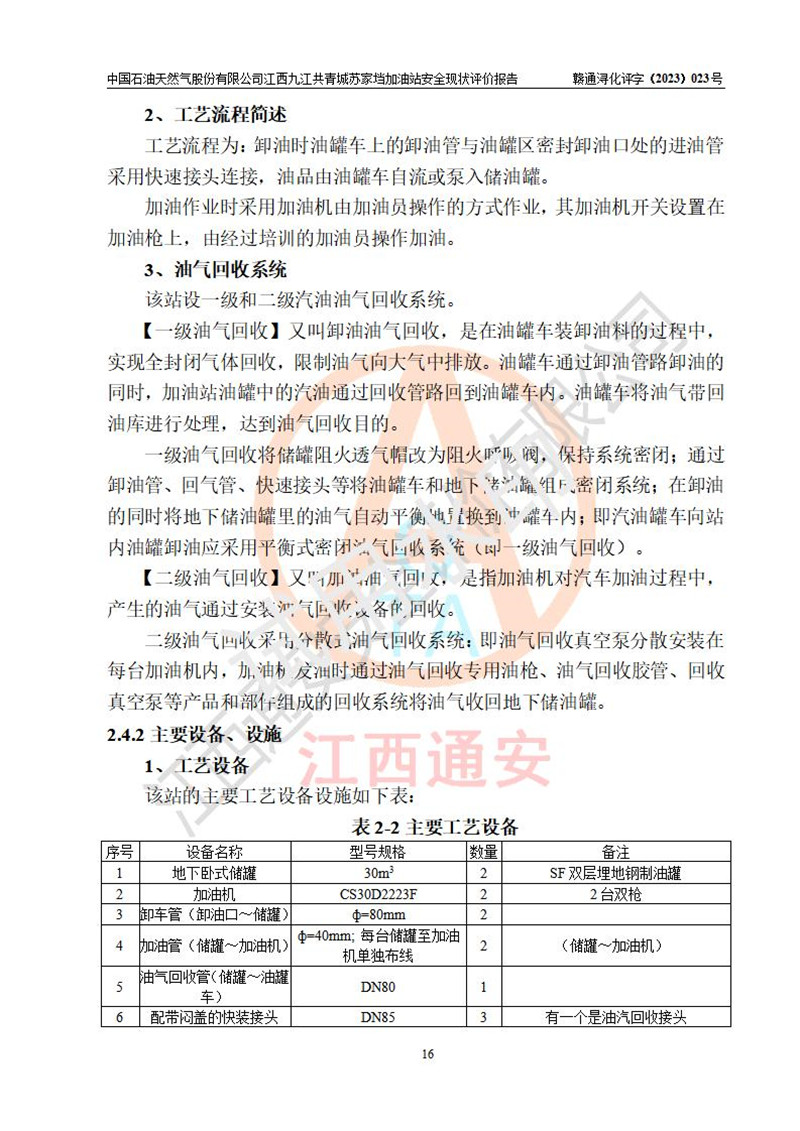 评价报告名称 | 中国石油天然气股份有限公司江西九江共青城苏家垱加油站安全现状评价报告 | |||