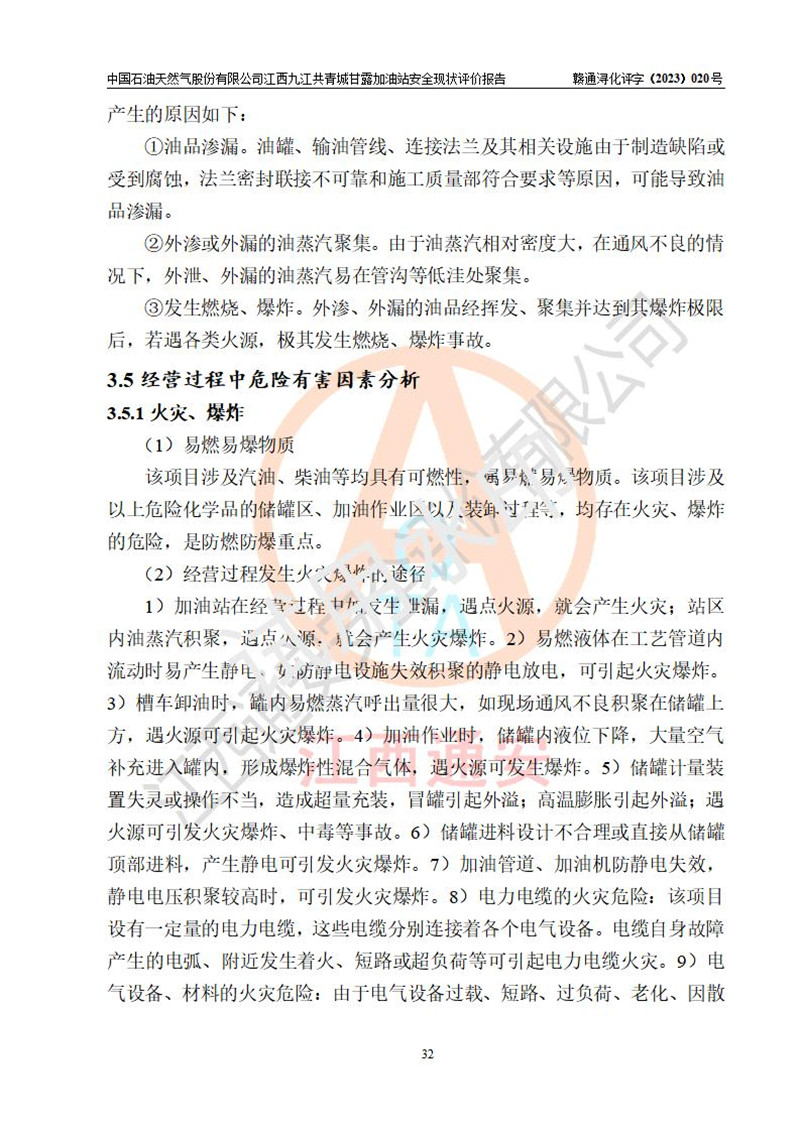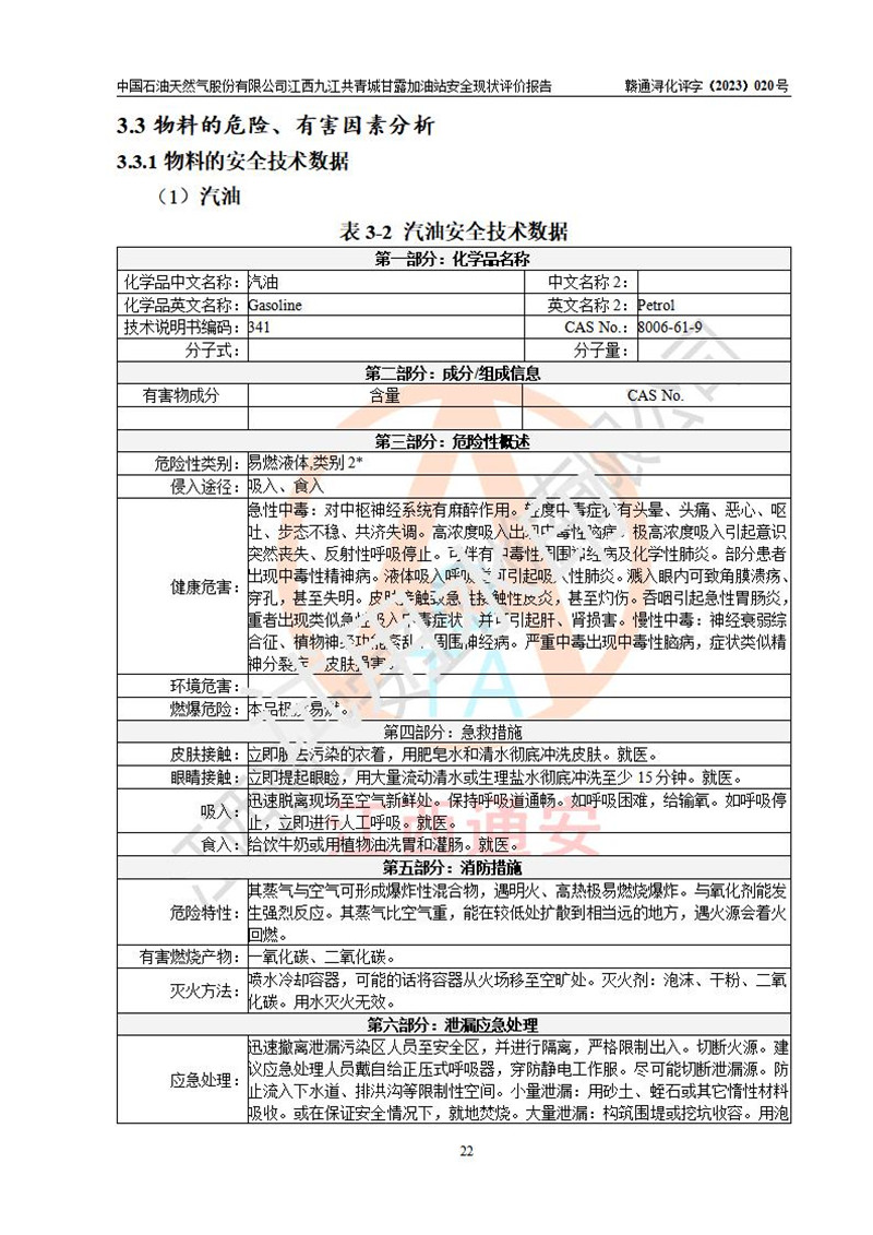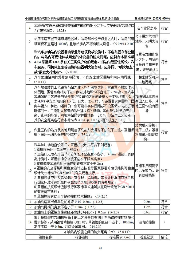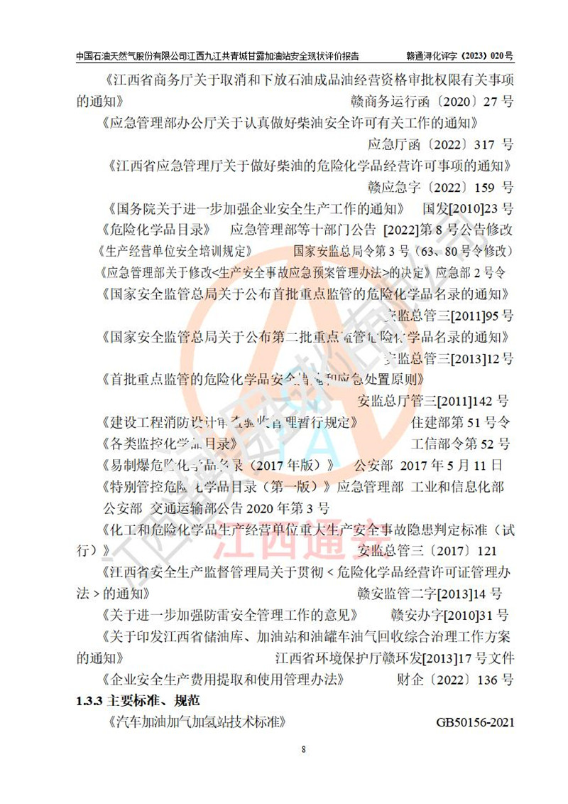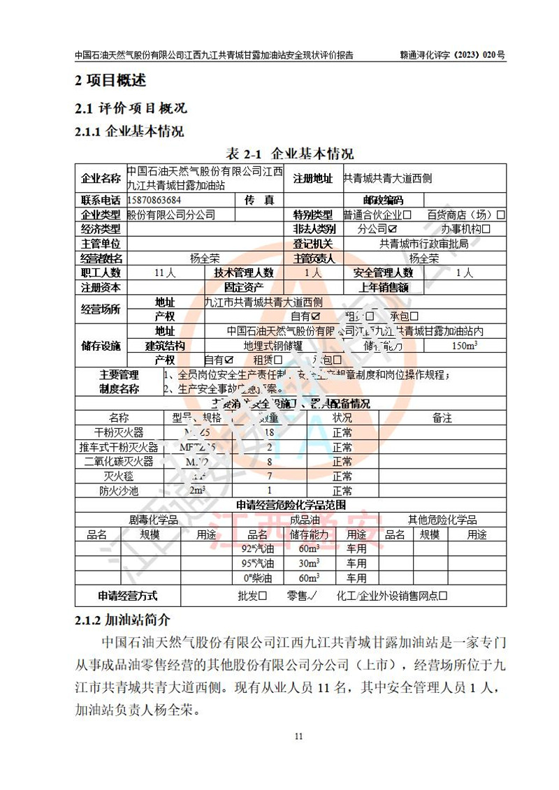 评价报告名称 | 中国石油天然气股份有限公司江西九江共青城甘露加油站安全现状评价报告 | |||