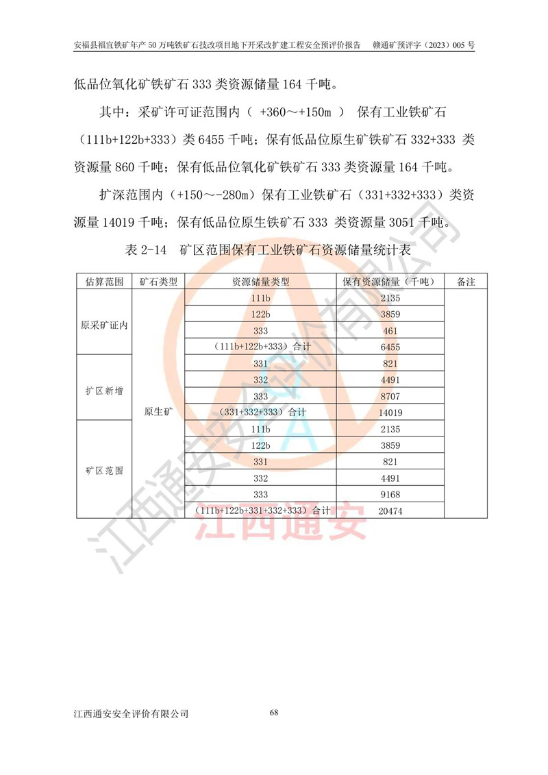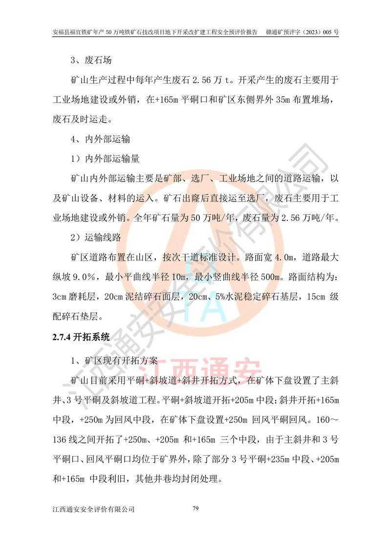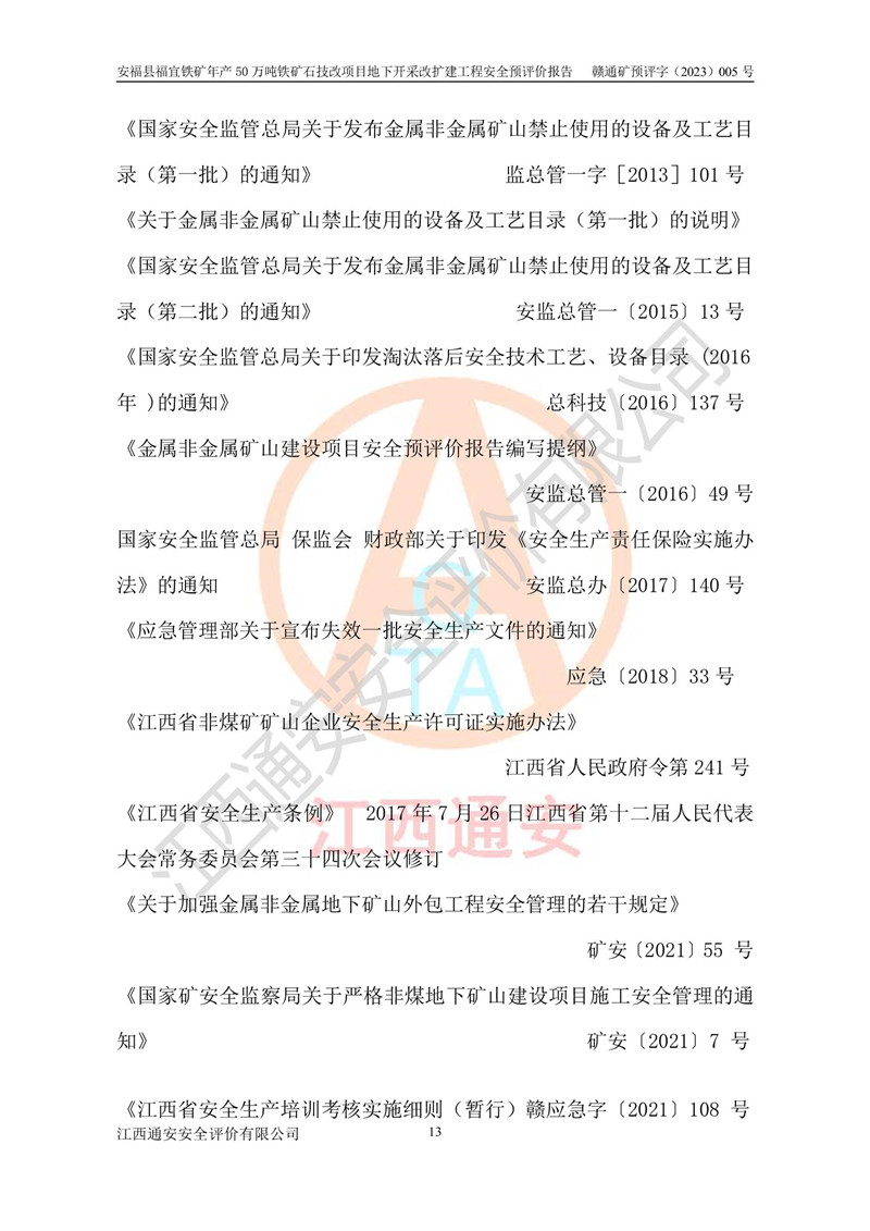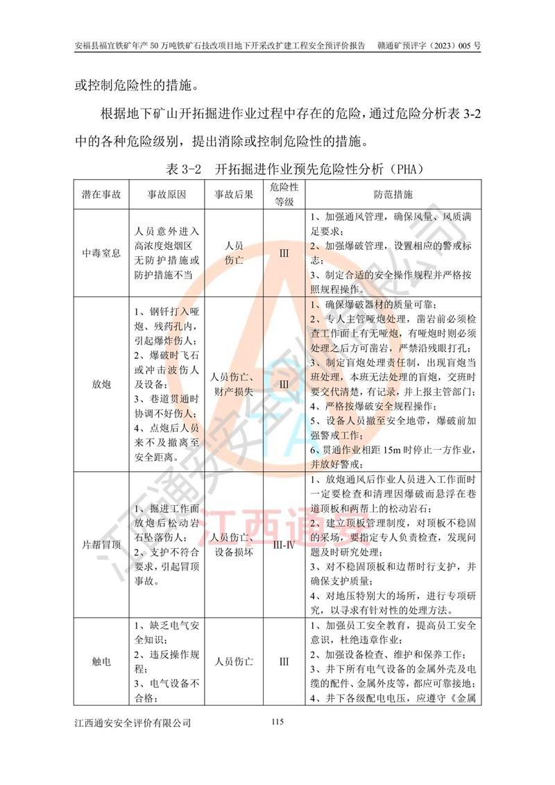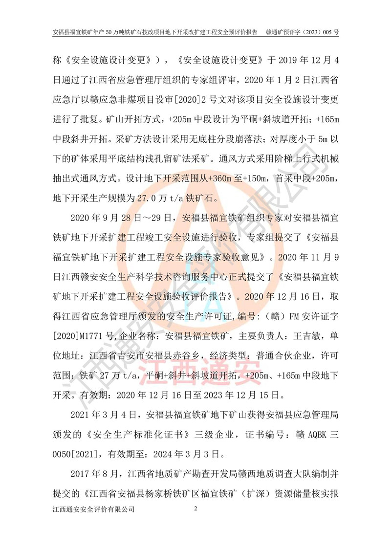项目名称 | 安福县福宜铁矿年产50万吨铁矿石技改项目地下开采改扩建工程安全预评价报告 | ||||