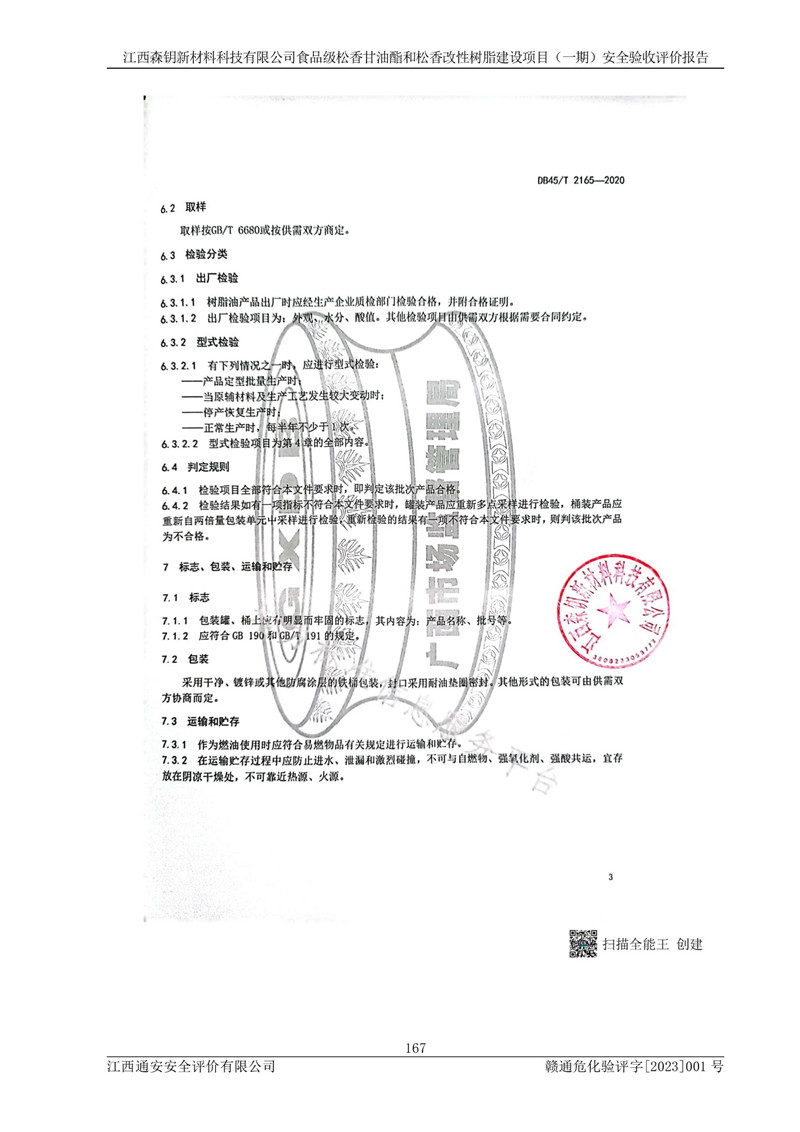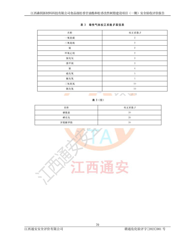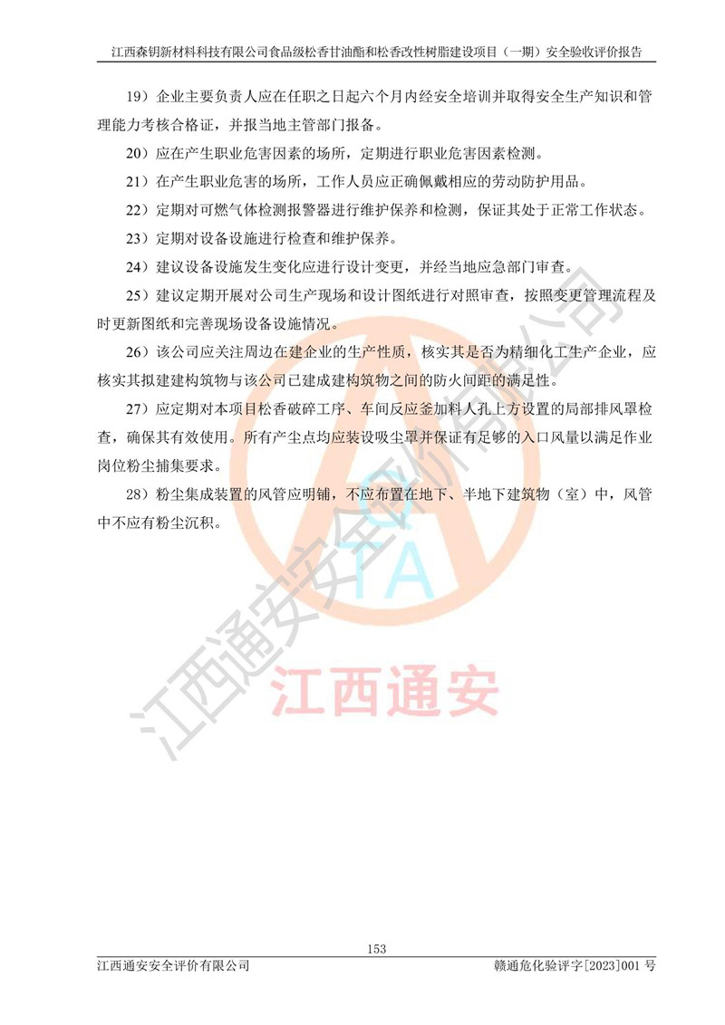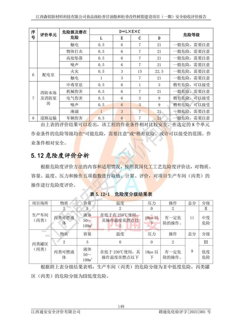评价报告名称 | 江西森钥新材料科技有限公司食品级松香甘油酯和松香改性树脂建设项目(一期)安全验收评价报告 | ||||