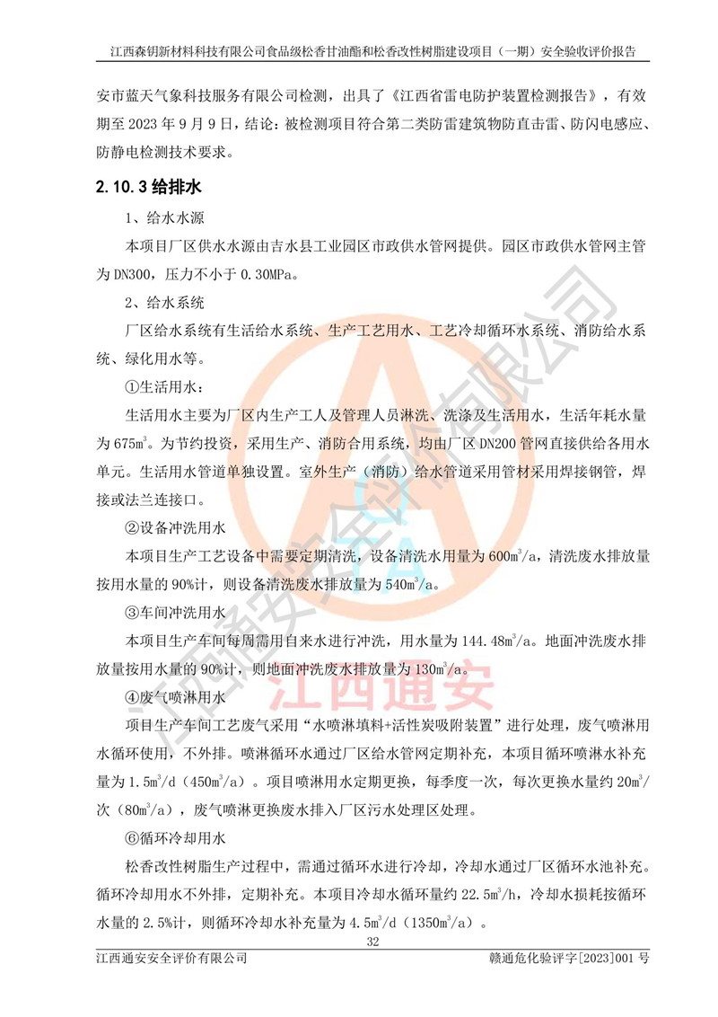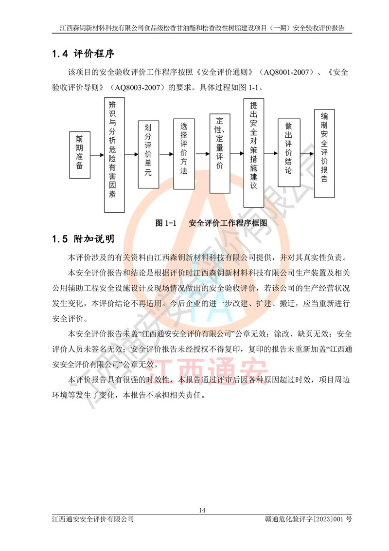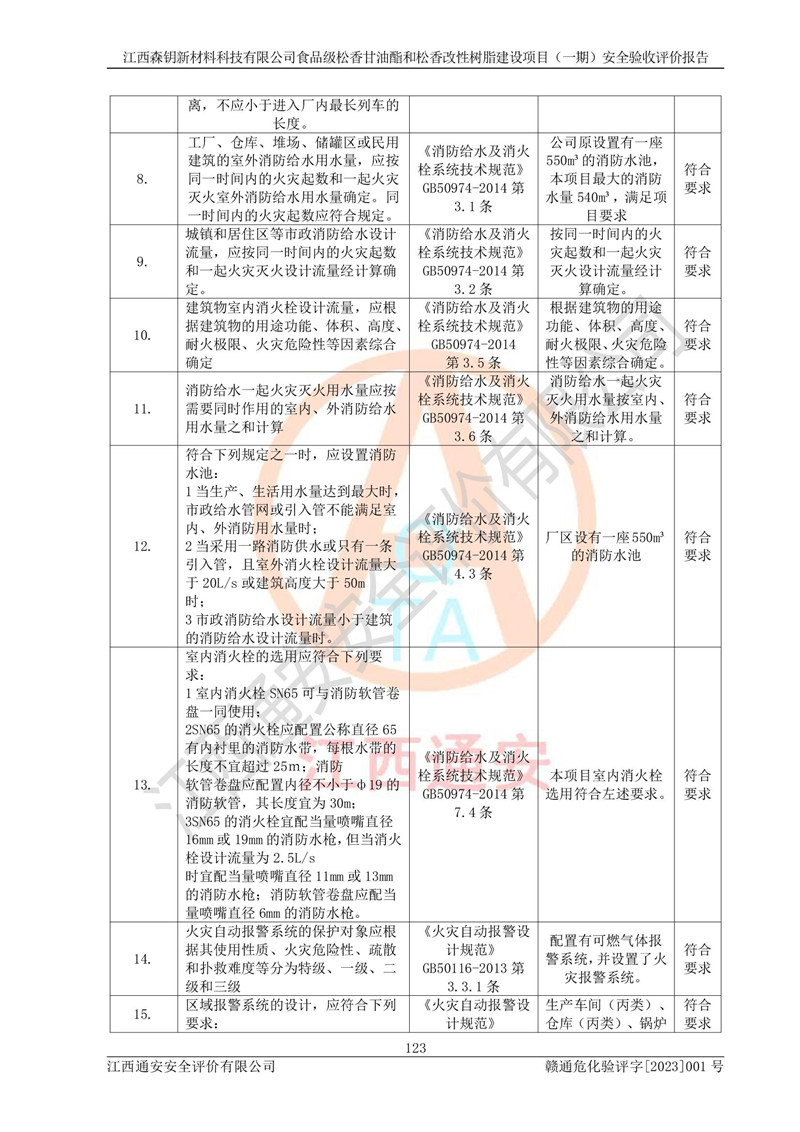 评价报告名称 | 江西森钥新材料科技有限公司食品级松香甘油酯和松香改性树脂建设项目(一期)安全验收评价报告 | ||||