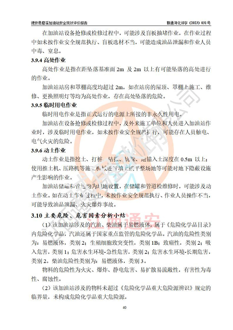 评价报告名称 | 德安县磨溪加油站安全现状评价报告 | |||