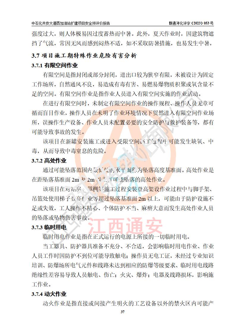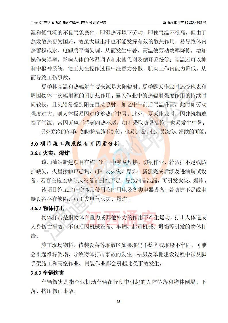 评价报告名称 | 中国石化销售股份有限公司江西九江共青城石油分公司共安大道西加油站扩建项目安全预评价 | |||