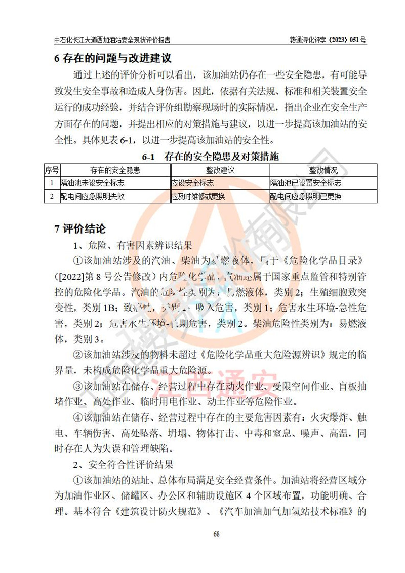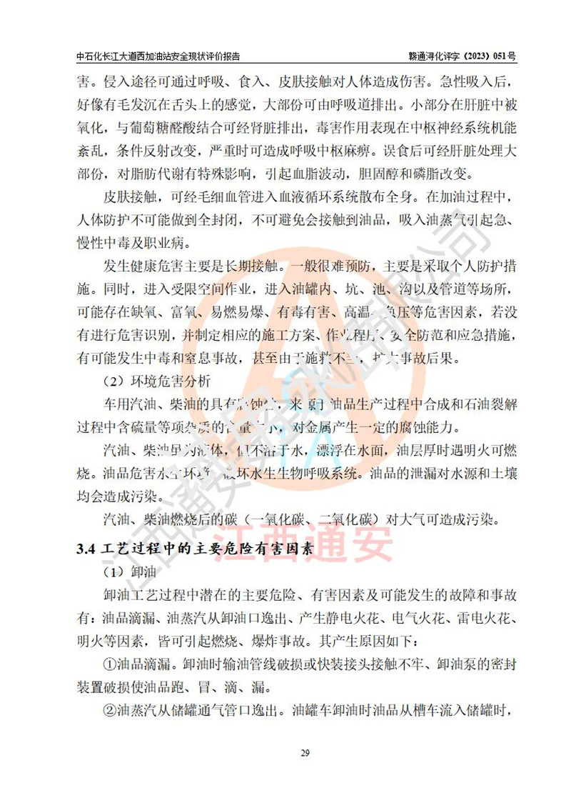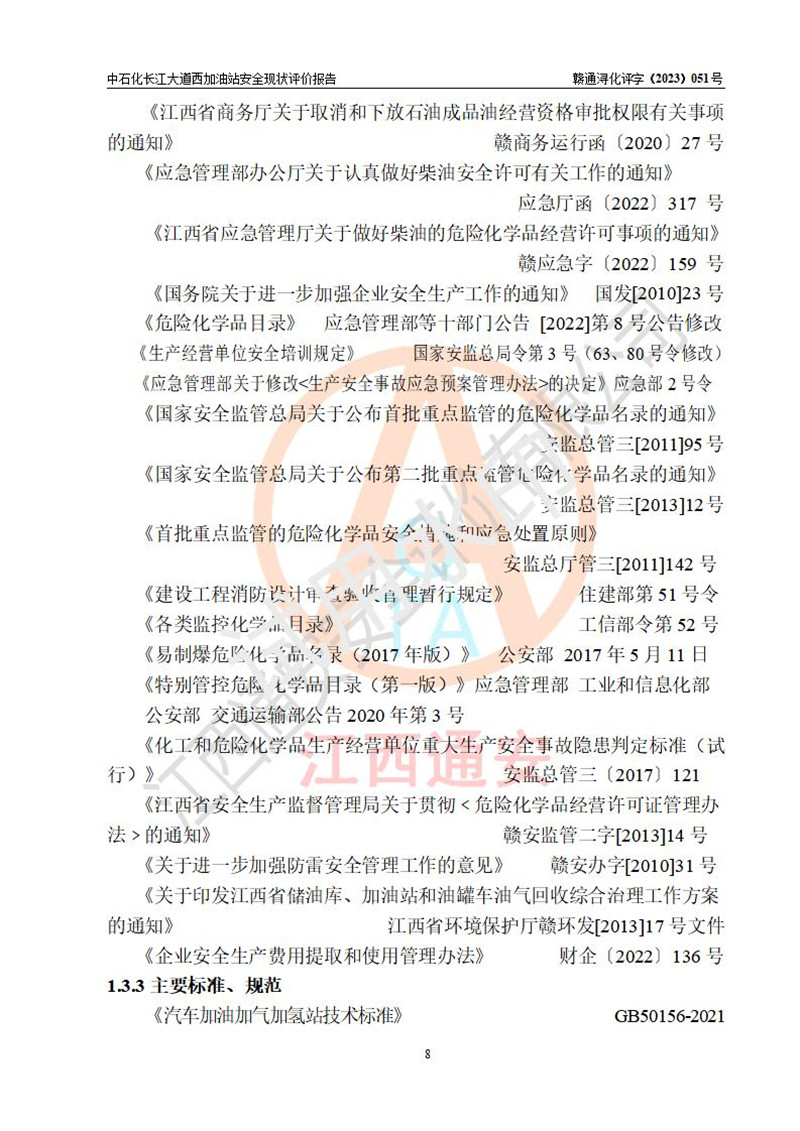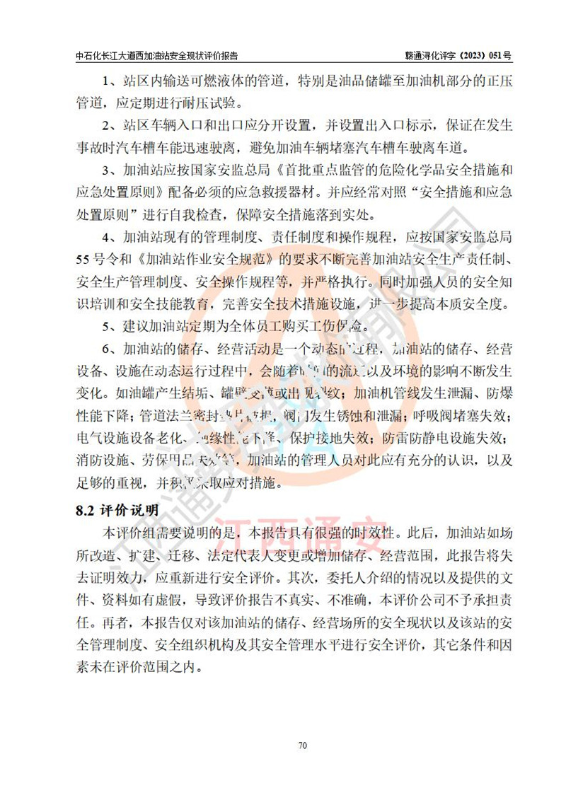 评价报告名称 | 中国石化销售股份有限公司江西九江浔阳石油分公司长江大道西加油站安全现状评价报告 | |||