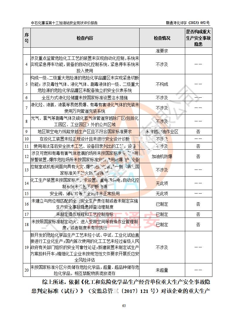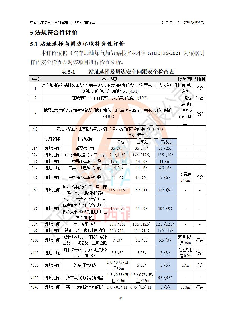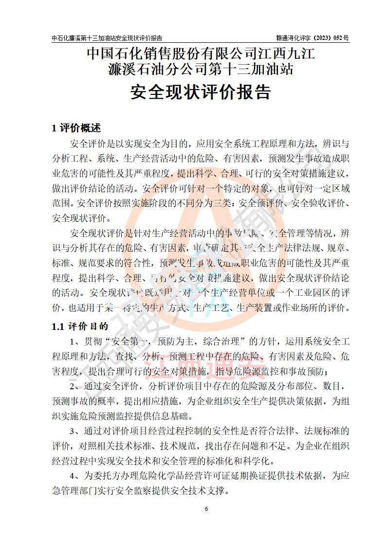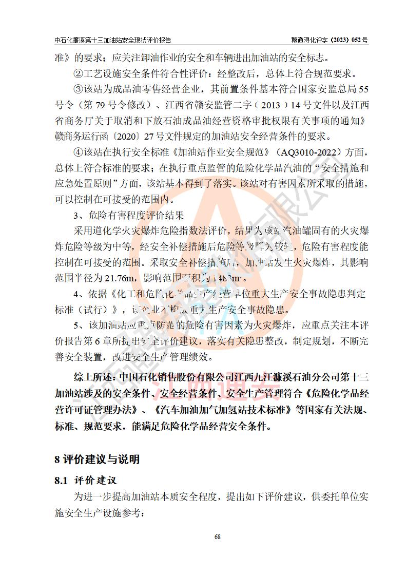 评价报告名称 | 中国石化销售股份有限公司江西九江濂溪石油分公司第十三加油站安全现状评价报告 | |||