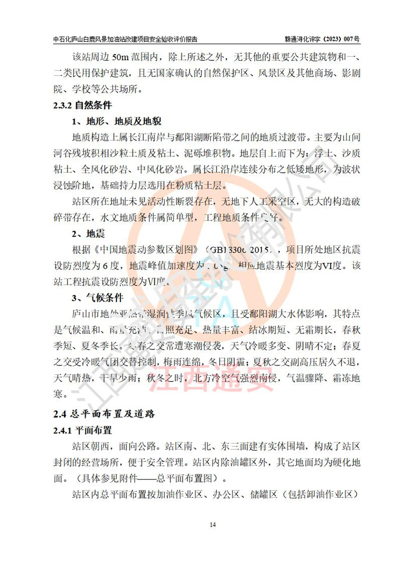 评价报告名称 | 中国石化销售股份有限公司江西九江庐山石油分公司白鹿风景加油站改建项目安全验收报告 | |||