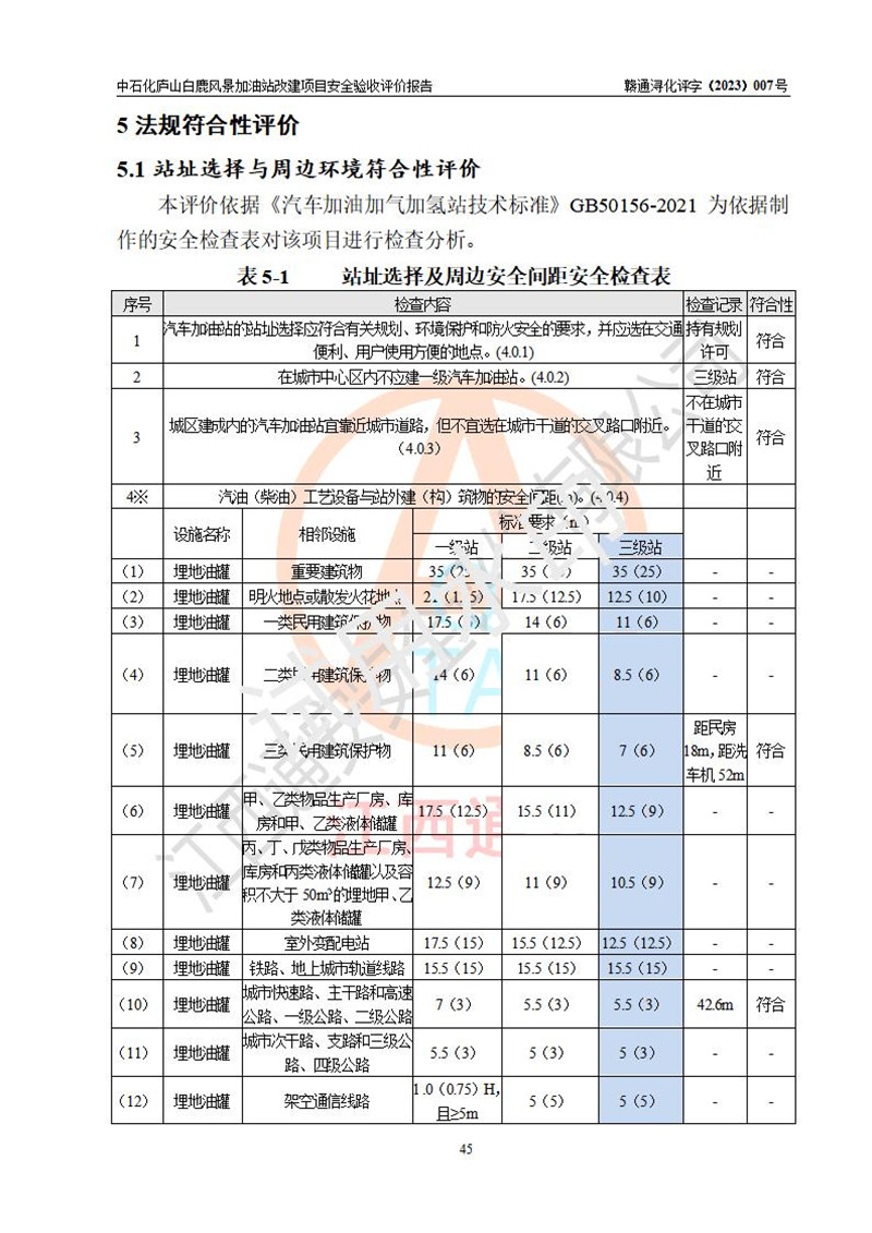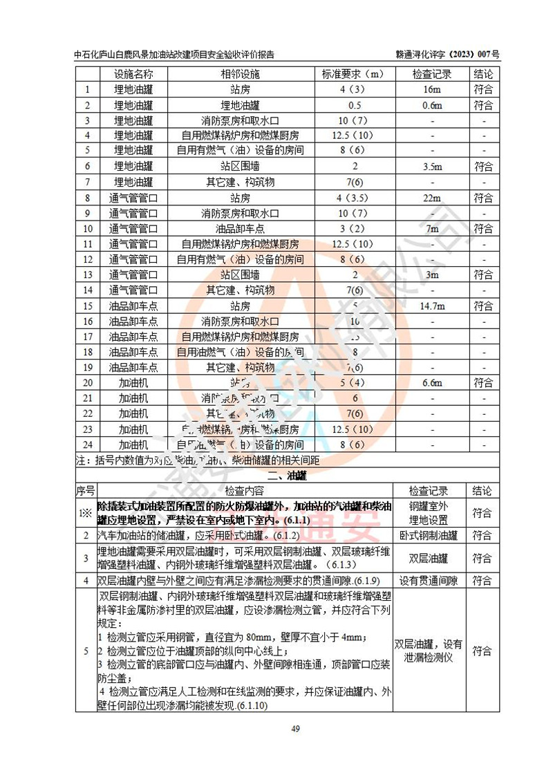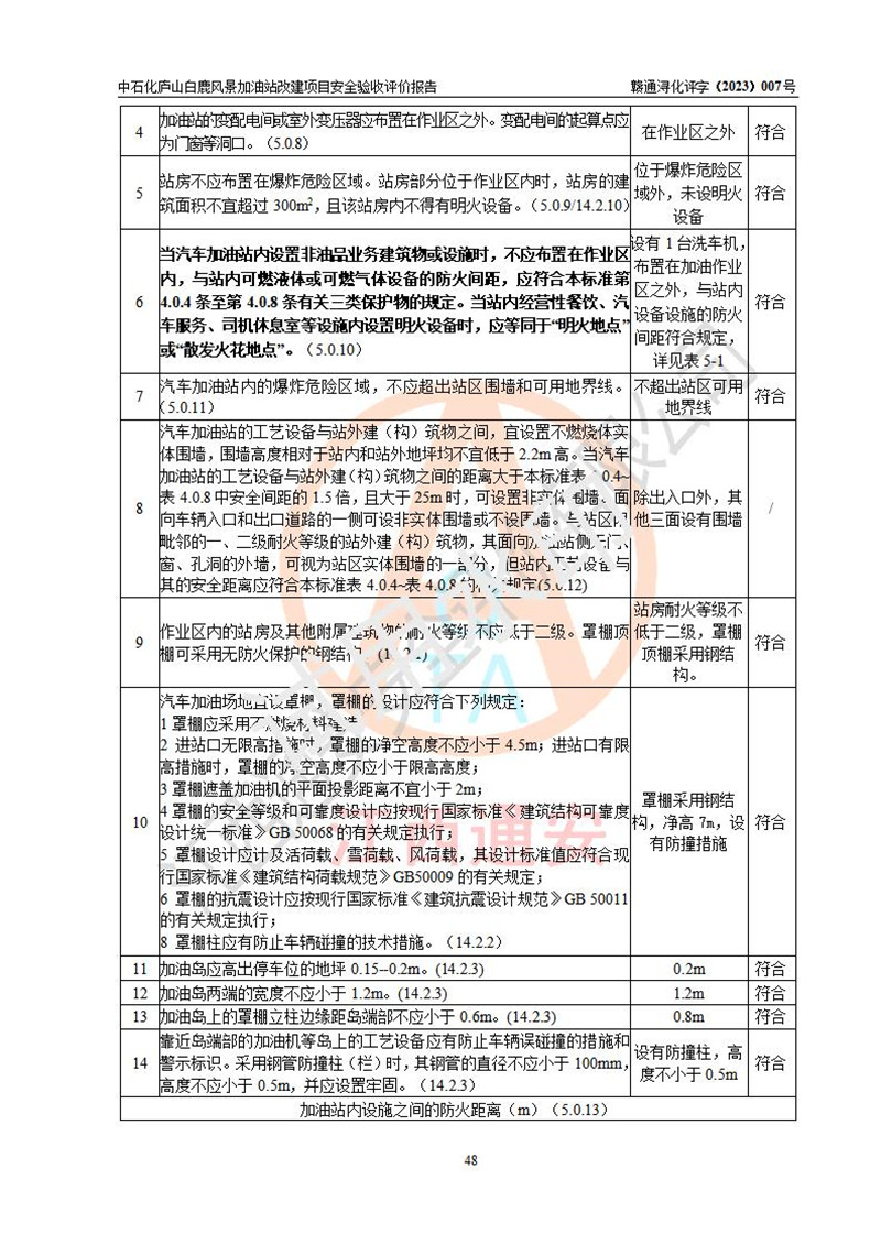 评价结论 | 中国石油天然气股份有限公司江西九江庐山市开发区加油站涉及的安全条件、安全经营条件、安全生产管理符合《危险化学品经营许可证管理办法》、《汽车加油加气加氢站技术标准》等**有关法规、标准、规范要求,能满足危险化学品经营安全条件。 | |||