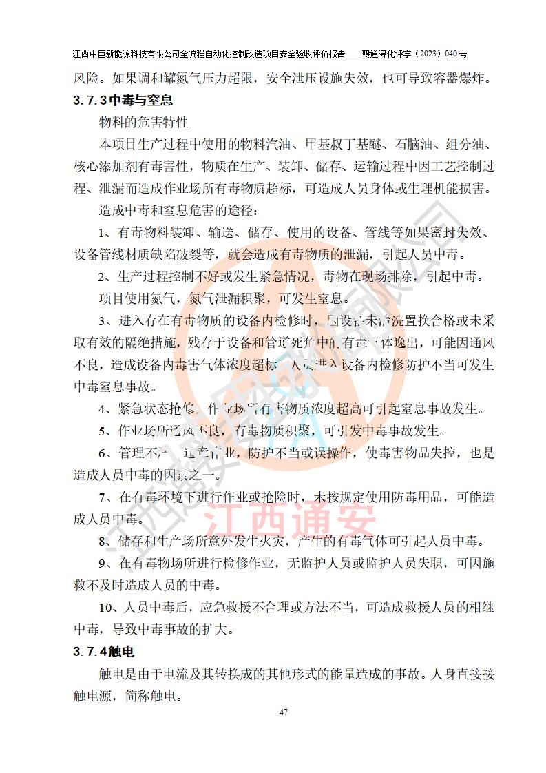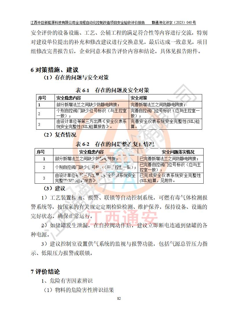 评价报告名称 | 江西中巨新能源科技有限公司全流程自动化控制改造项目安全验收评价报告 | |||||
