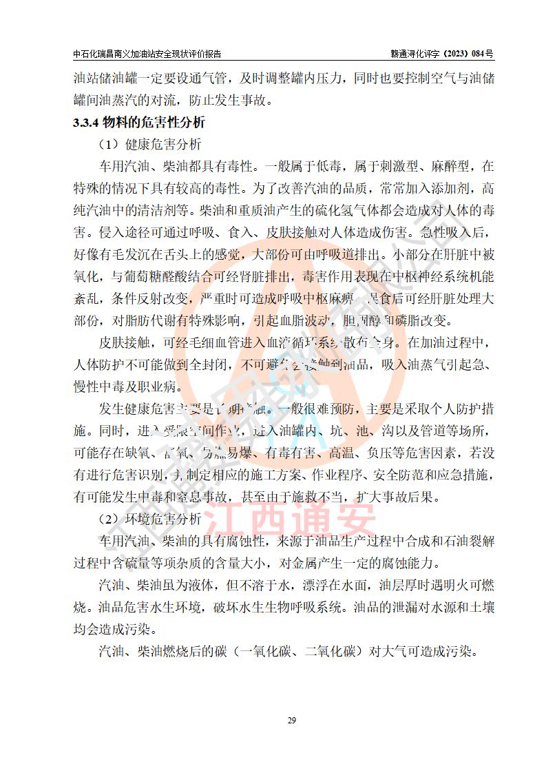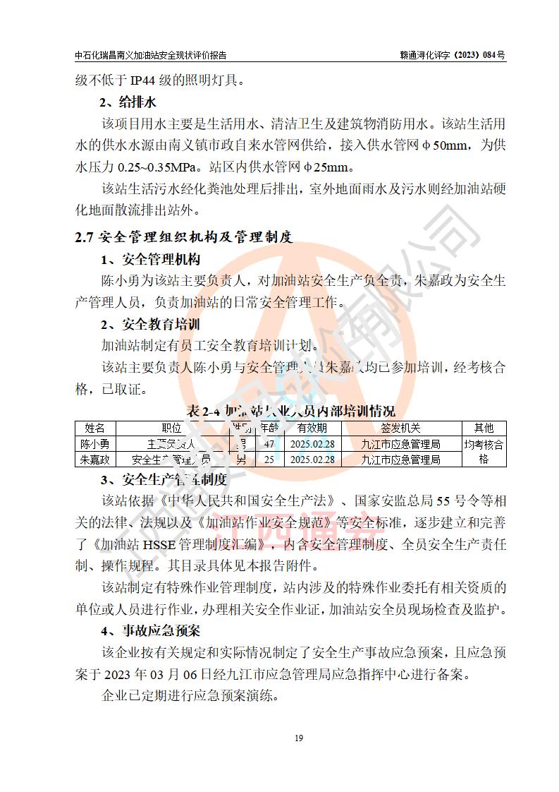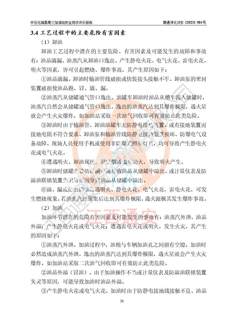 评价报告名称 | 中国石化销售股份有限公司江西九江瑞昌石油分公司南义加油站安全现状评价报告 | |||