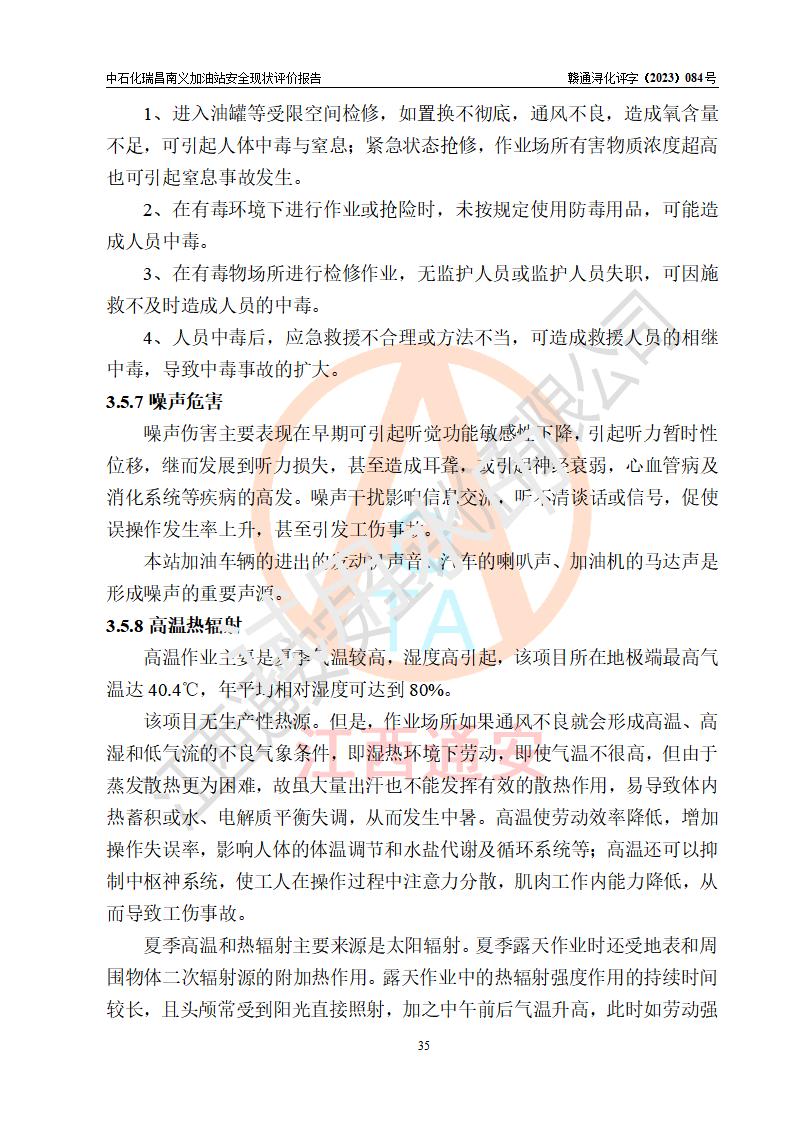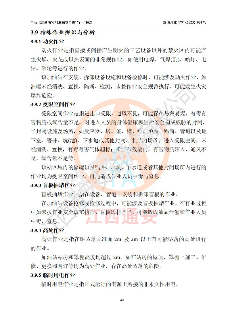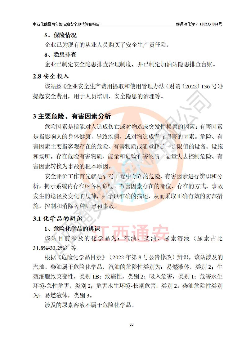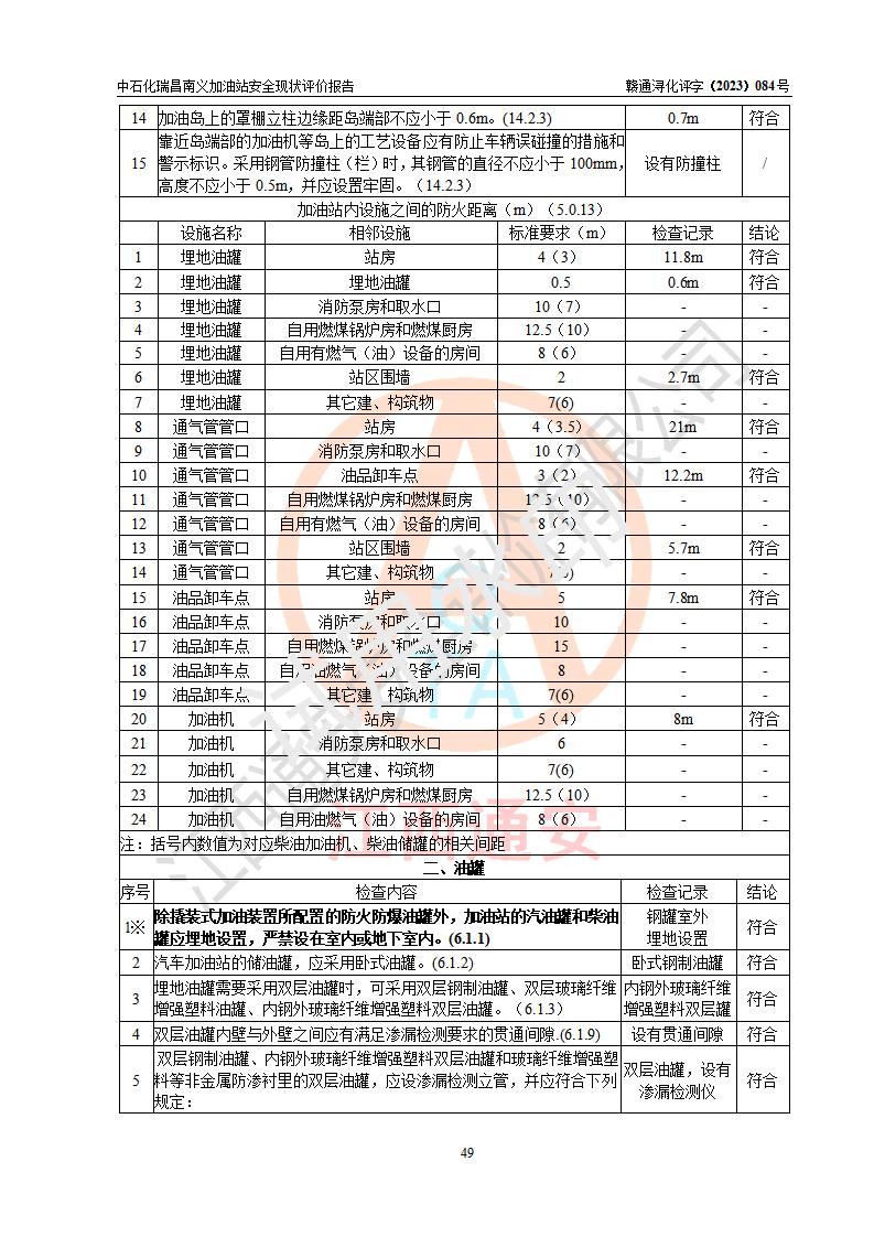 评价报告名称 | 中国石化销售股份有限公司江西九江瑞昌石油分公司南义加油站安全现状评价报告 | |||