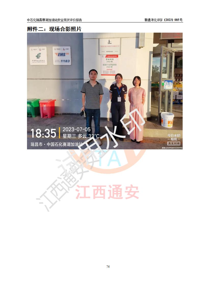 评价报告名称 | 中国石化销售股份有限公司江西九江瑞昌石油分公司赛湖加油站安全现状评价报告 | |||