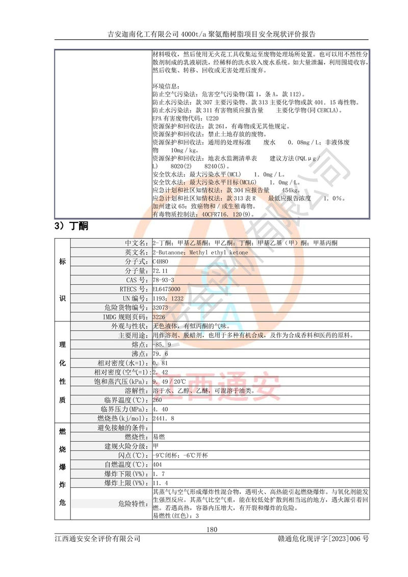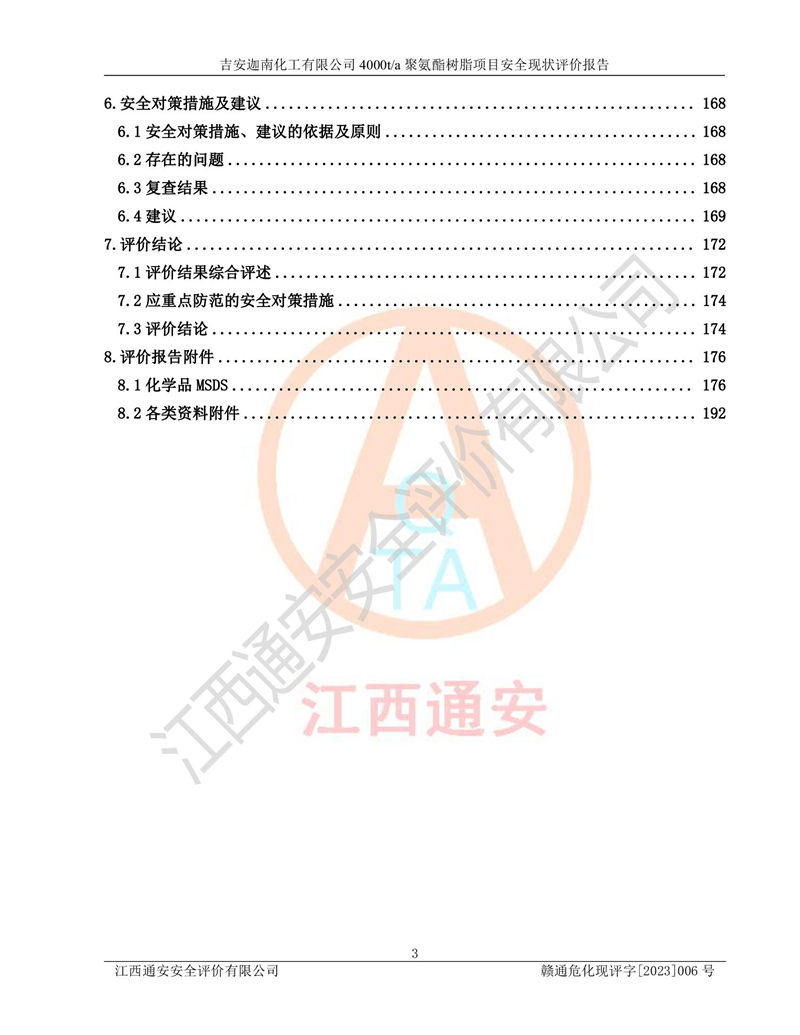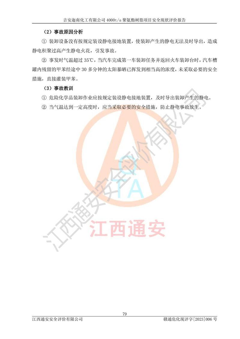 评价报告名称 | 吉安迦南化工有限公司4000t/a聚氨酯树脂项目安全现状评价报告 | ||||