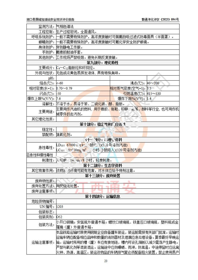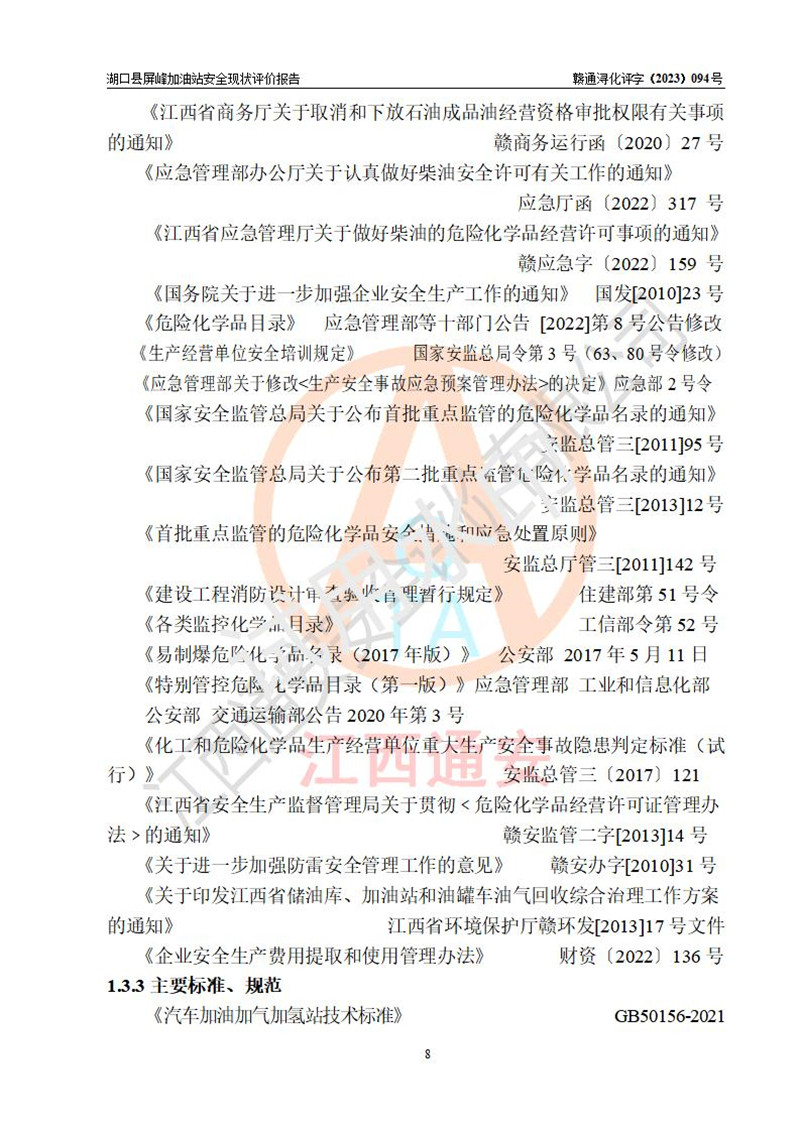 评价报告名称 | 湖口县屏峰加油站安全现状评价报告 | |||