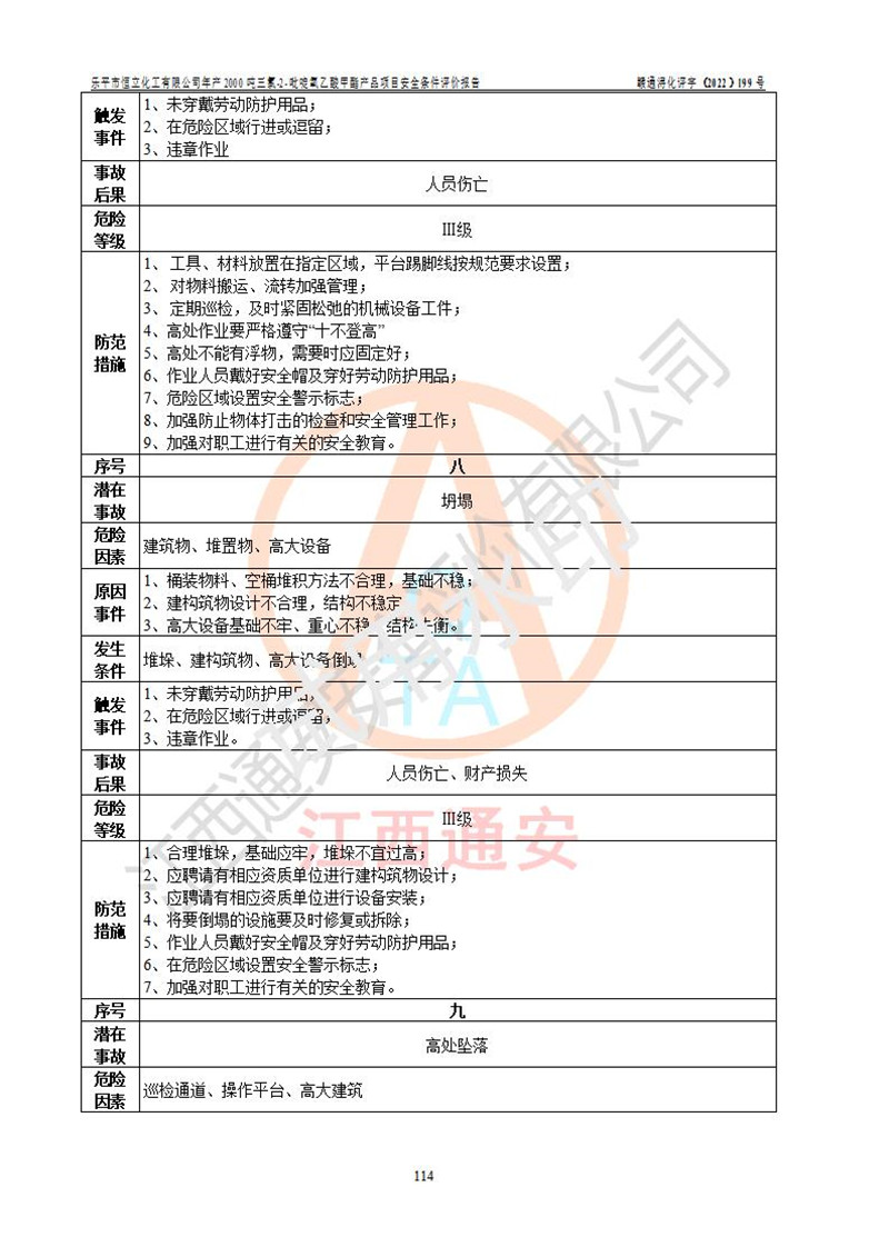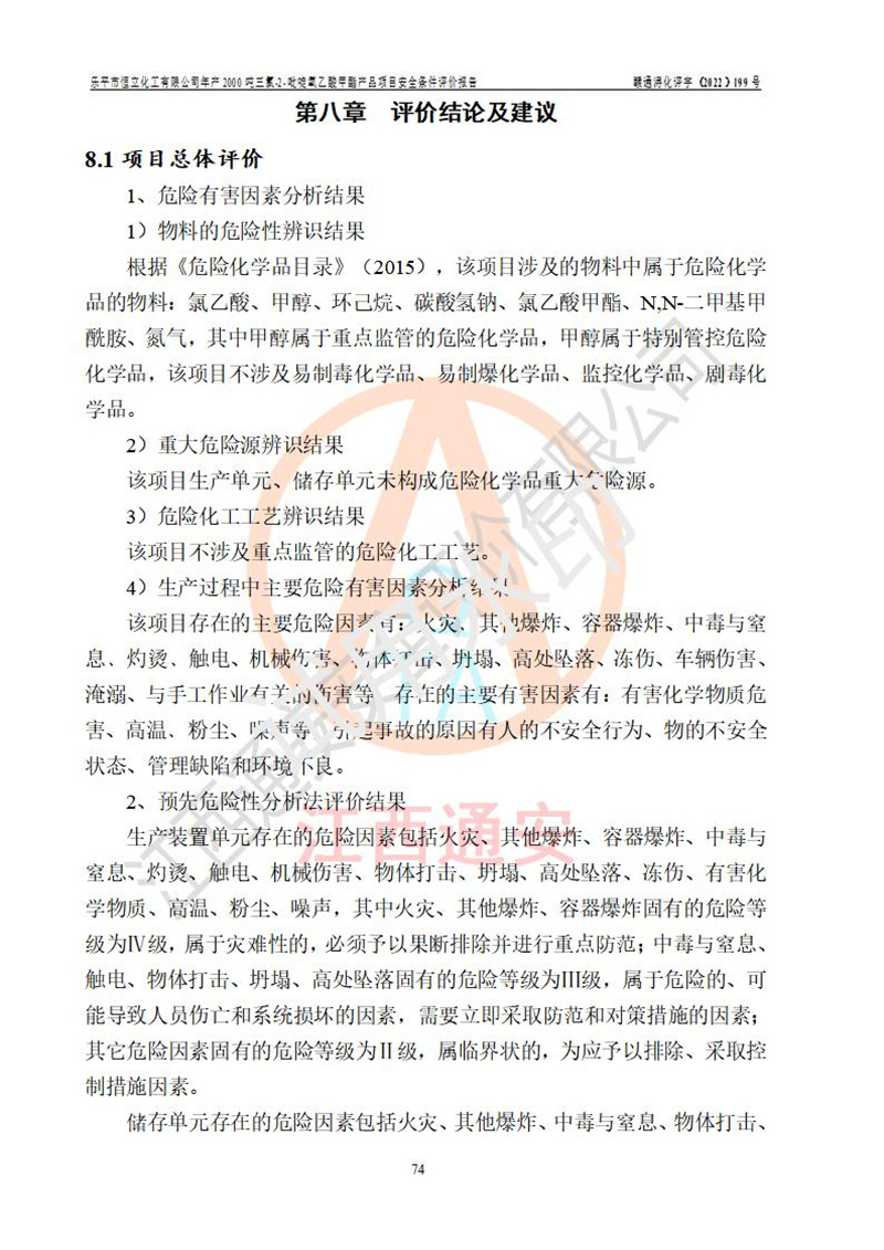 评价结论 | 九江赣冶**科技有限公司年处理60万吨一般固废处理再利用项目(一期30万吨/年项目)配套的安全设施和安全管理措施符合**有关法规、标准、规范要求,在落实本评价报告提出的对策措施与建议后,项目风险可控,具备竣工安全验收的条件。 | |||
