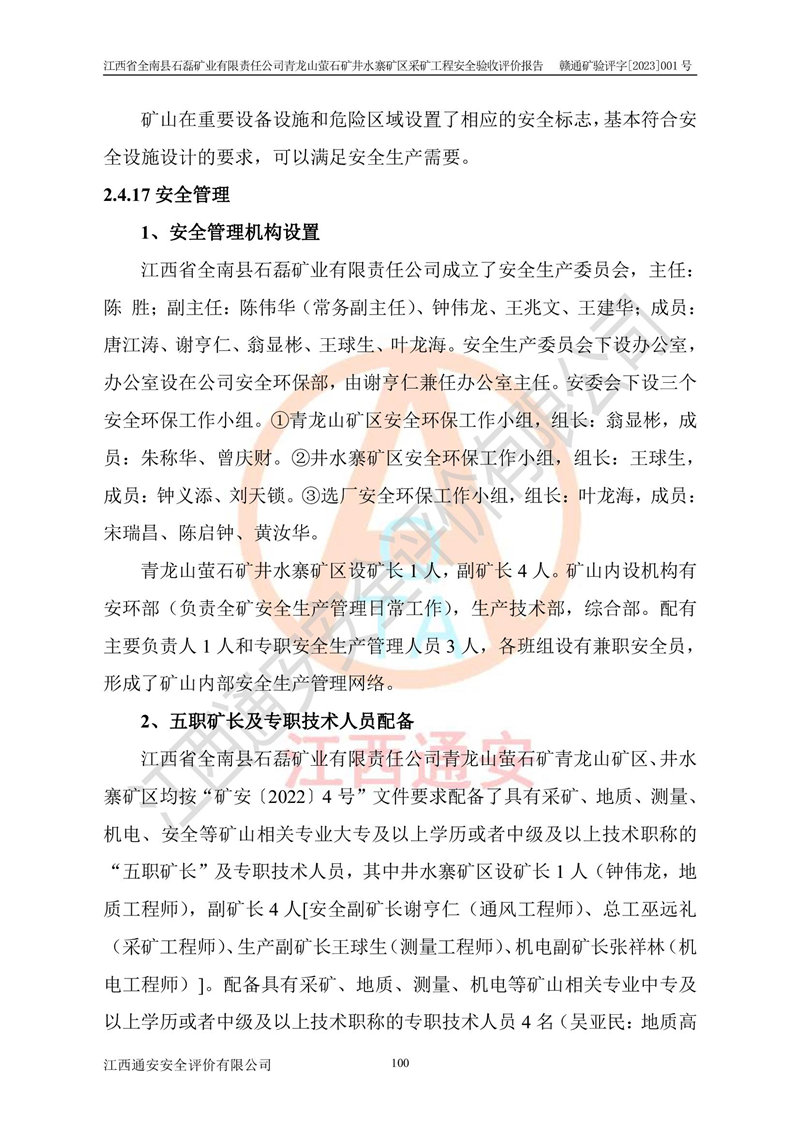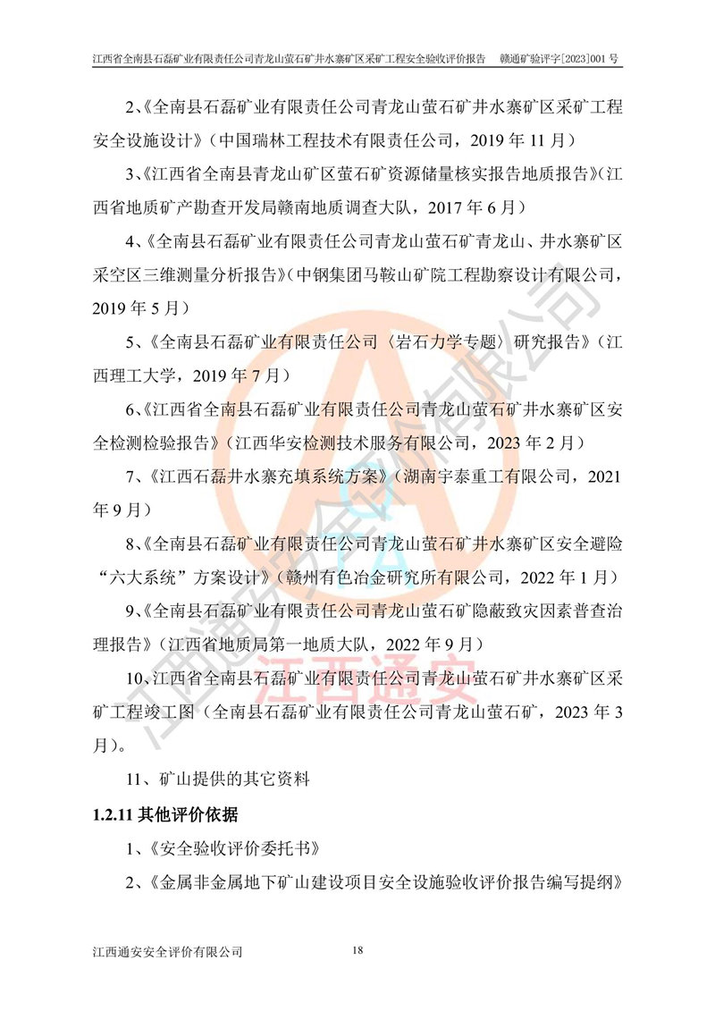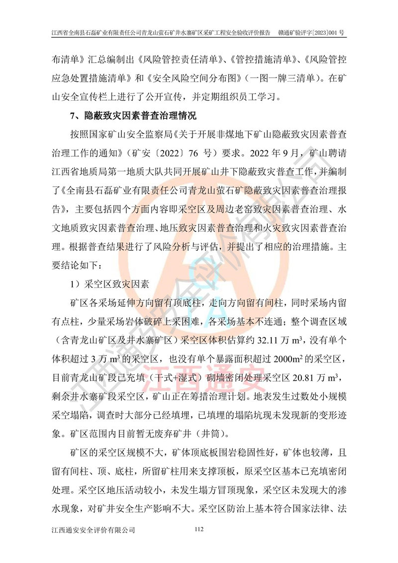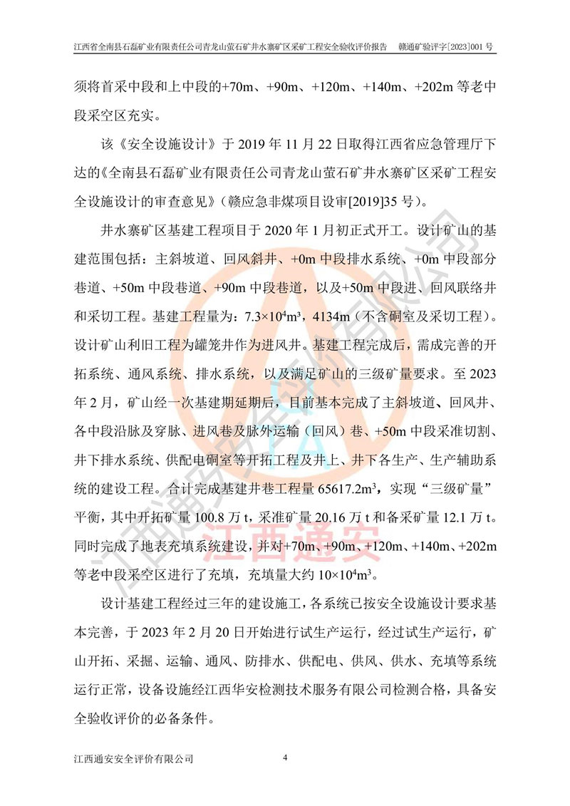 项目名称 | 江西省全南县石磊矿业有限责任公司青龙山萤石矿井水寨矿区采矿工程安全验收评价报告 | ||||