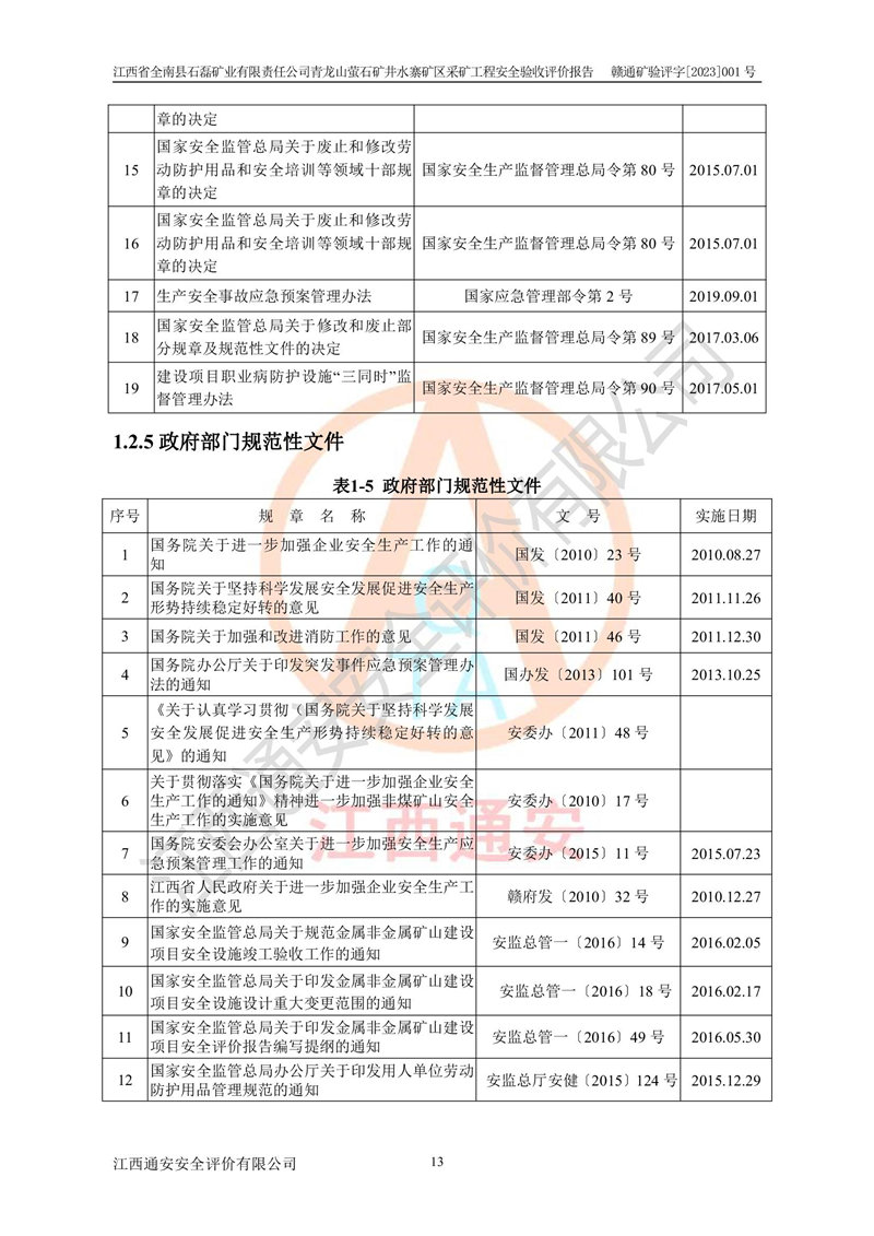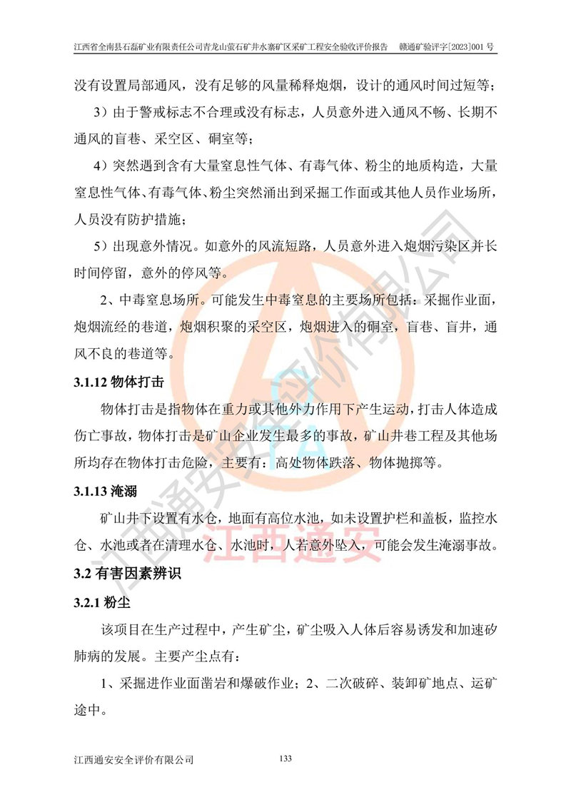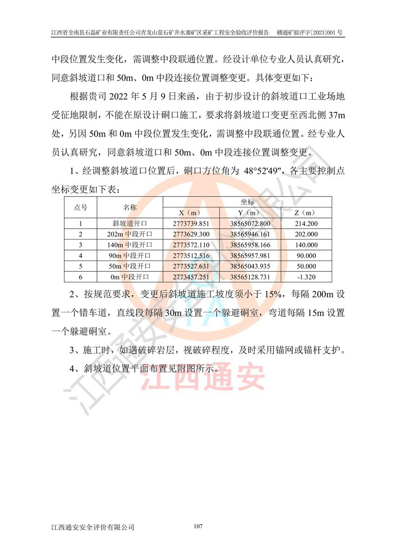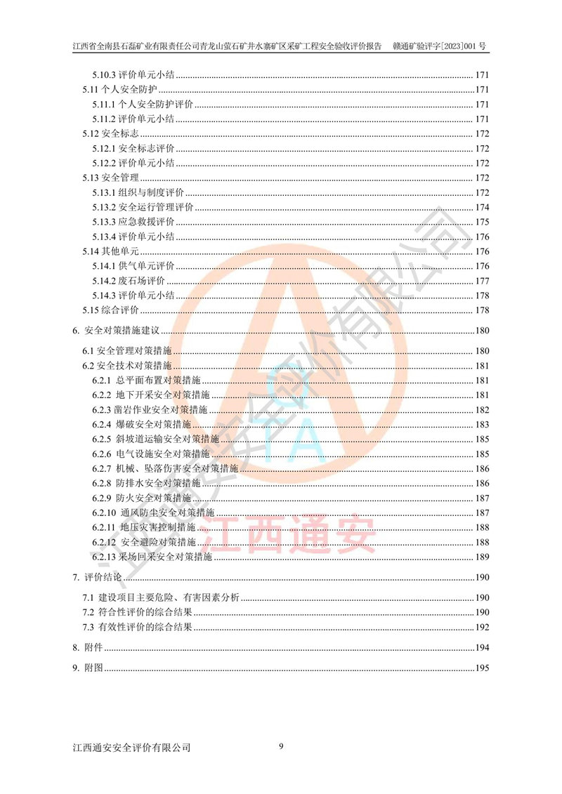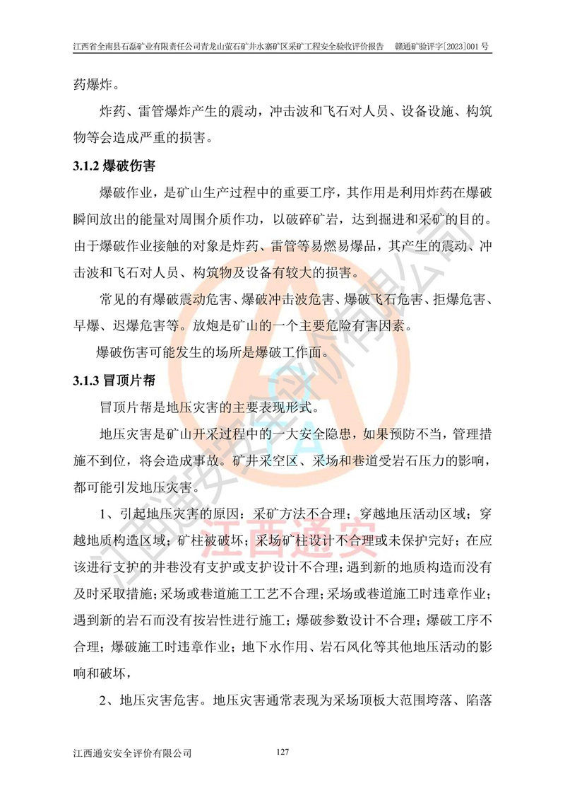 项目名称 | 江西省全南县石磊矿业有限责任公司青龙山萤石矿井水寨矿区采矿工程安全验收评价报告 | ||||