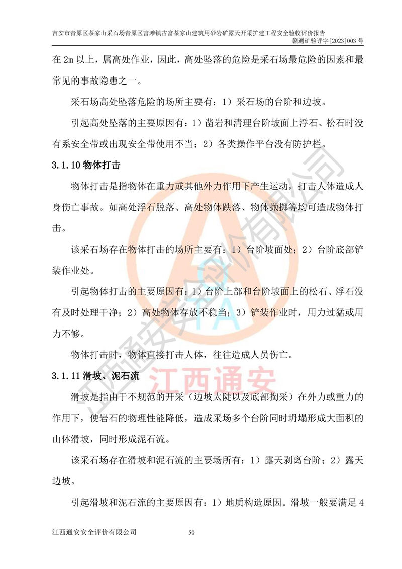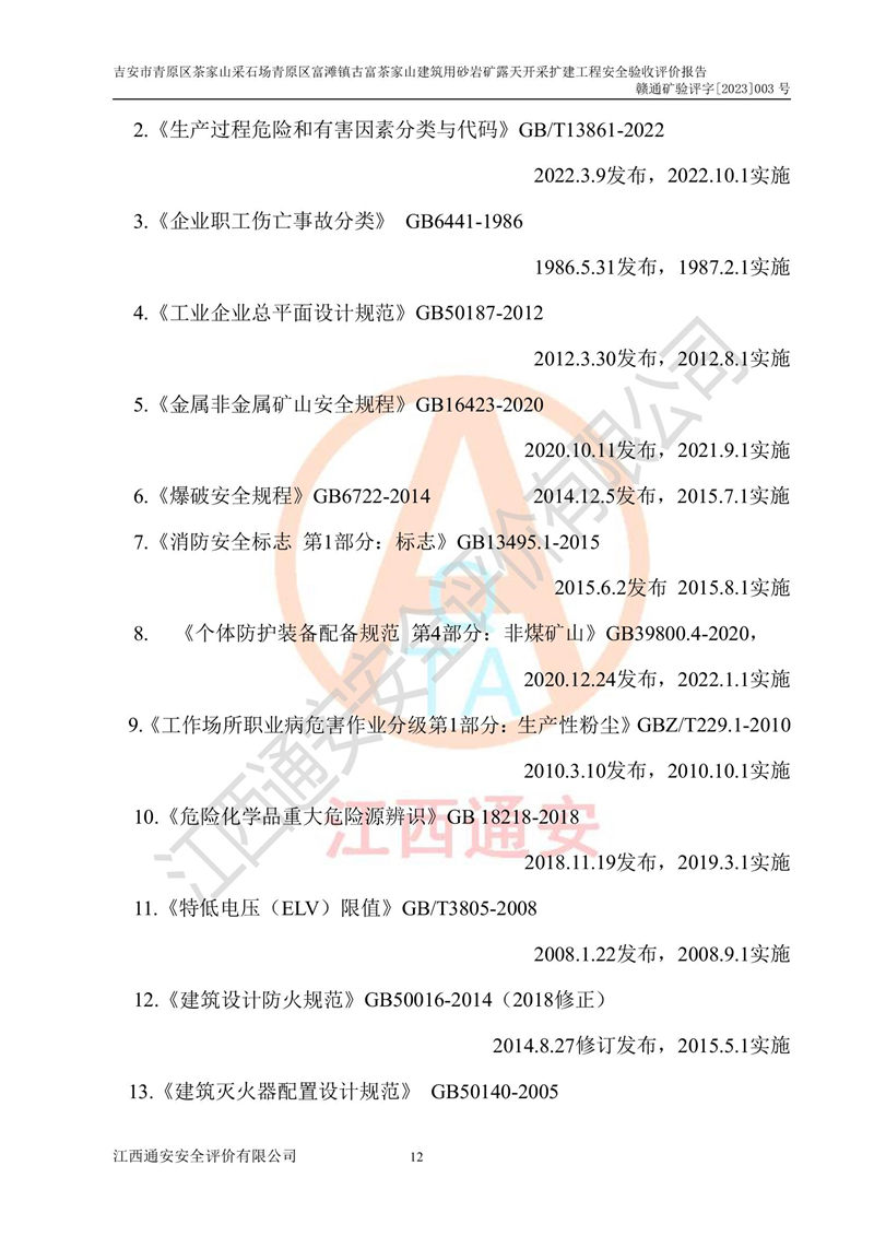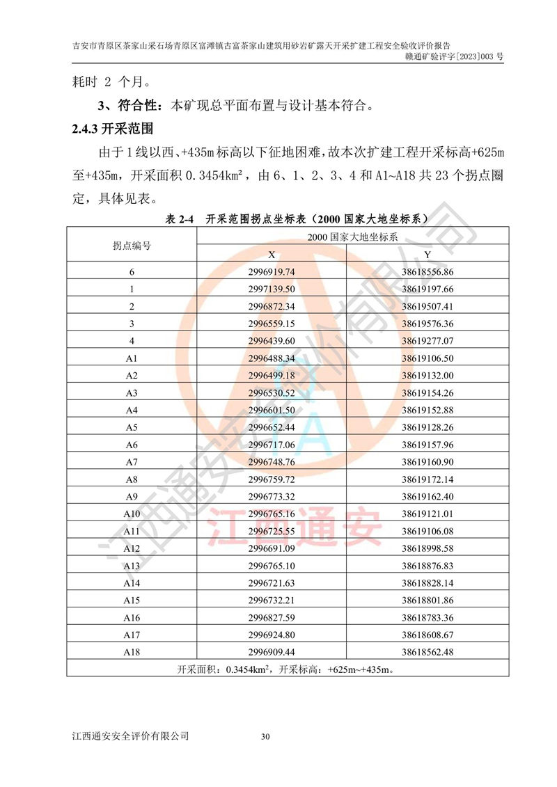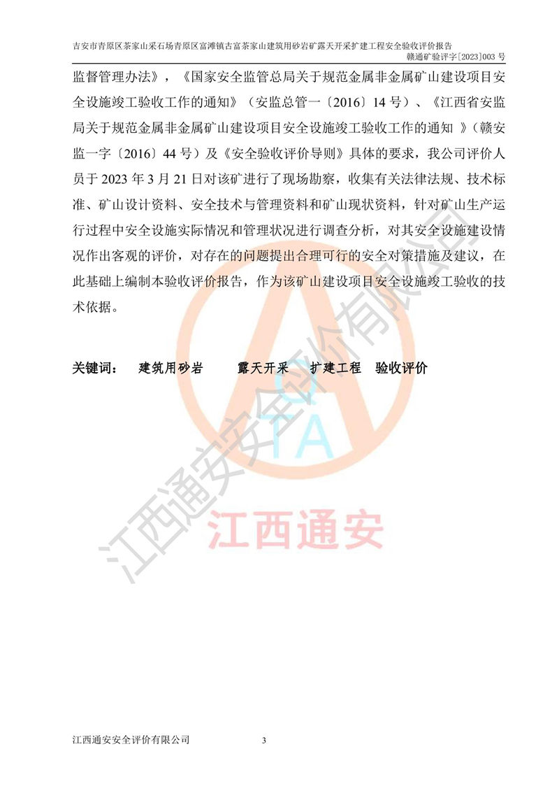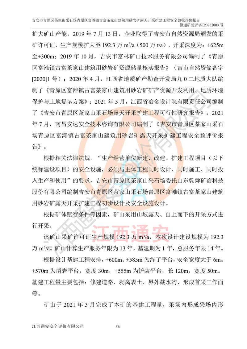 项目名称 | 吉安市青原区茶家山采石场青原区富滩镇古富茶家山建筑用砂岩矿露天开采扩建工程安全验收评价报告 | ||||