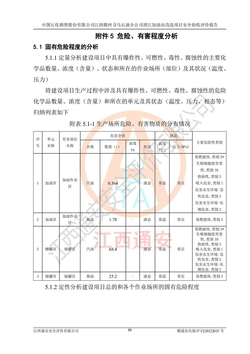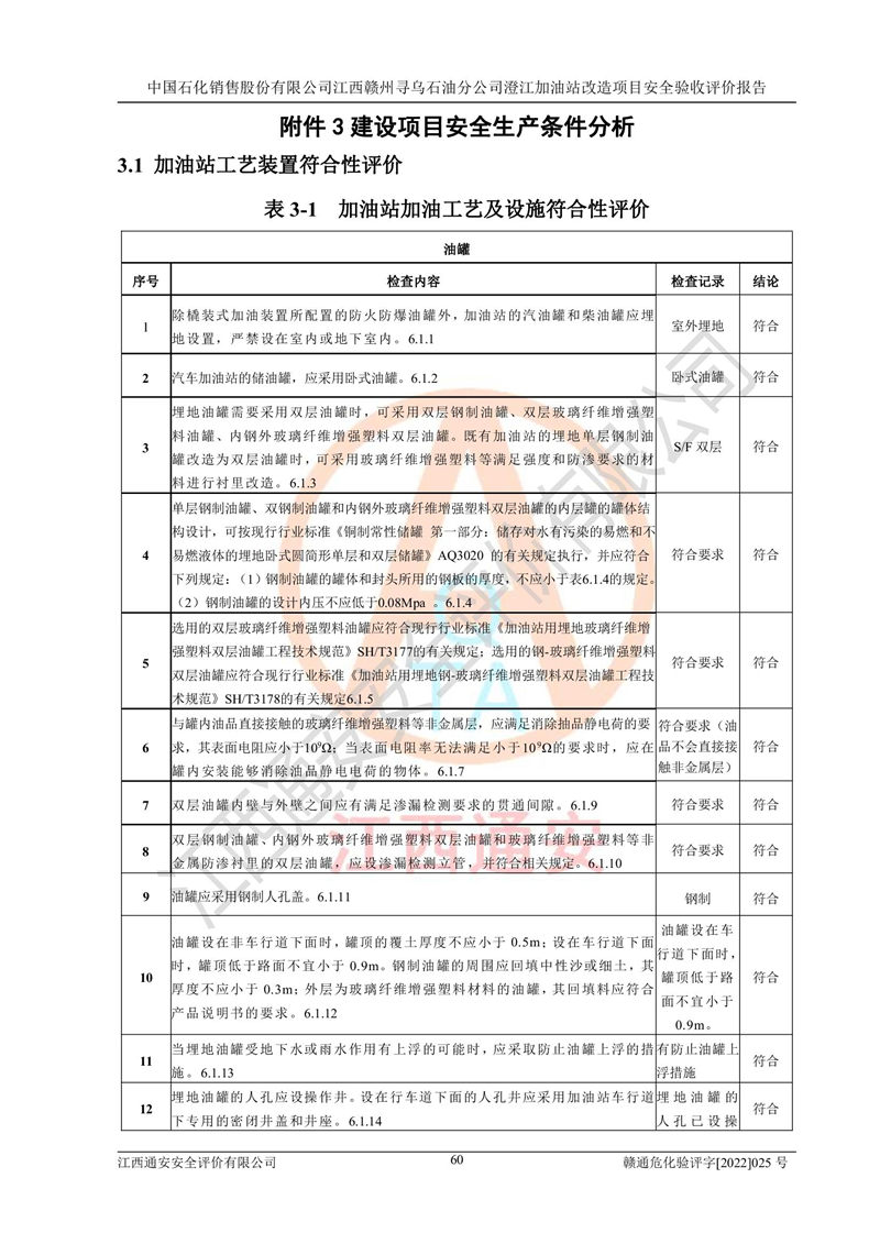 项目名称 | 中国石化销售股份有限公司江西赣州寻乌石油分公司澄江加油站改造项目安全验收评价报告 | ||||