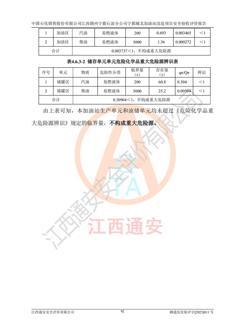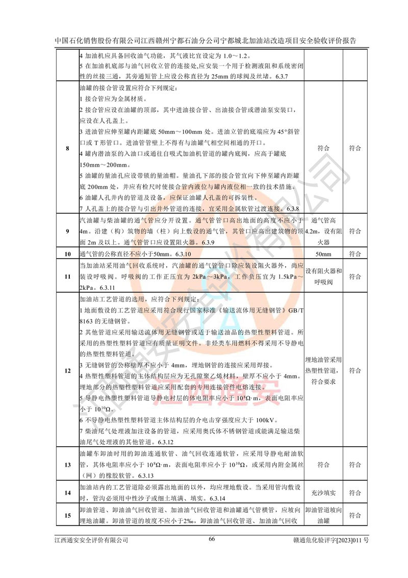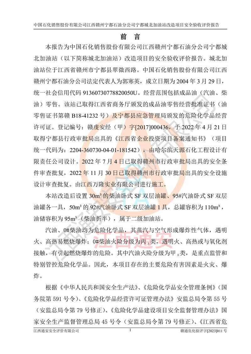项目名称 | 中国石化销售股份有限公司江西赣州宁都石油分公司宁都城北加油站新建项目安全验收评价报告 | ||||