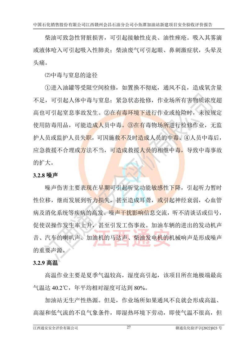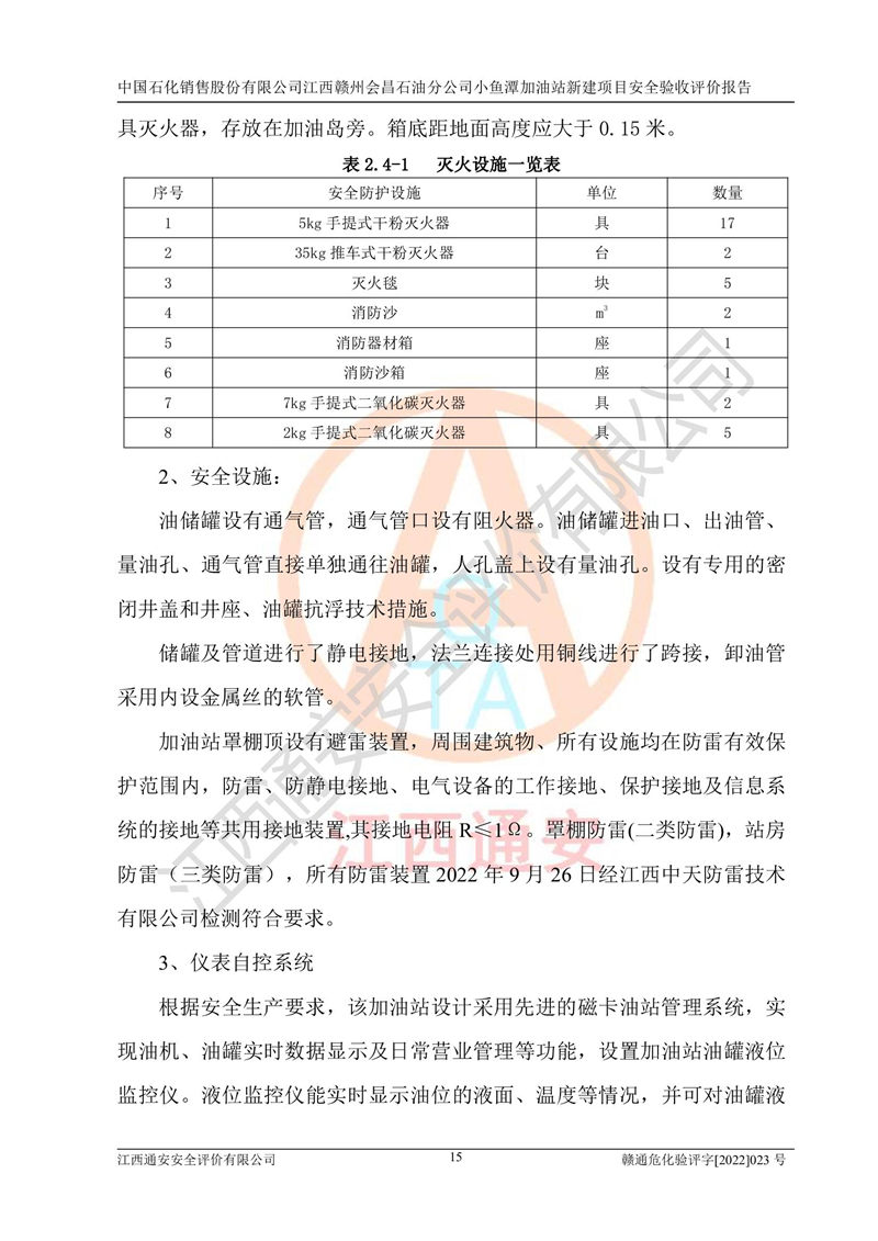 项目名称 | 中国石化销售股份有限公司江西赣州会昌石油分公司小鱼潭加油站新建项目安全验收评价报告 | ||||